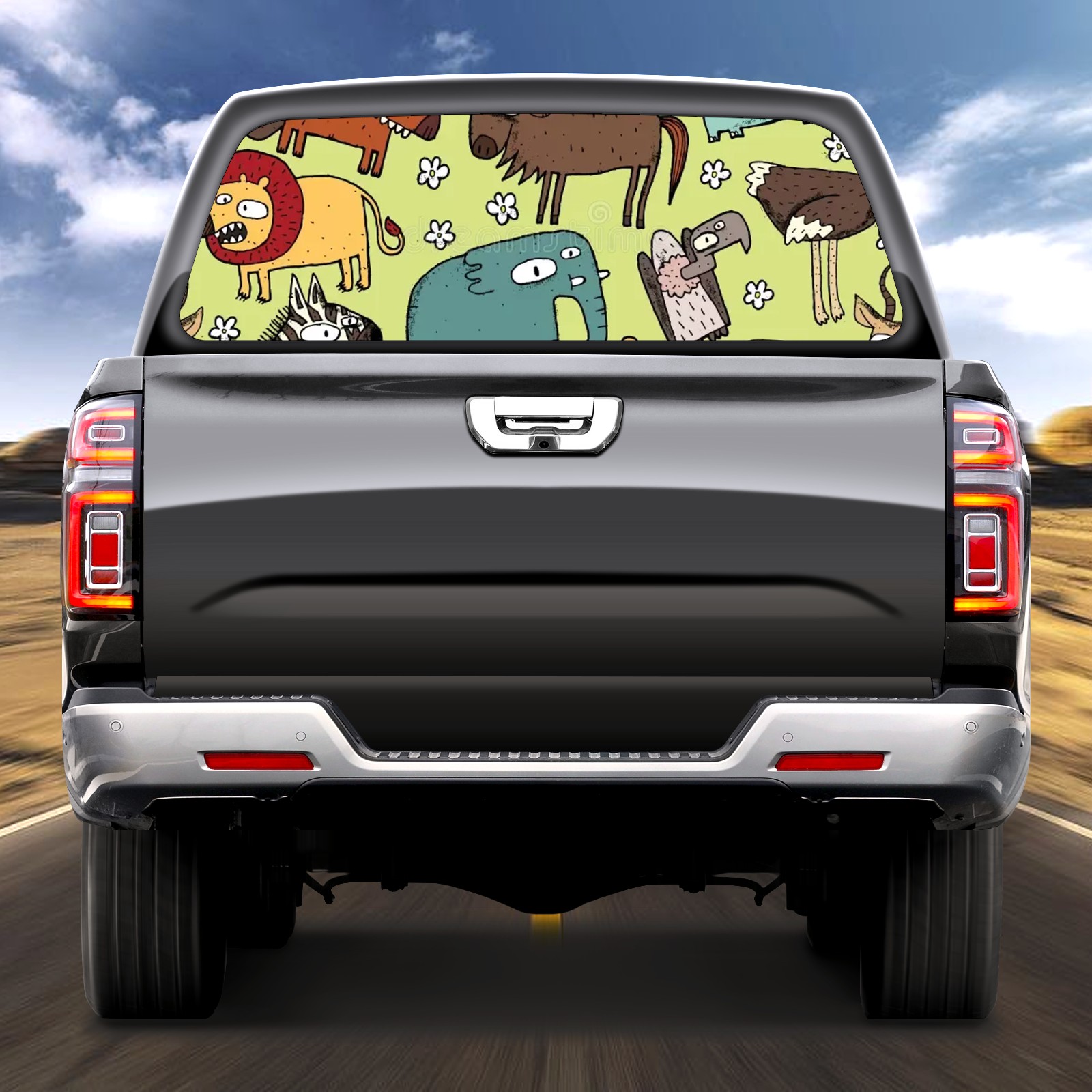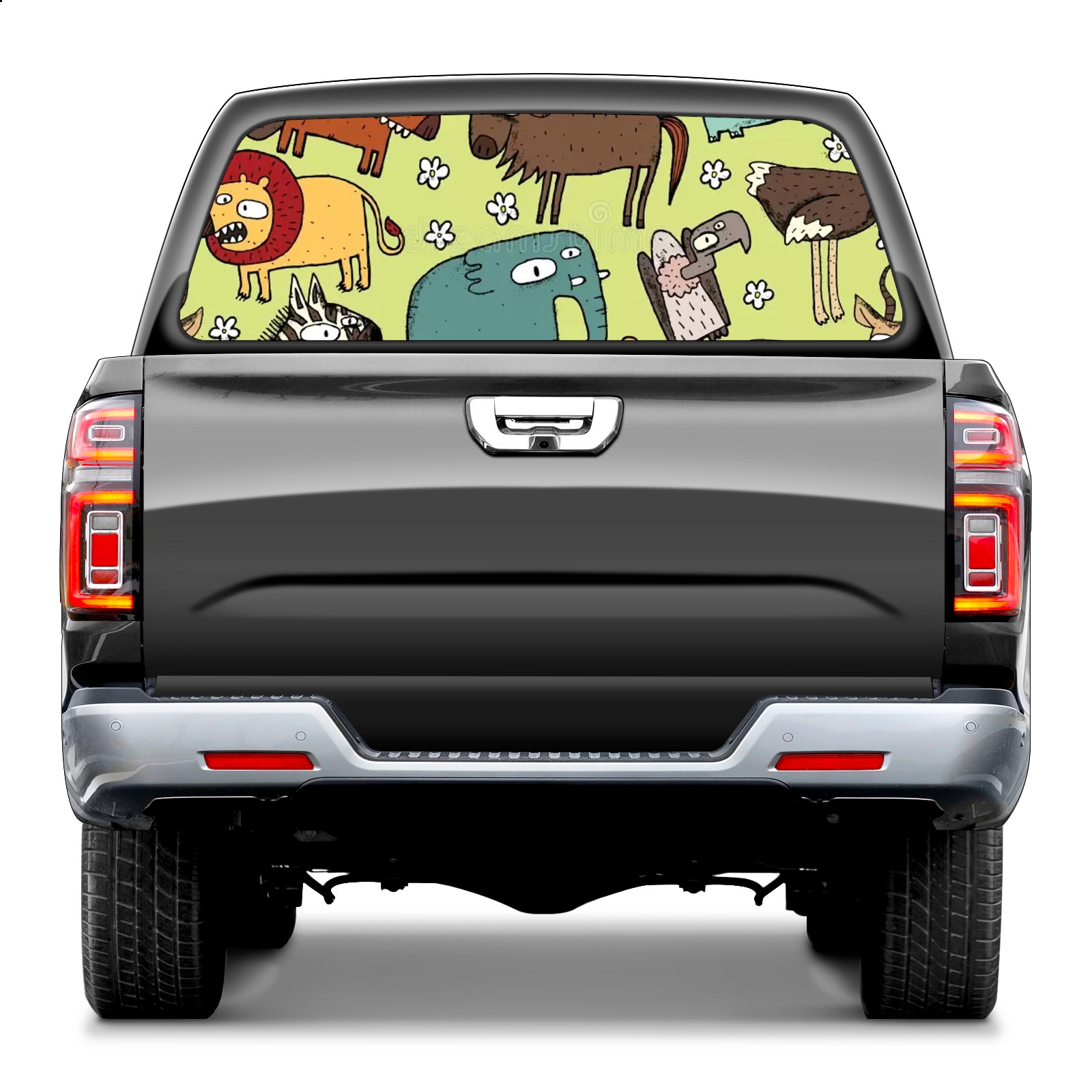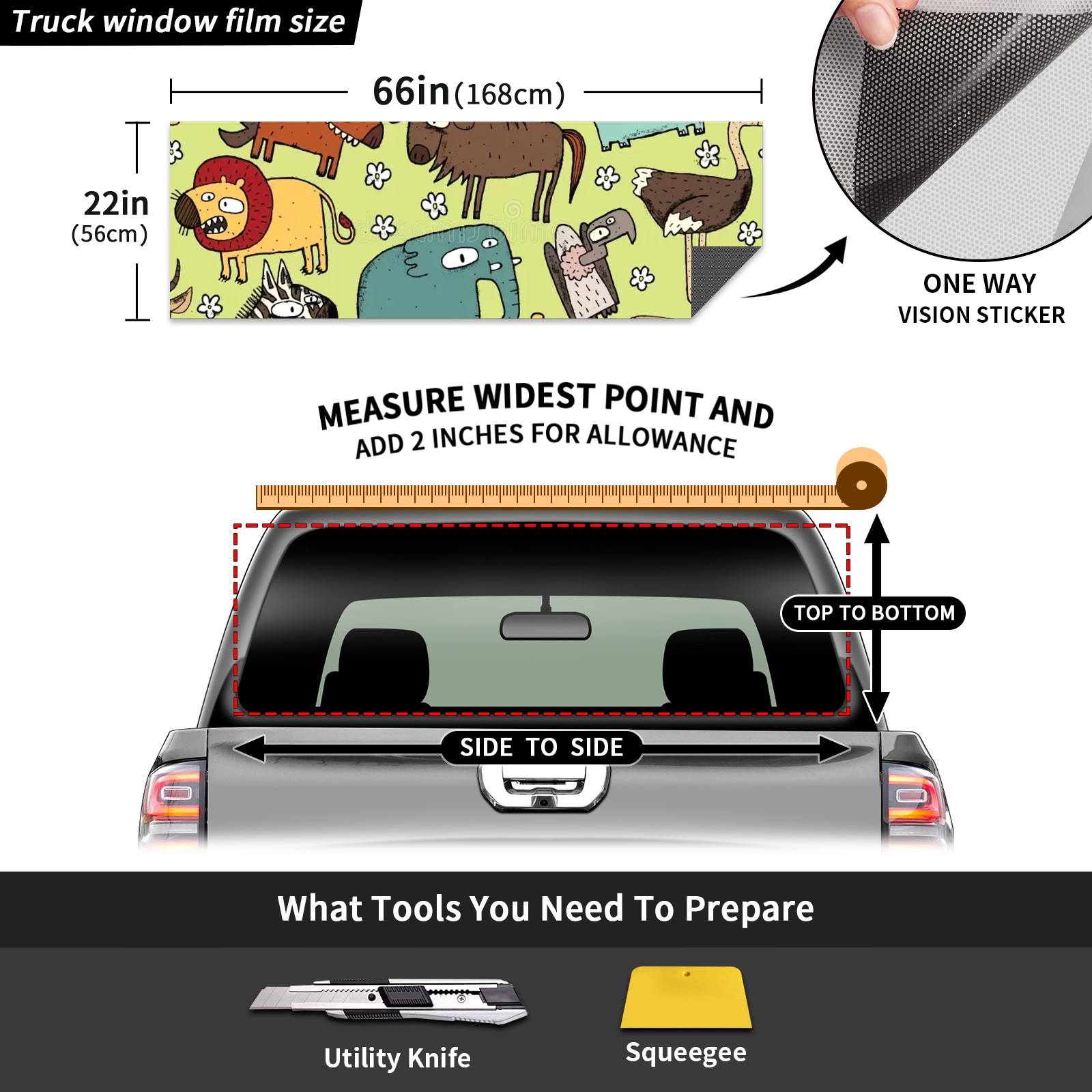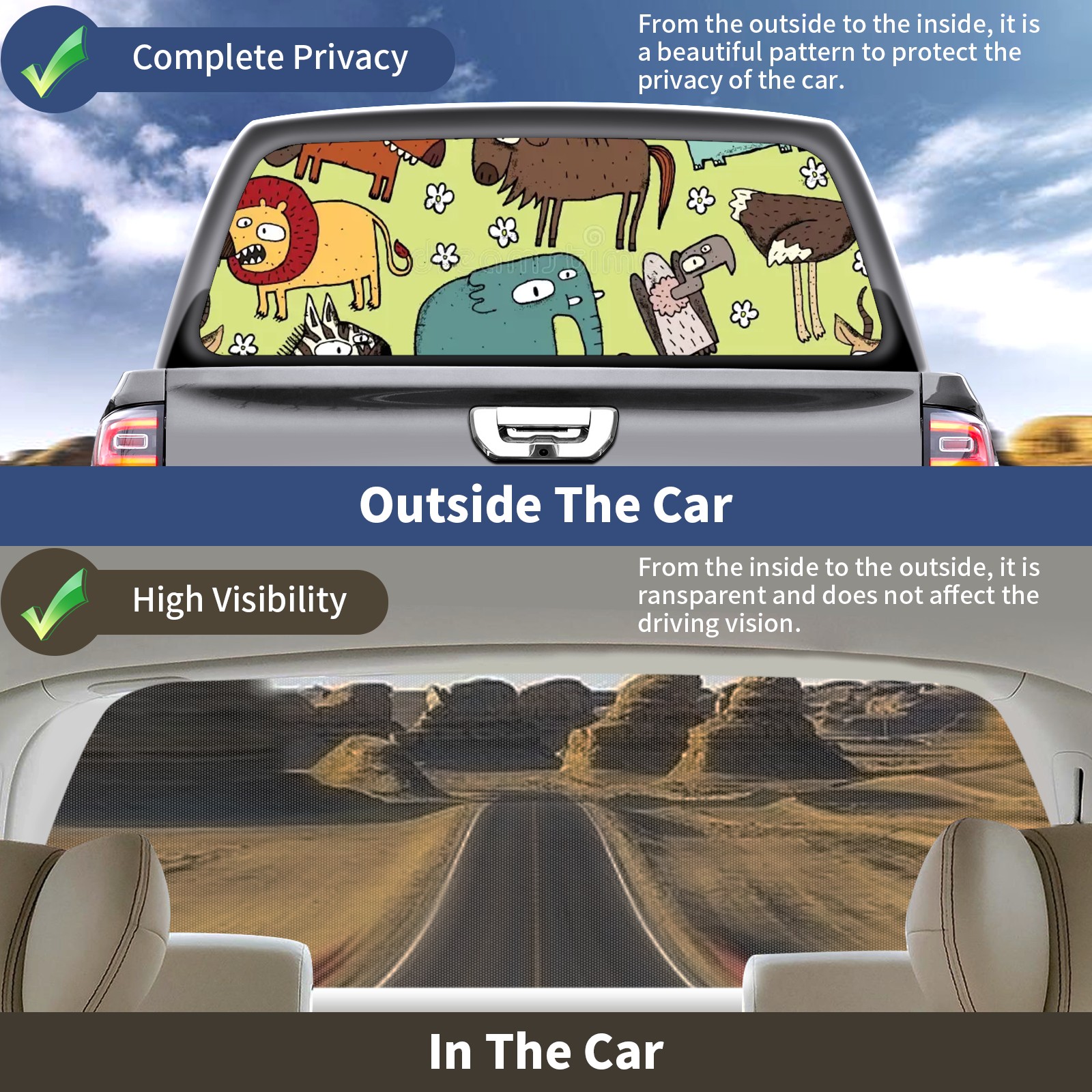 Truck Rear Window Graphics Decals Pickup Trucks Back Window Sticker Full Window Film Decal One Way Visual Waterproof Car Rear Tint Animal Print