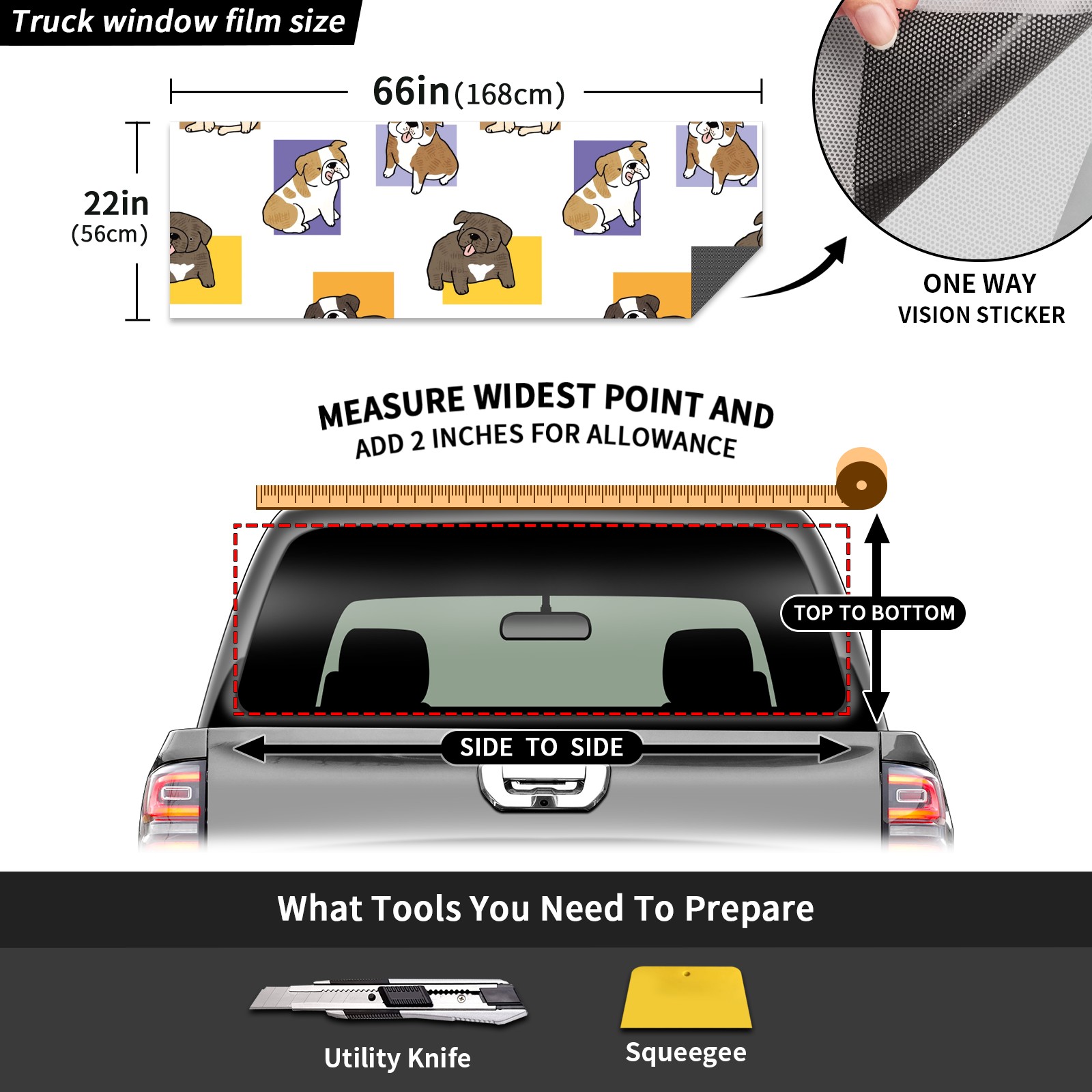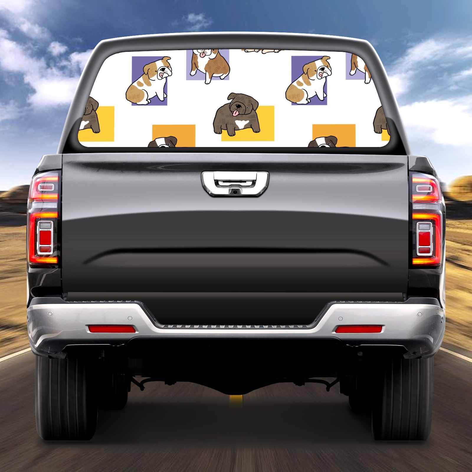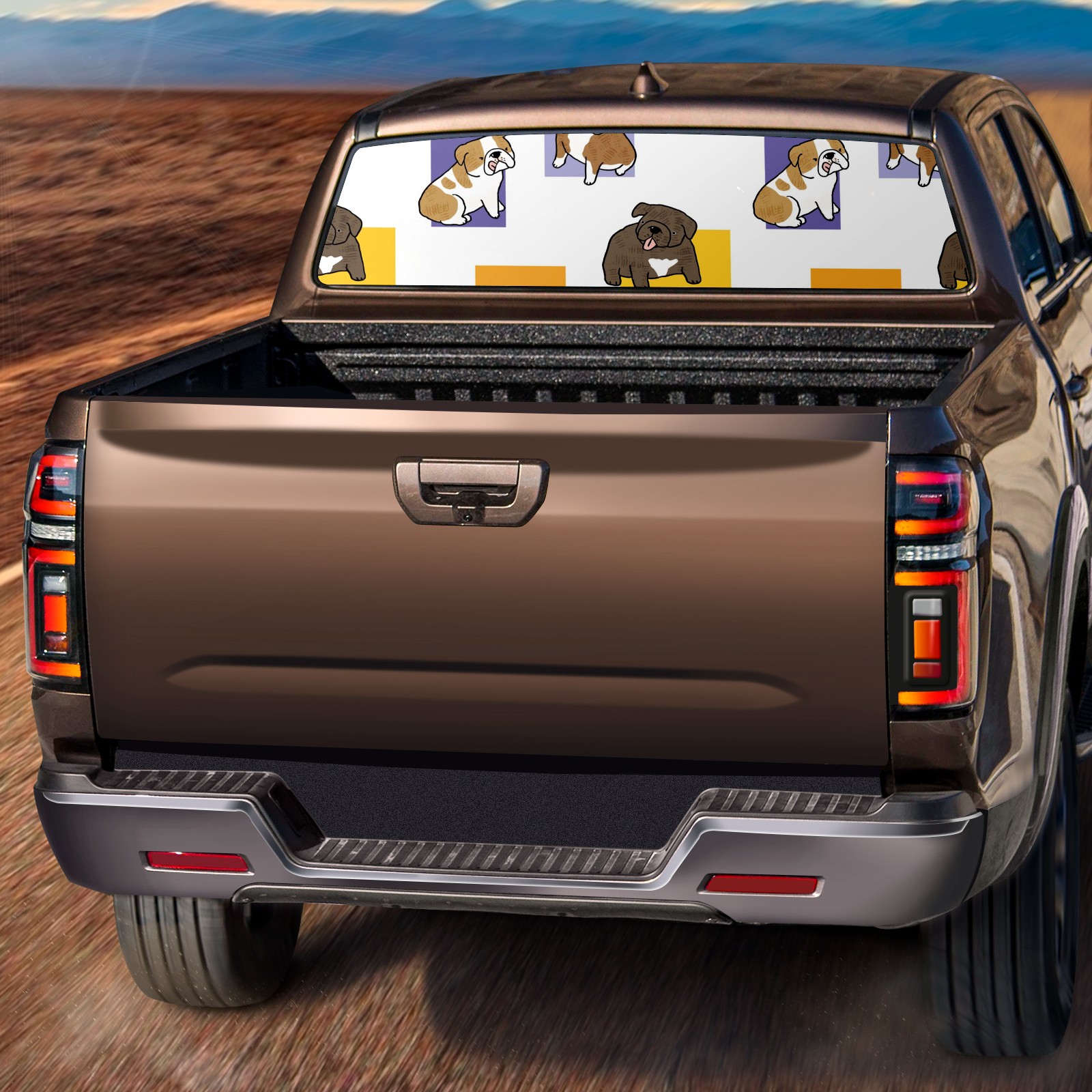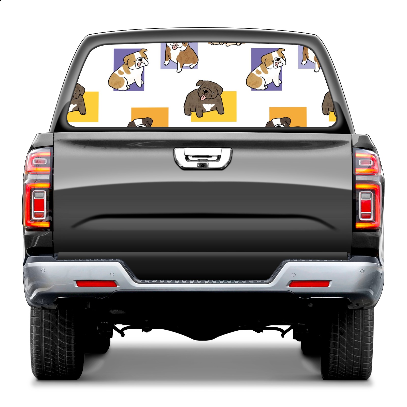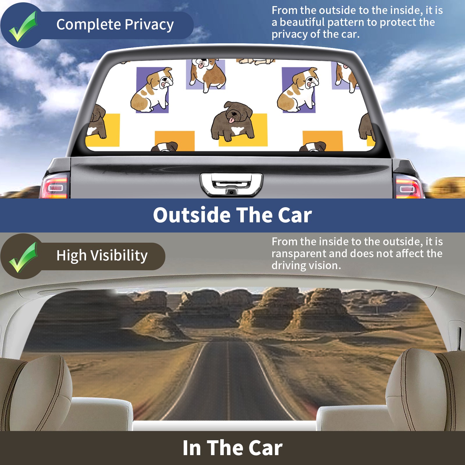 Truck Rear Window Graphics Decals Pickup Trucks Back Window Sticker Full Window Film Decal One Way Visual Waterproof Car Rear Tint Cartoon Bulldog On White Background