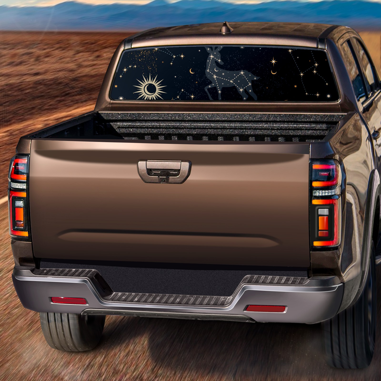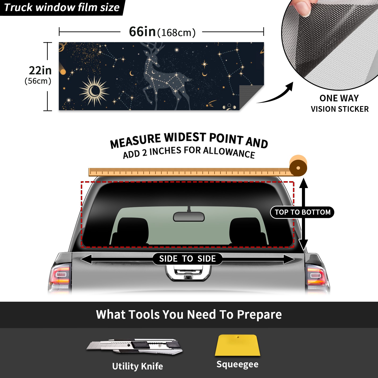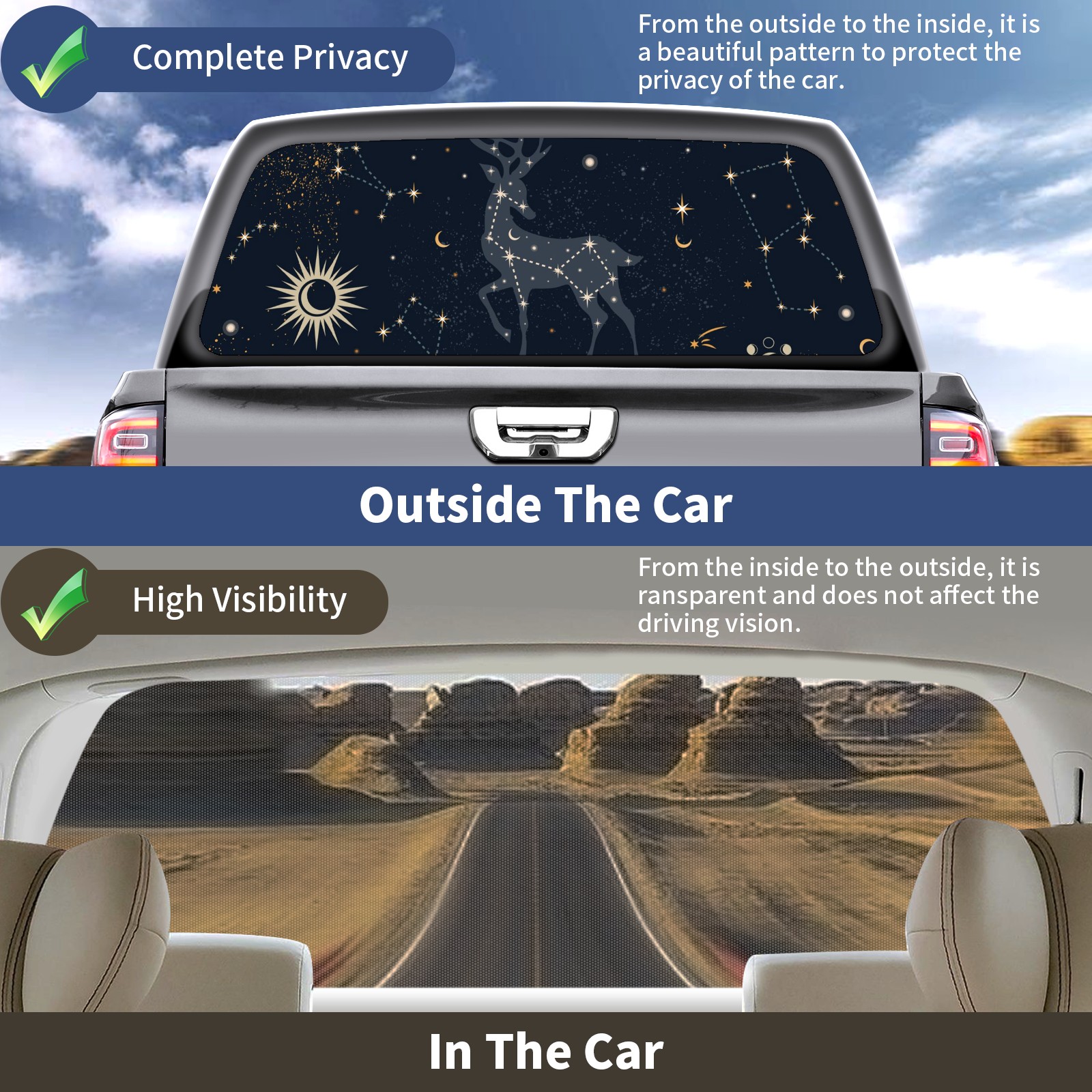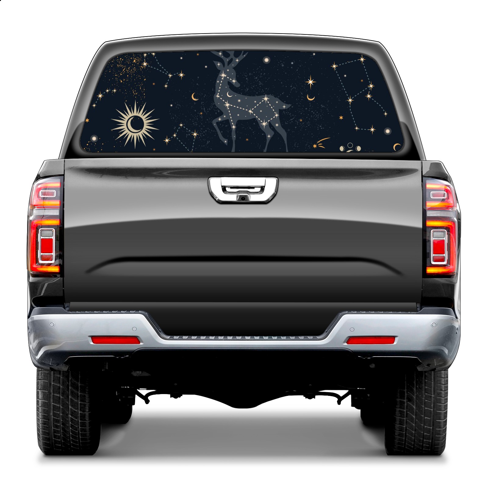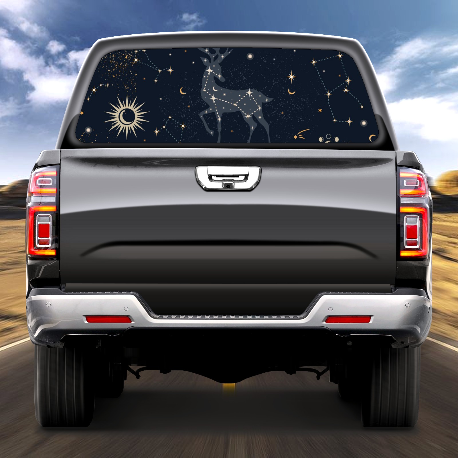 Truck Rear Window Graphics Decals Pickup Trucks Back Window Sticker Full Window Film Decal One Way Visual Waterproof Car Rear Tint Cosmic Deer Moon Star