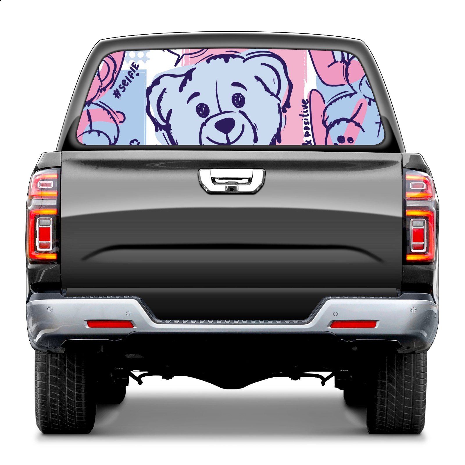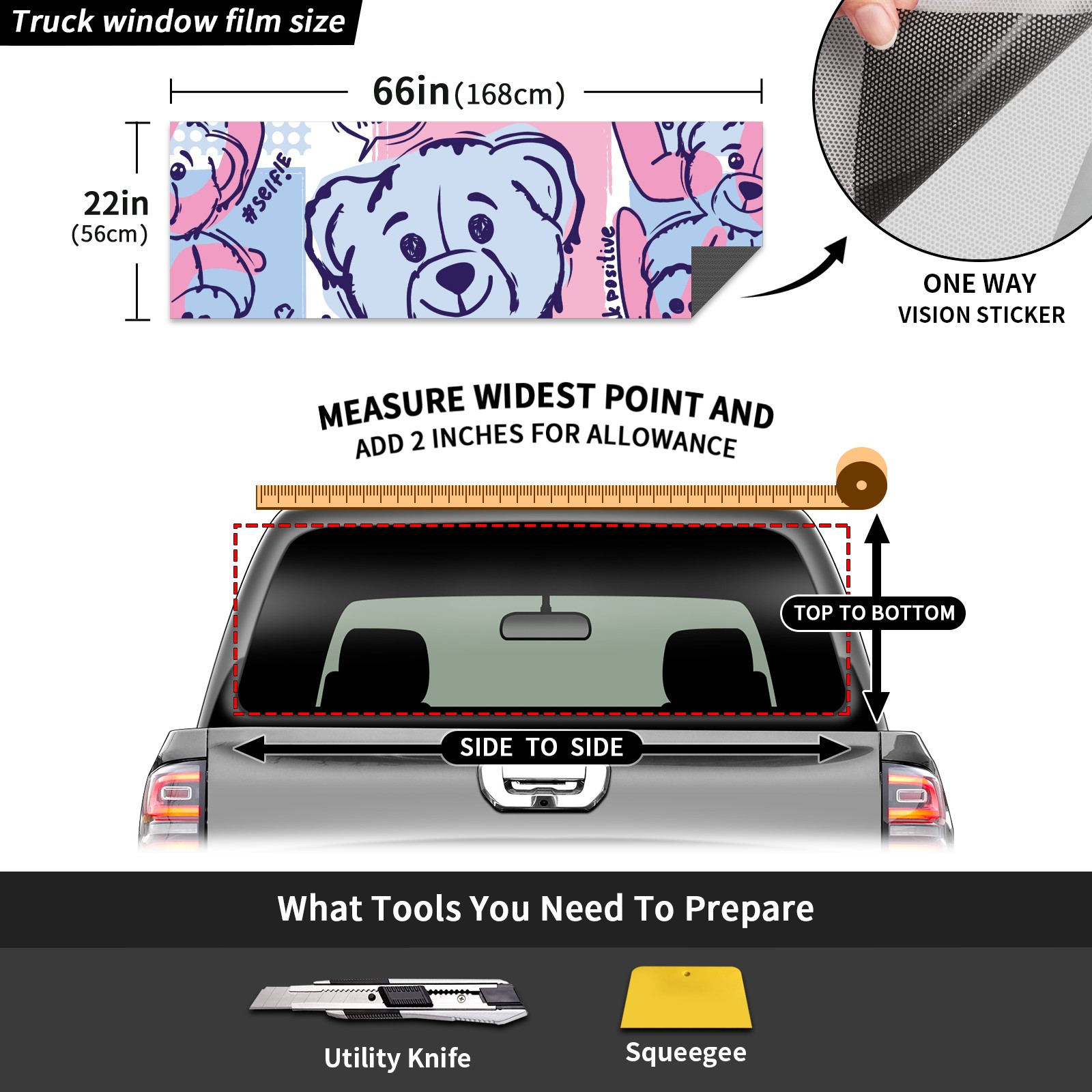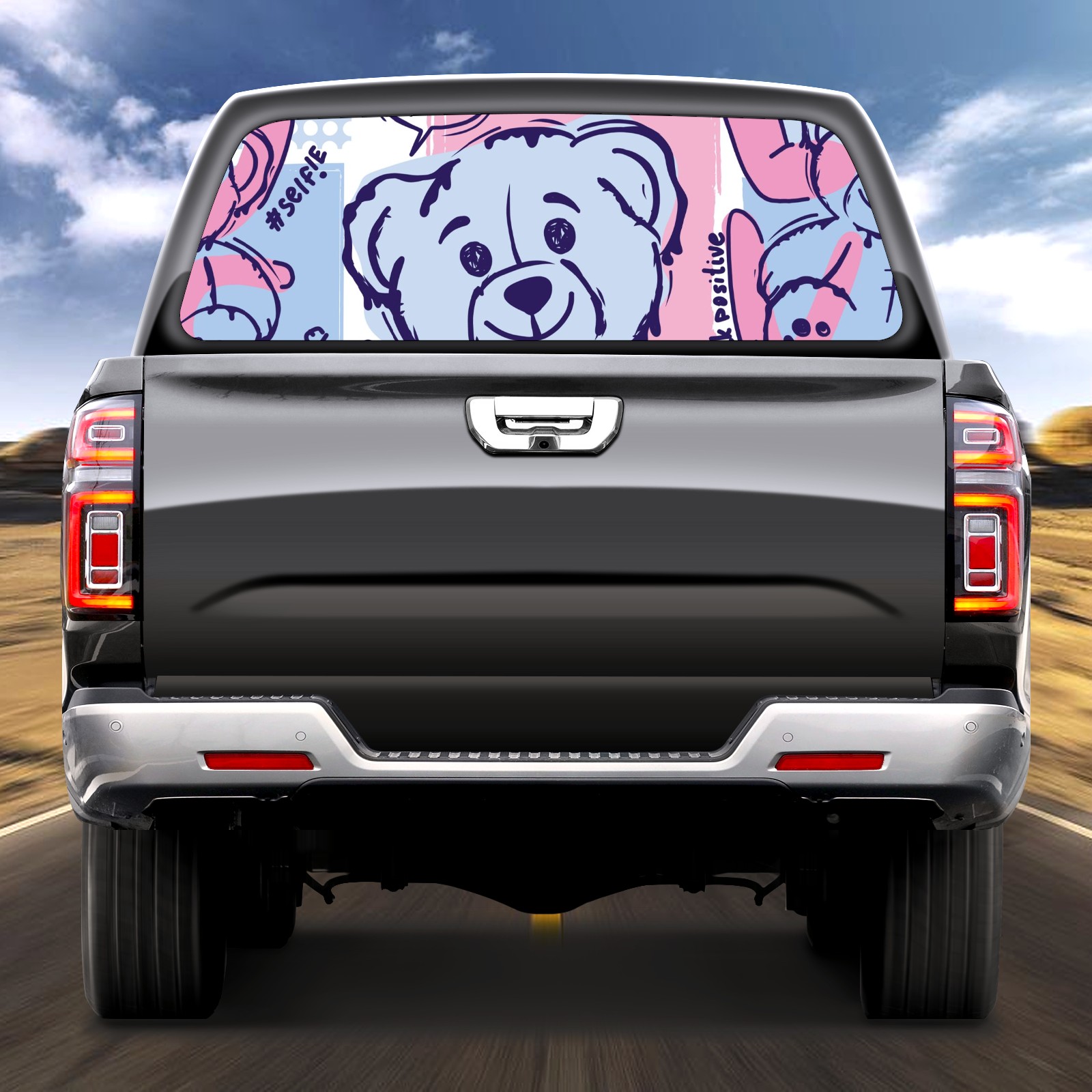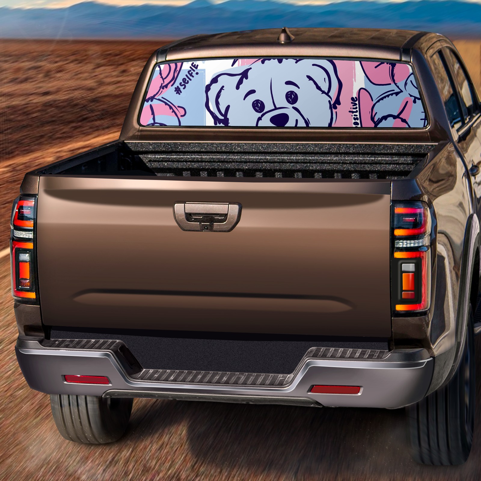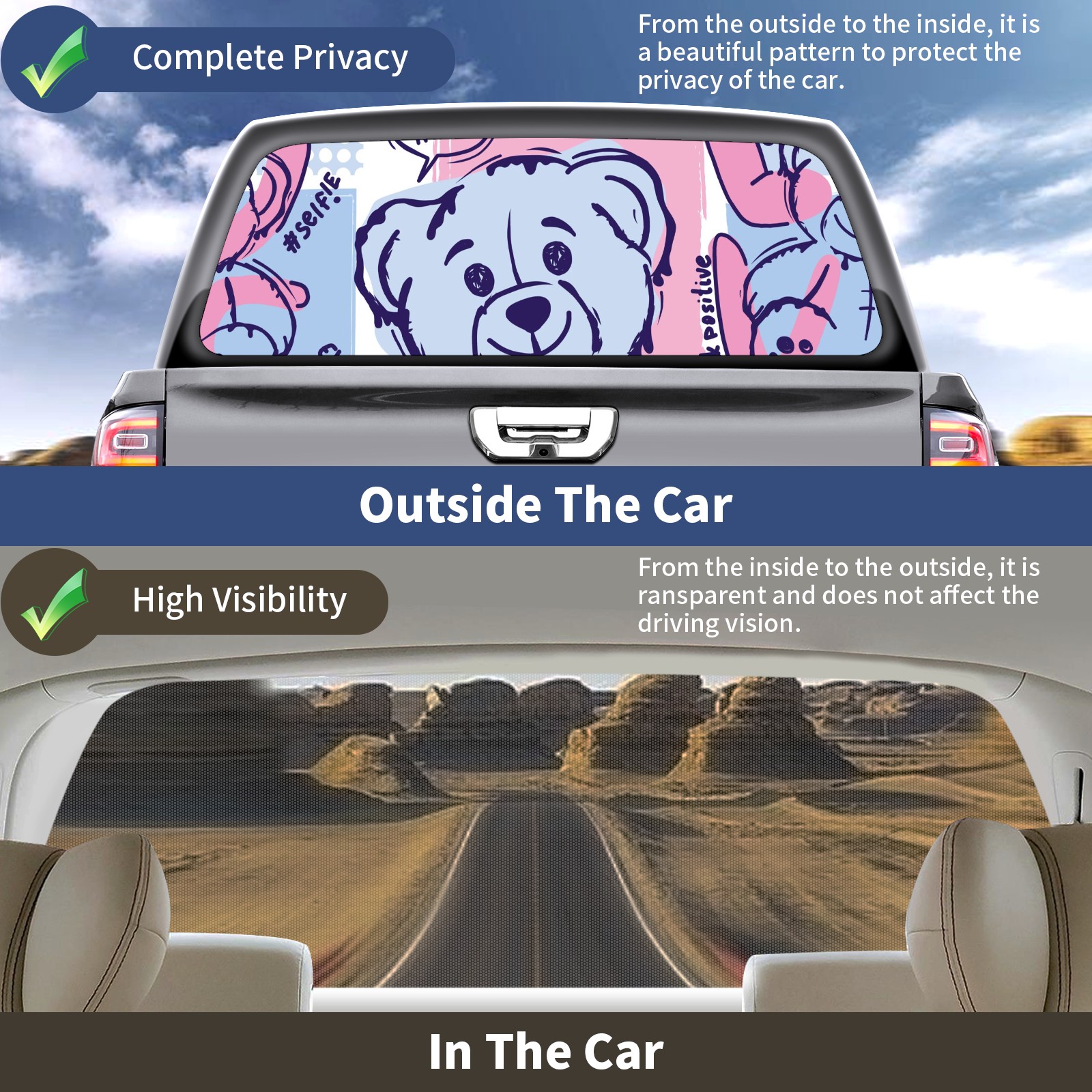 Truck Rear Window Graphics Decals Pickup Trucks Back Window Sticker Full Window Film Decal One Way Visual Waterproof Car Rear Tint Abstract Bear Doodle