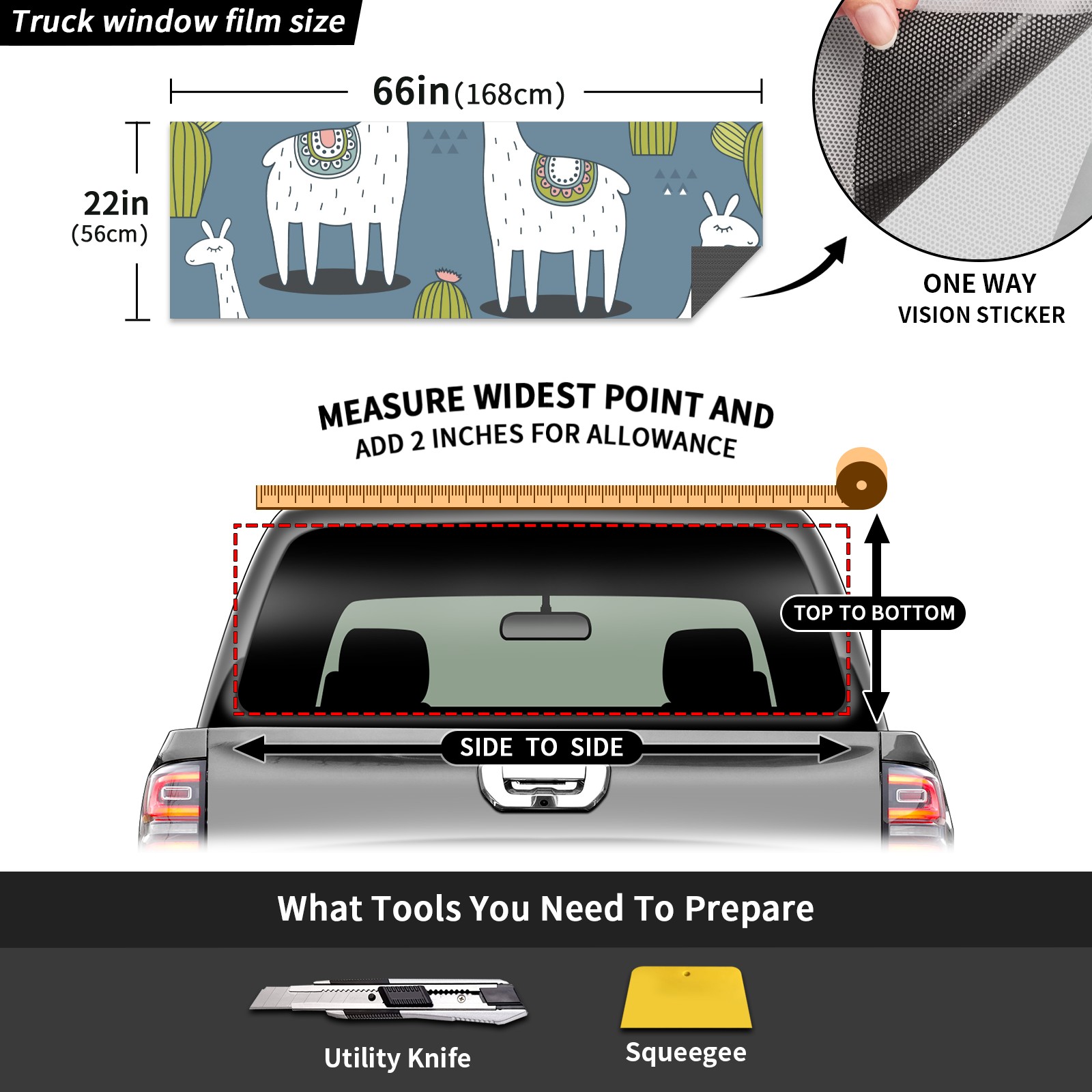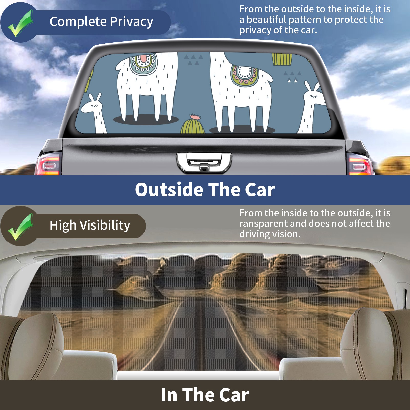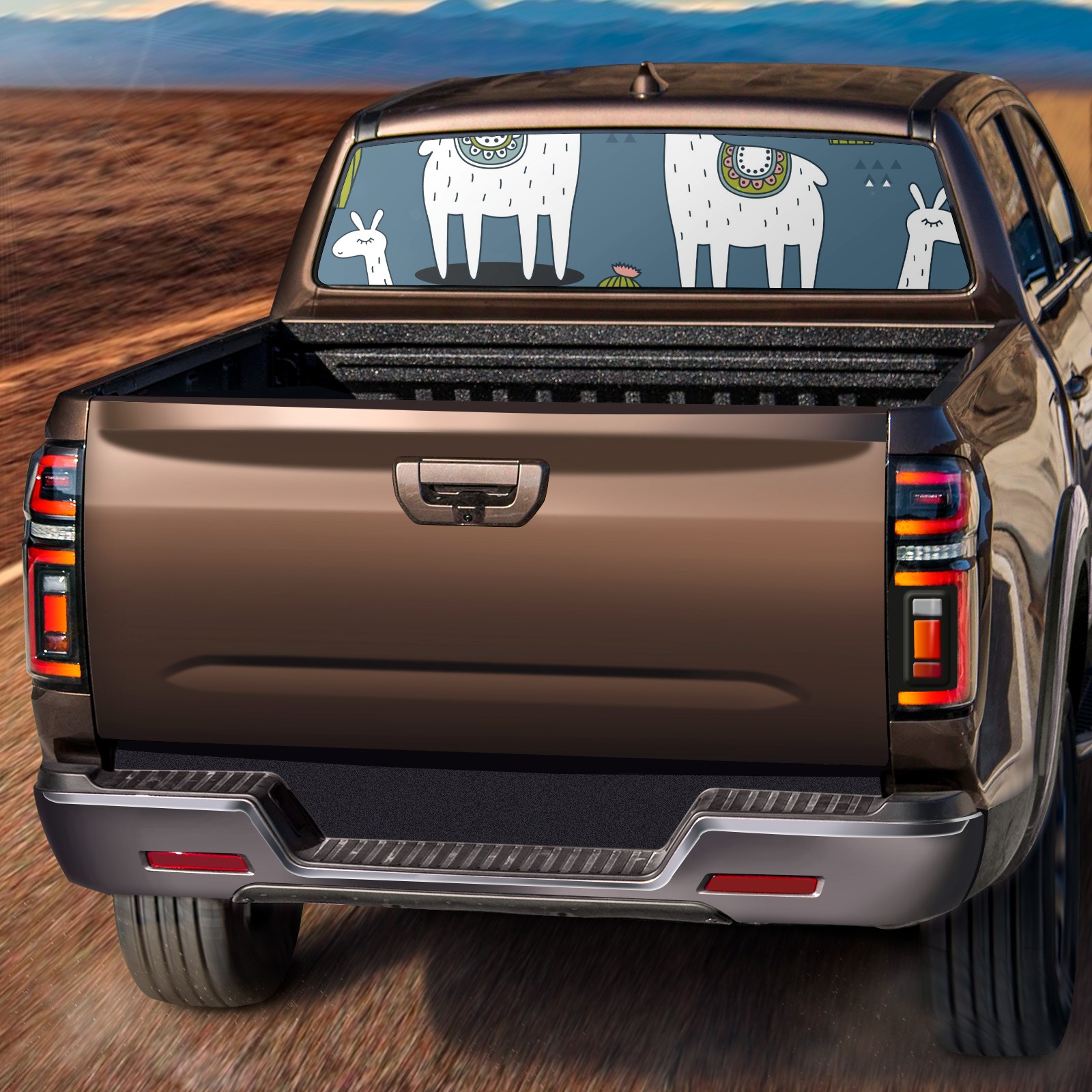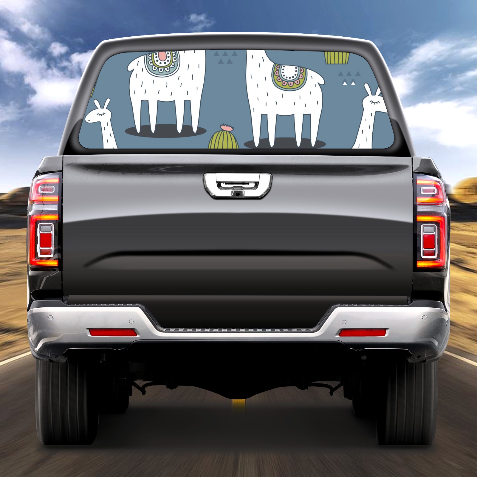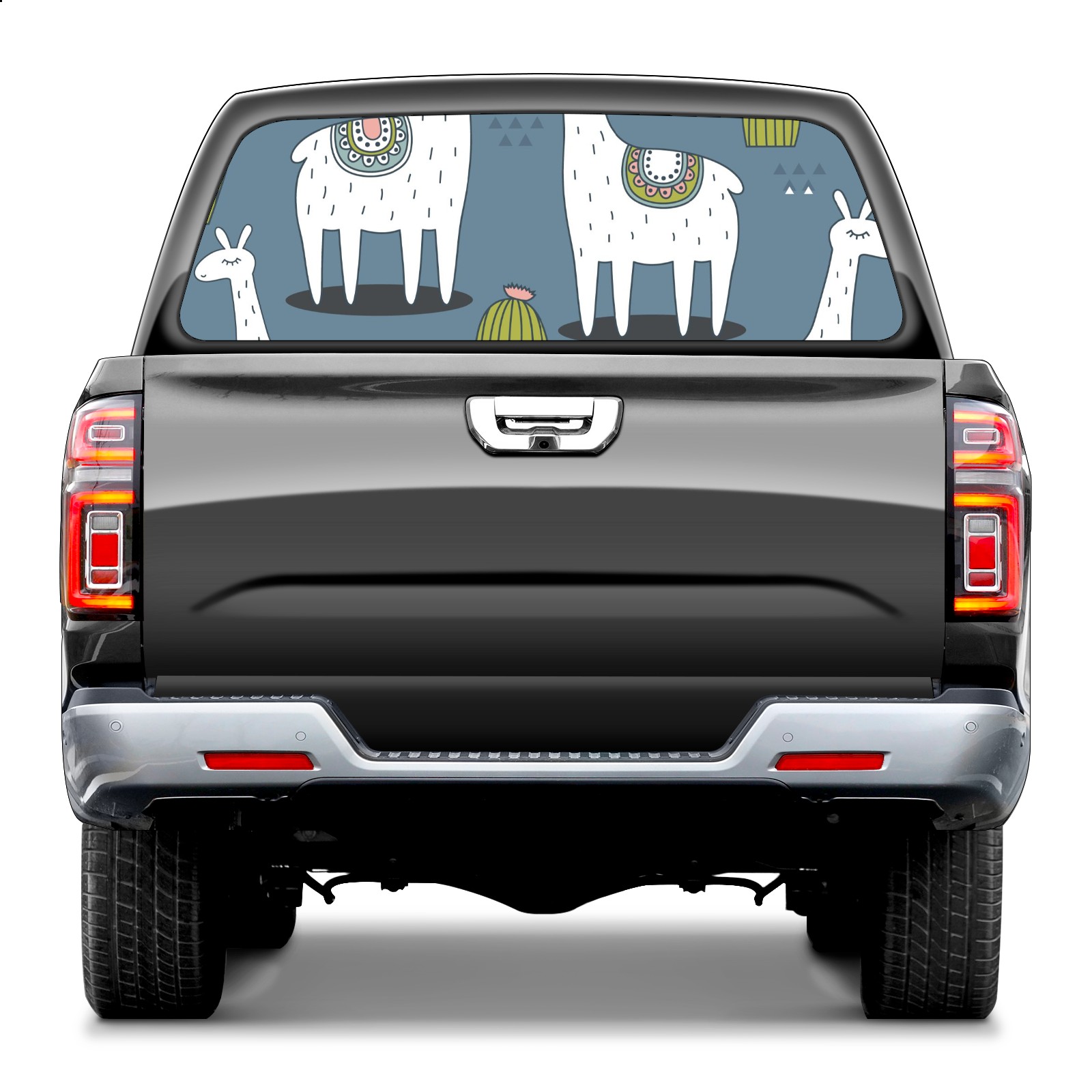 Truck Rear Window Graphics Decals Pickup Trucks Back Window Sticker Full Window Film Decal One Way Visual Waterproof Car Rear Tint Cute Alpaca Cactus 1