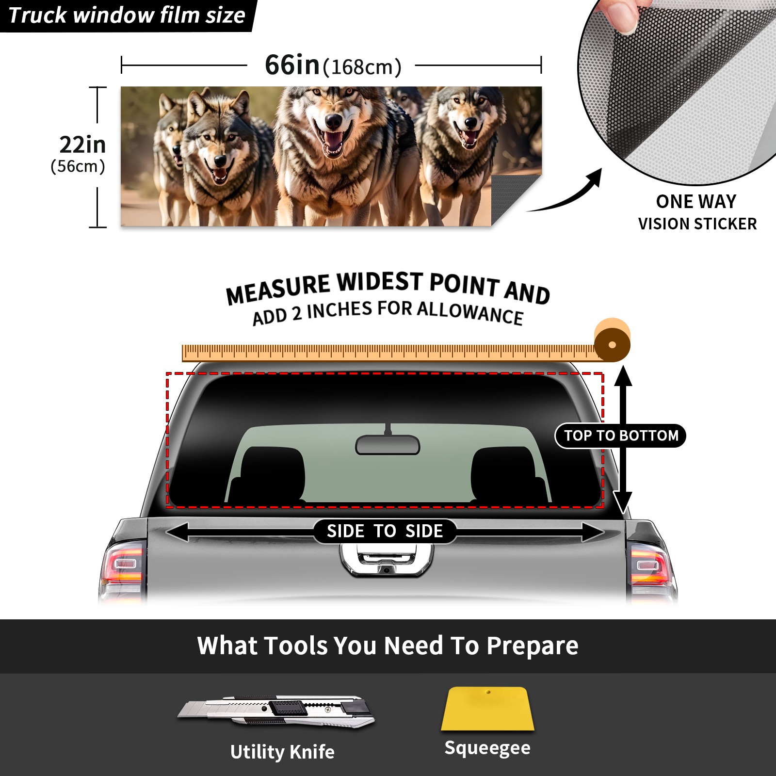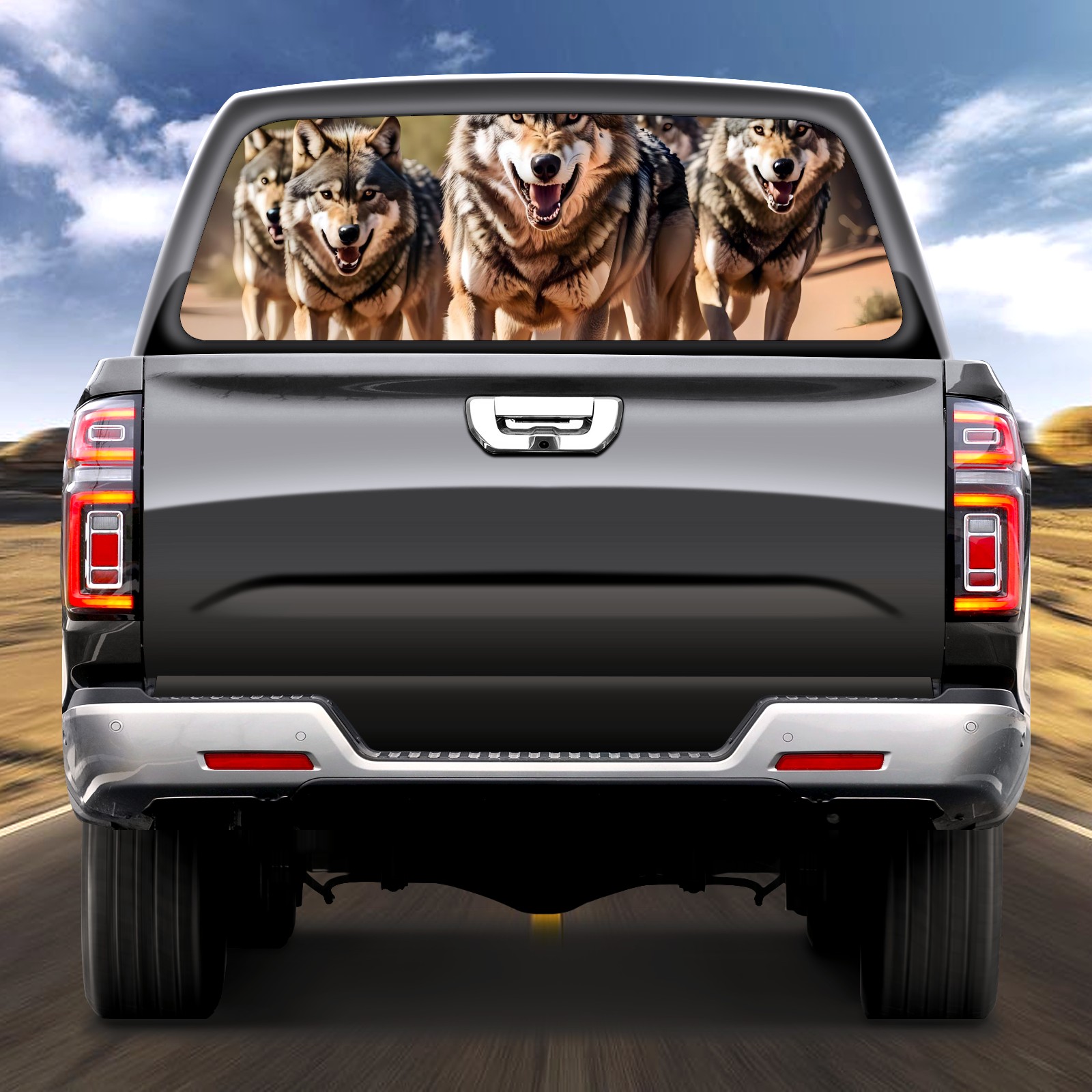 Truck Rear Window Graphics Decals Pickup Trucks Back Window Sticker Full Window Film Decal One Way Visual Waterproof Car Rear Tint Wolf