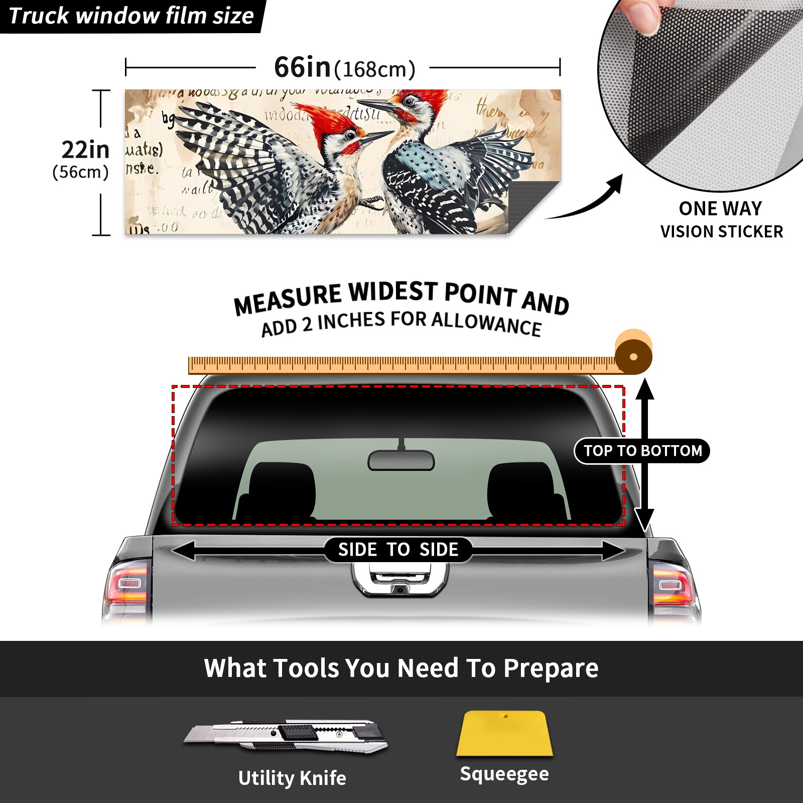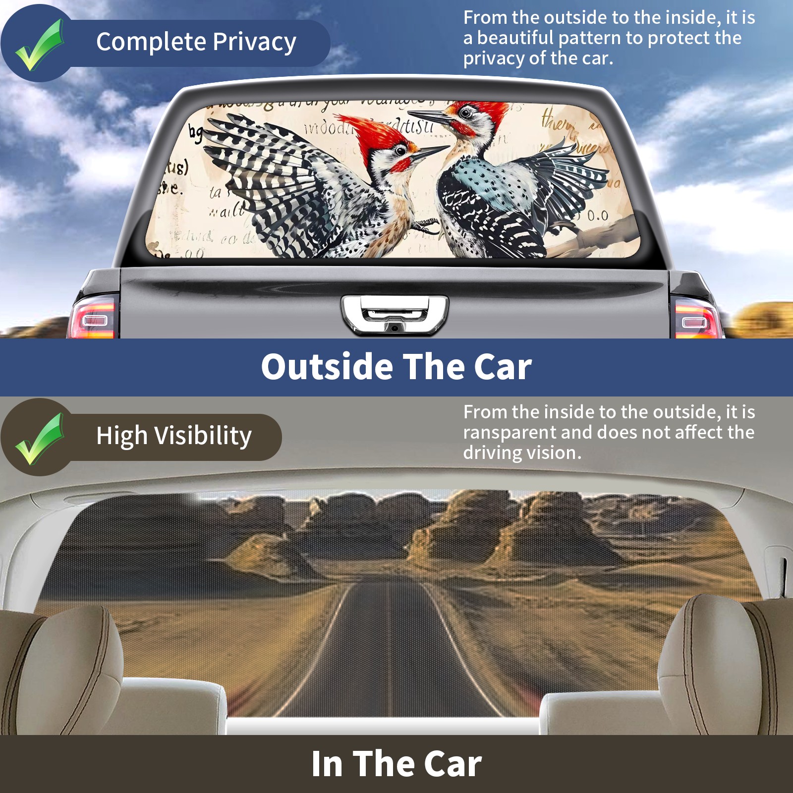 Truck Rear Window Graphics Decals Pickup Trucks Back Window Sticker Full Window Film Decal One Way Visual Waterproof Car Rear Tint Bird