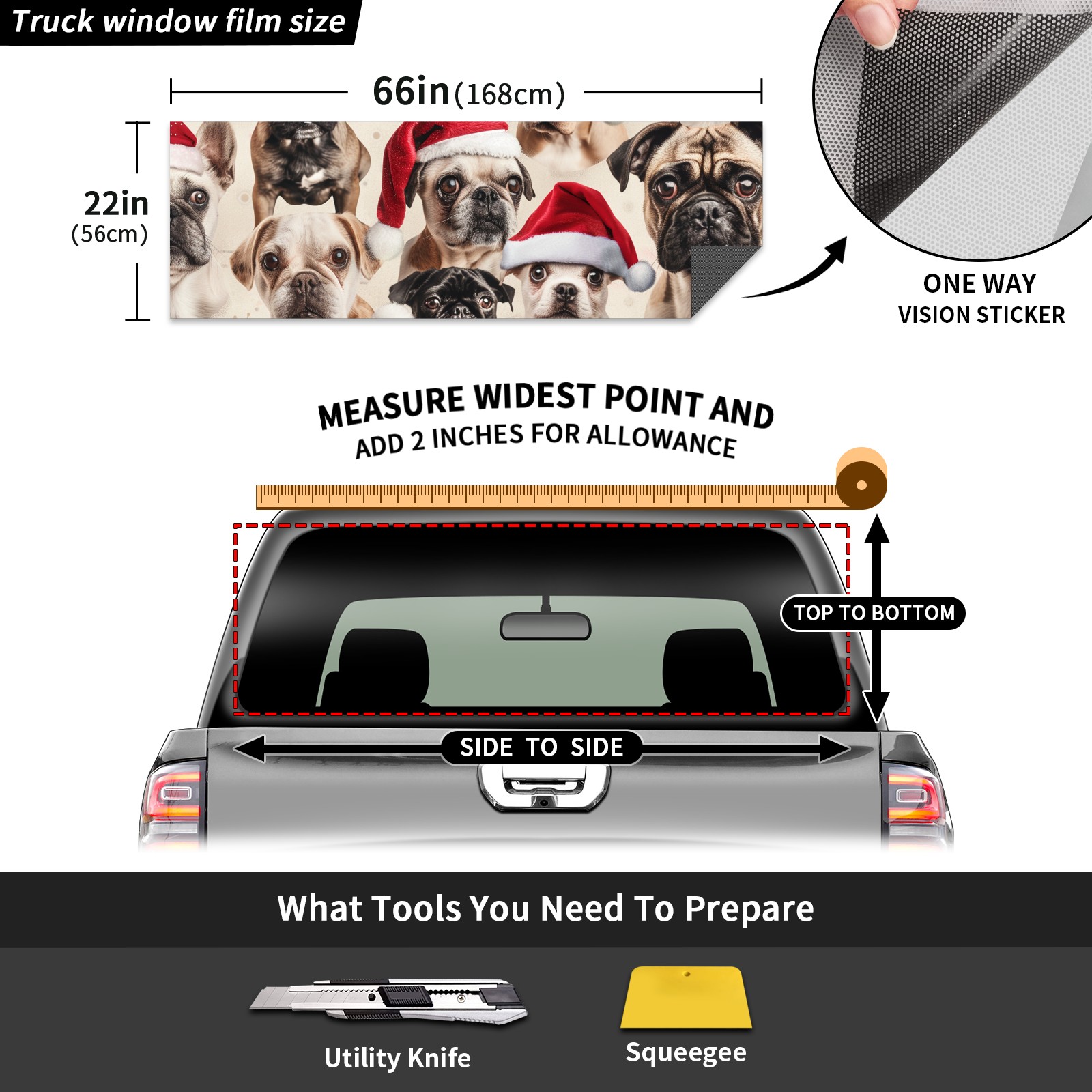Truck Rear Window Graphics Decals Pickup Trucks Back Window Sticker Full Window Film Decal One Way Visual Waterproof Car Rear Tint Dog