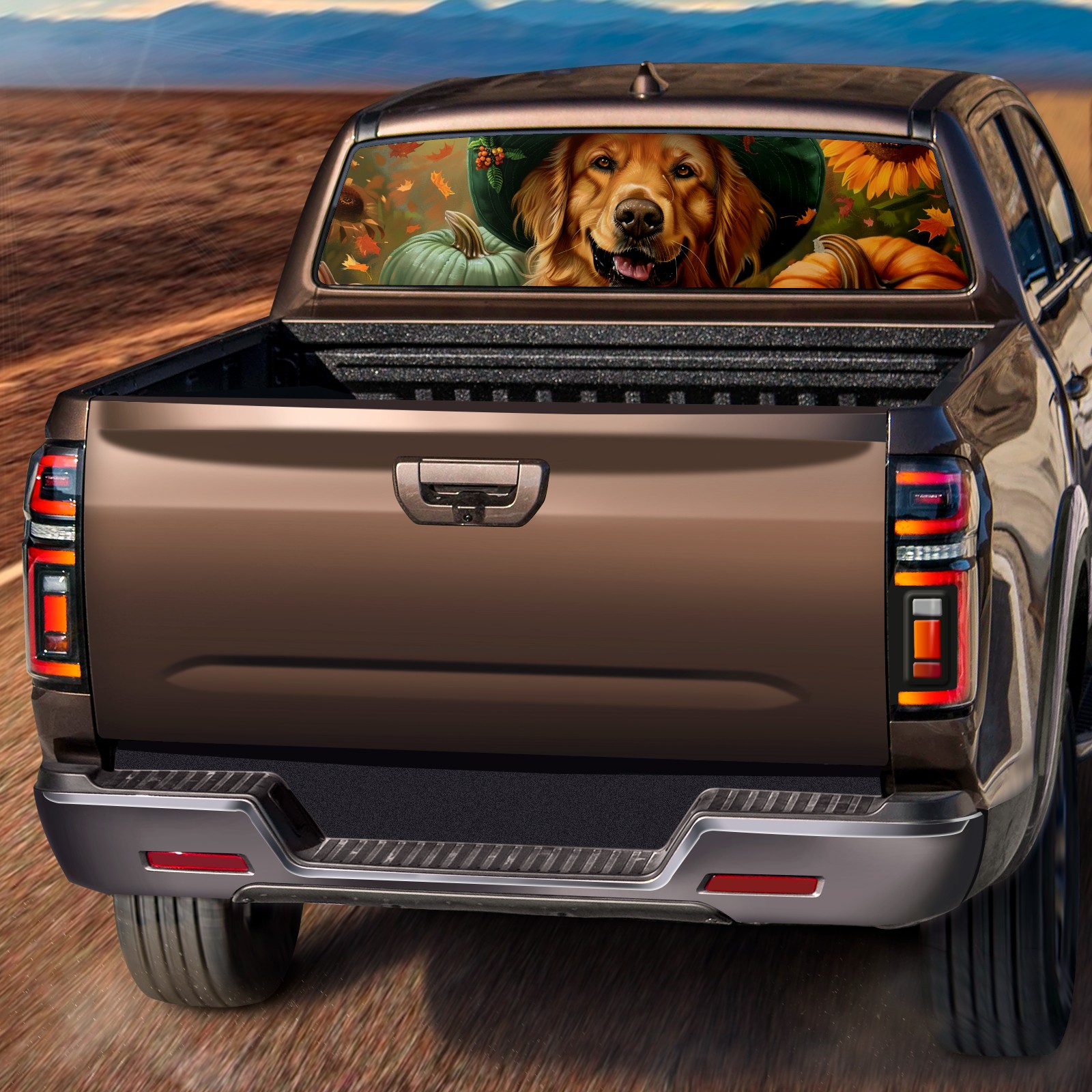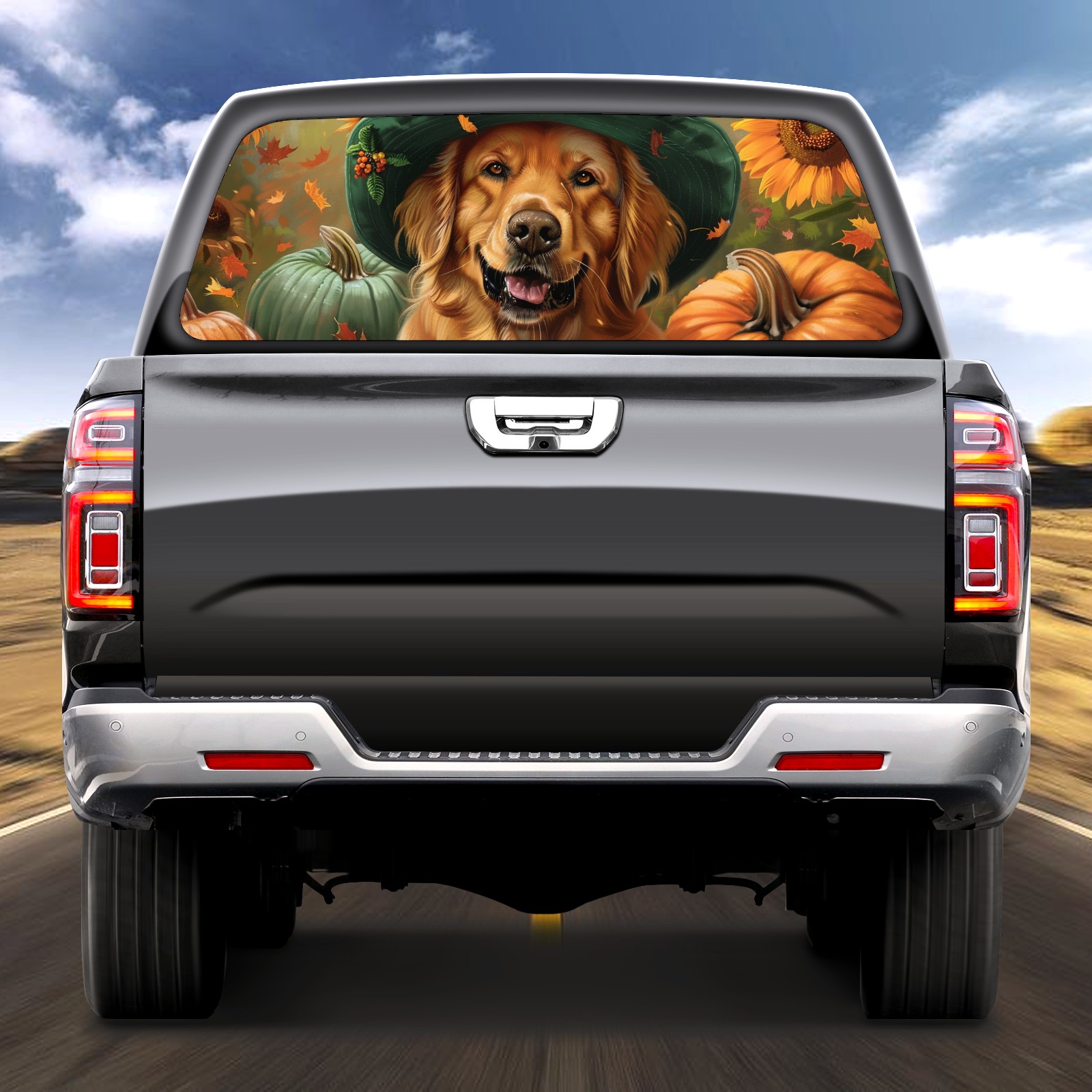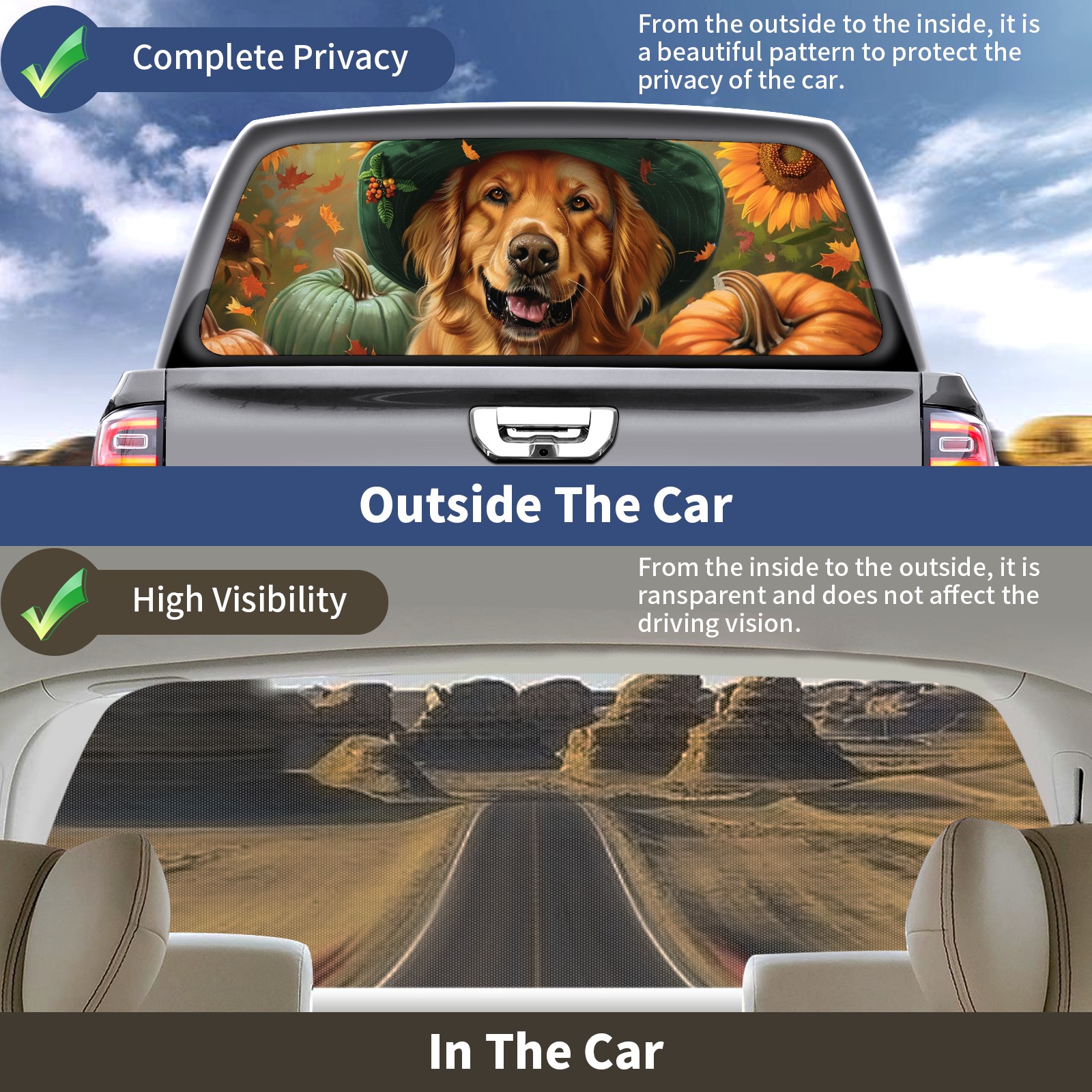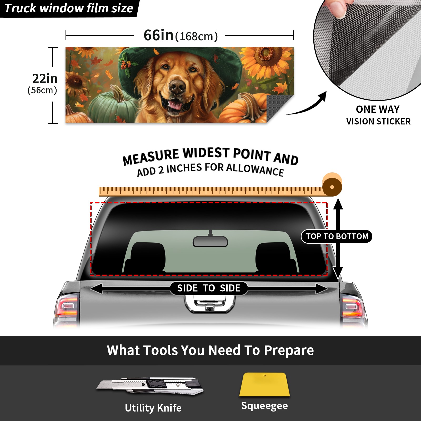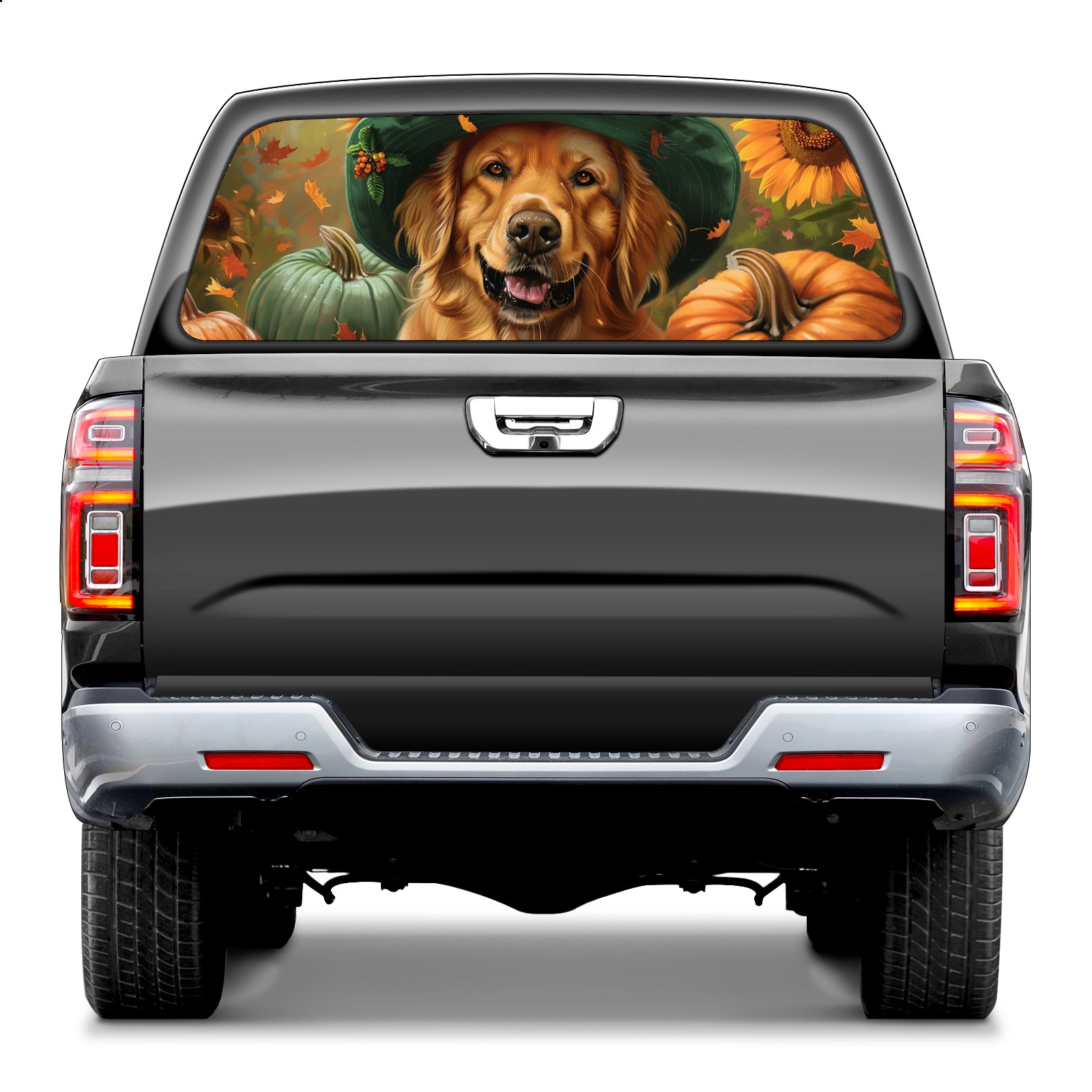 Truck Rear Window Graphics Decals Pickup Trucks Back Window Sticker Full Window Film Decal One Way Visual Waterproof Car Rear Tint Dog Sunflower