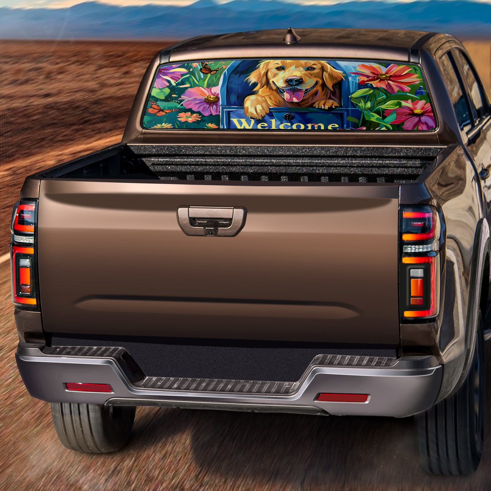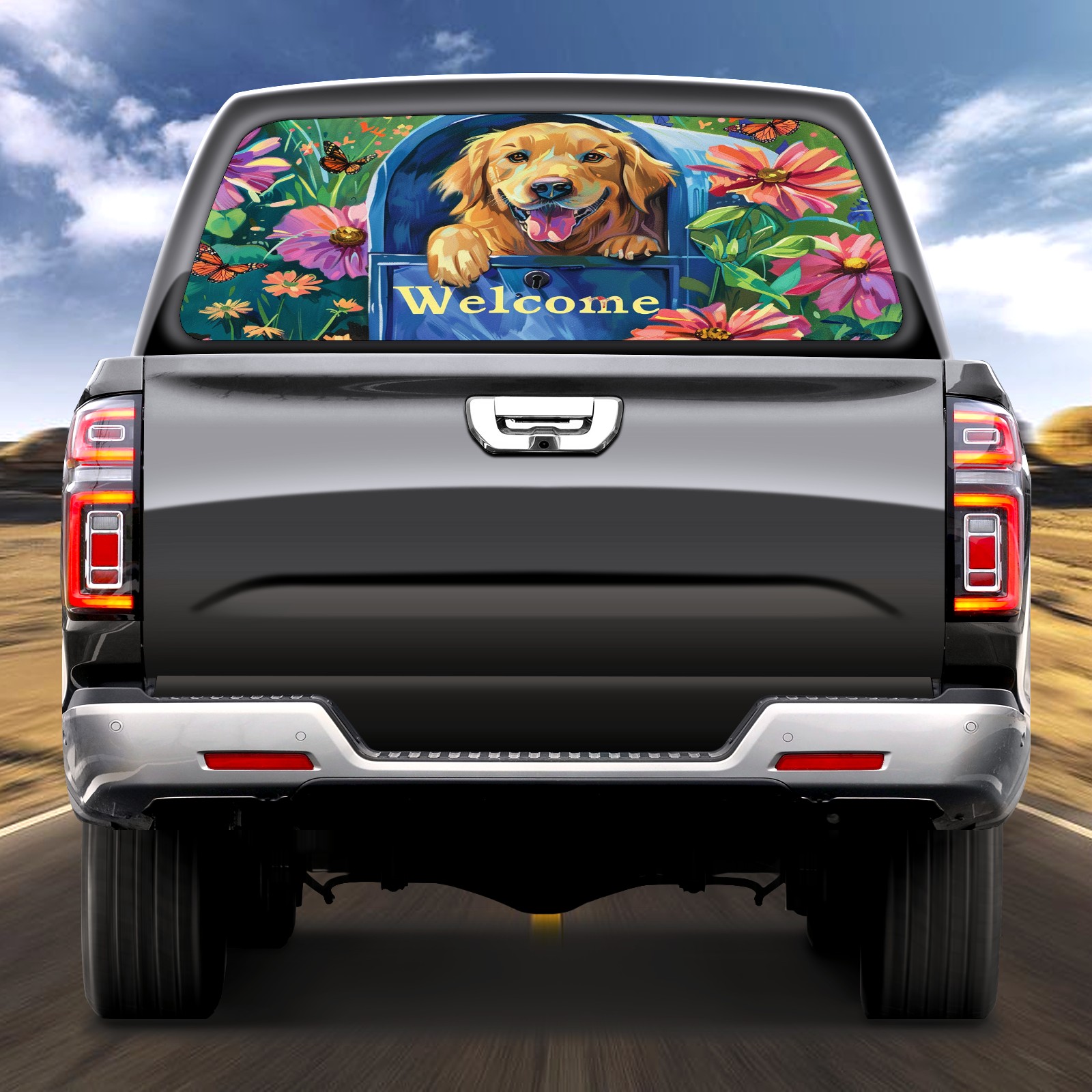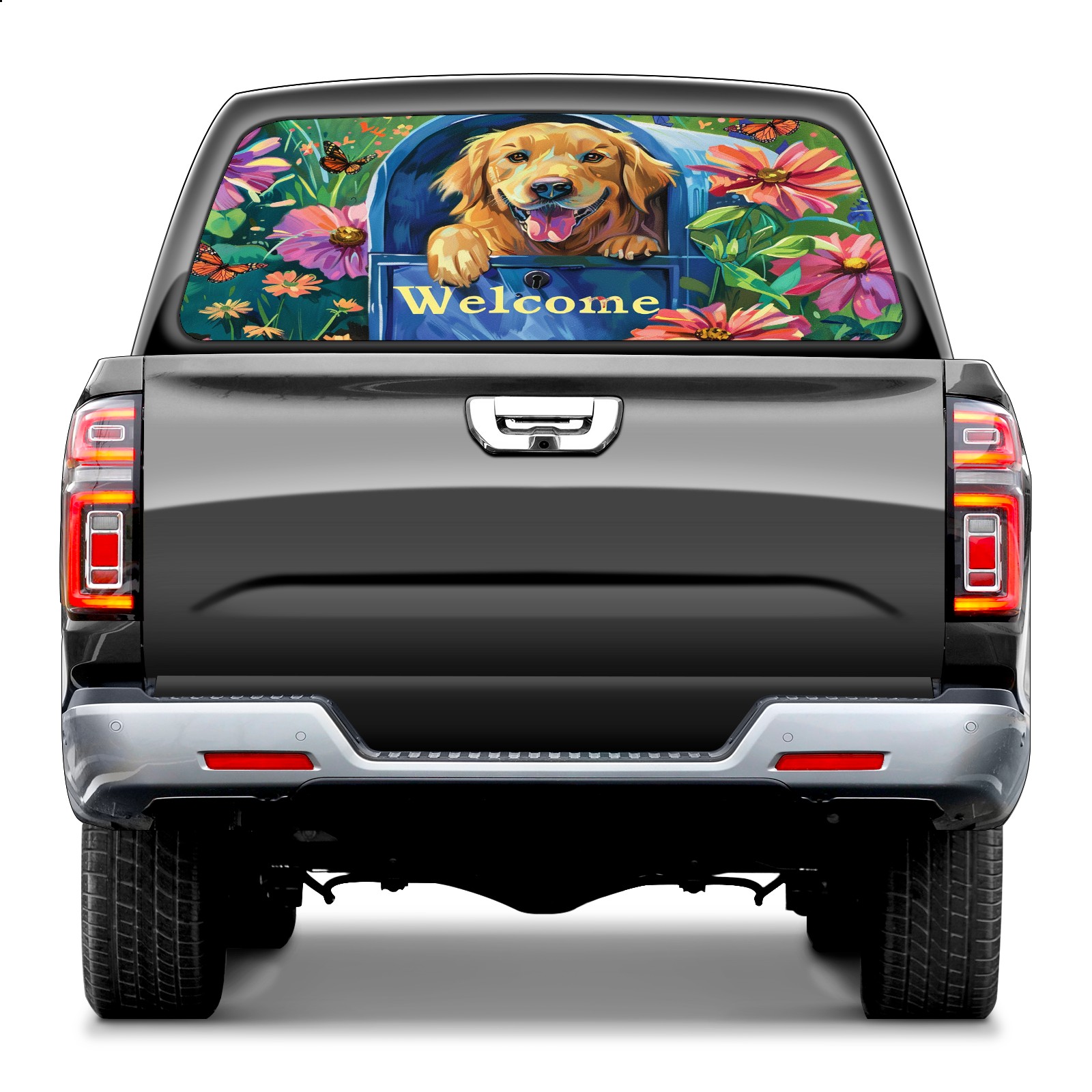 Truck Rear Window Graphics Decals Pickup Trucks Back Window Sticker Full Window Film Decal One Way Visual Waterproof Car Rear Tint Dog Flower