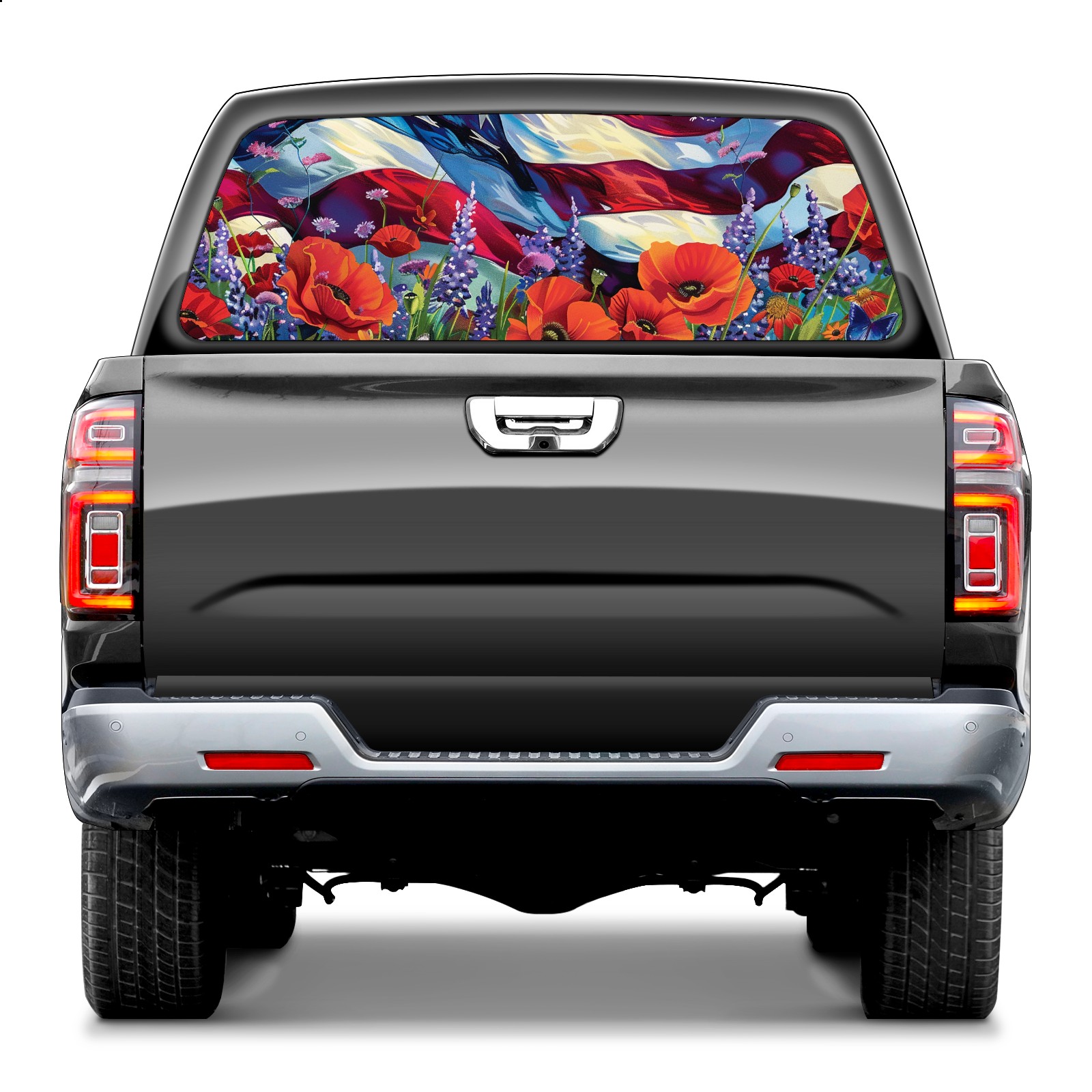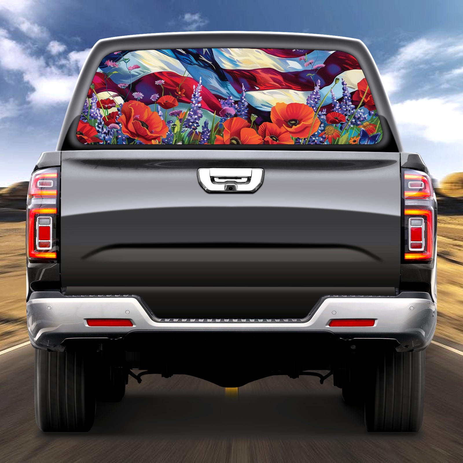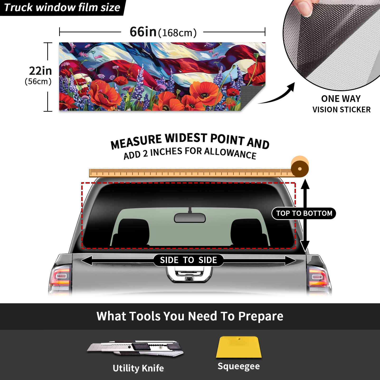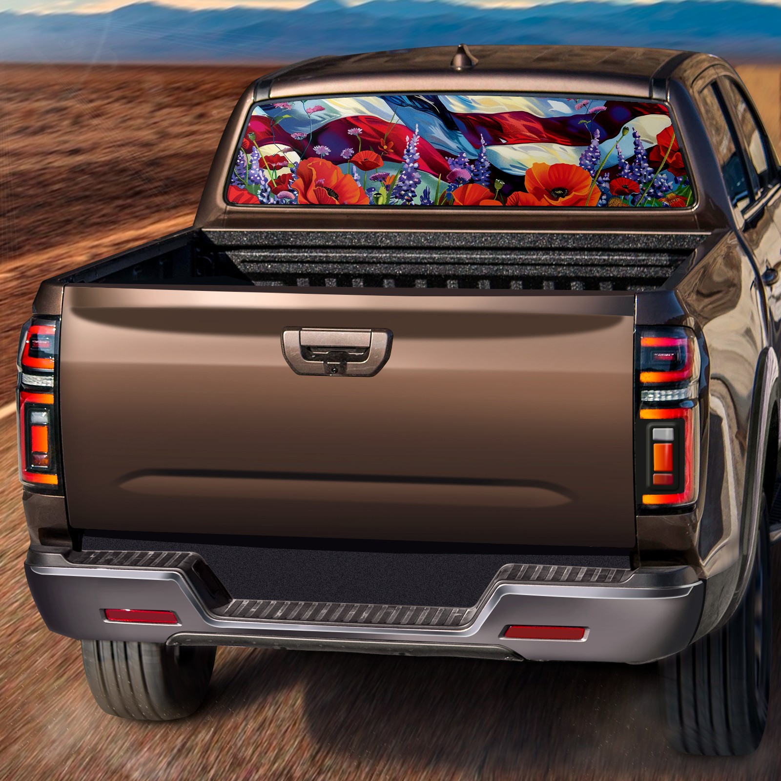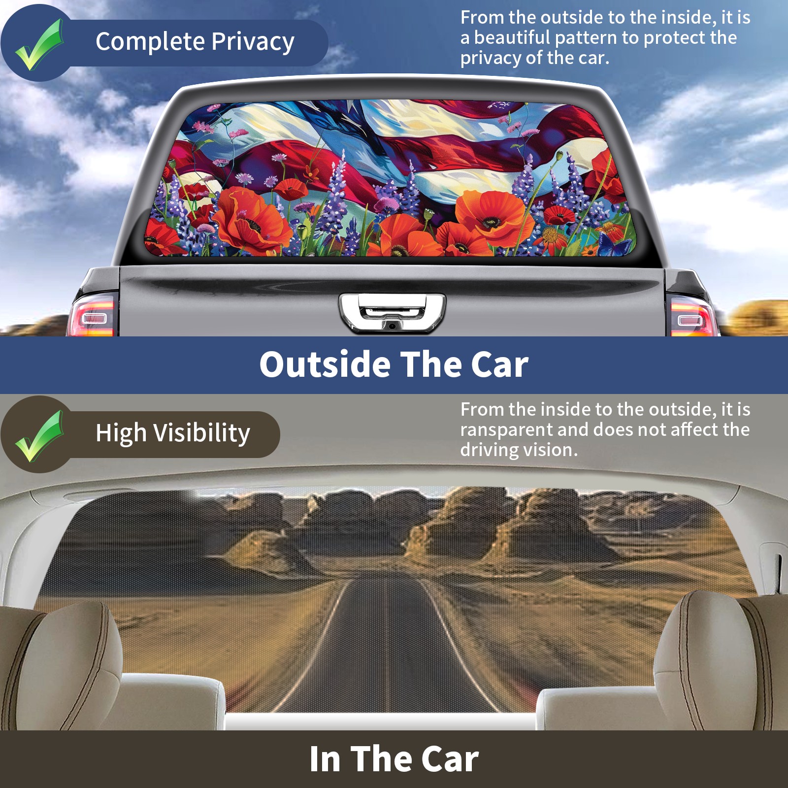 Truck Rear Window Graphics Decals Pickup Trucks Back Window Sticker Full Window Film Decal One Way Visual Waterproof Car Rear Tint American Flag Flower