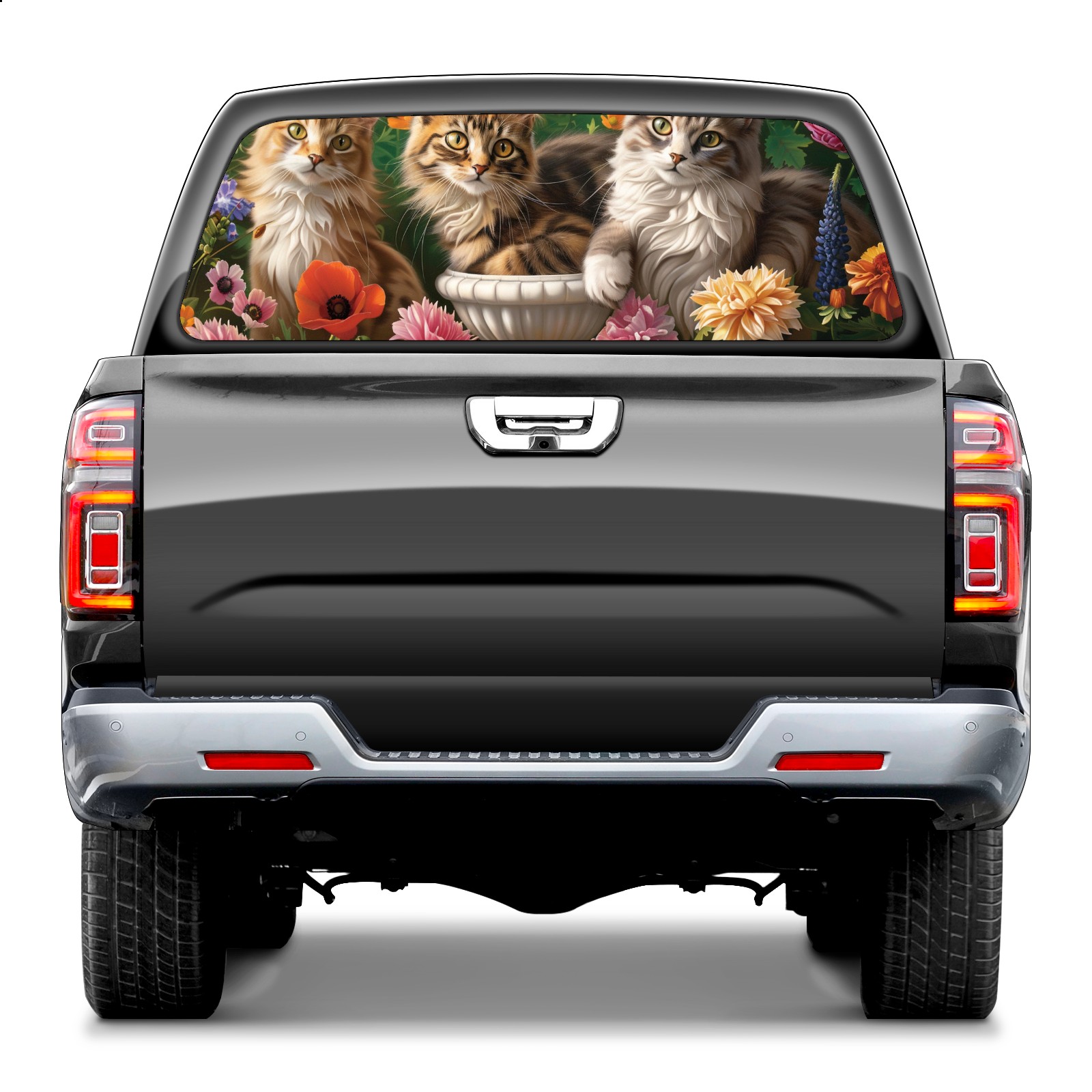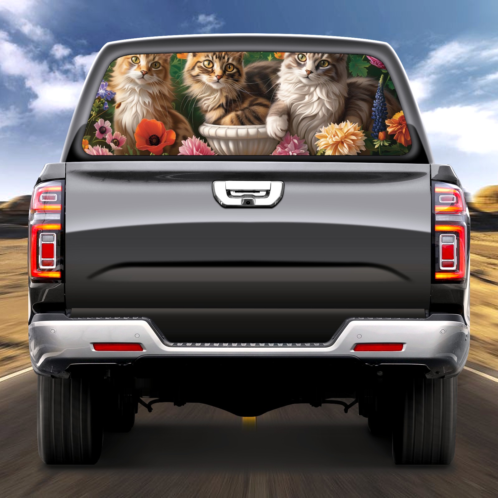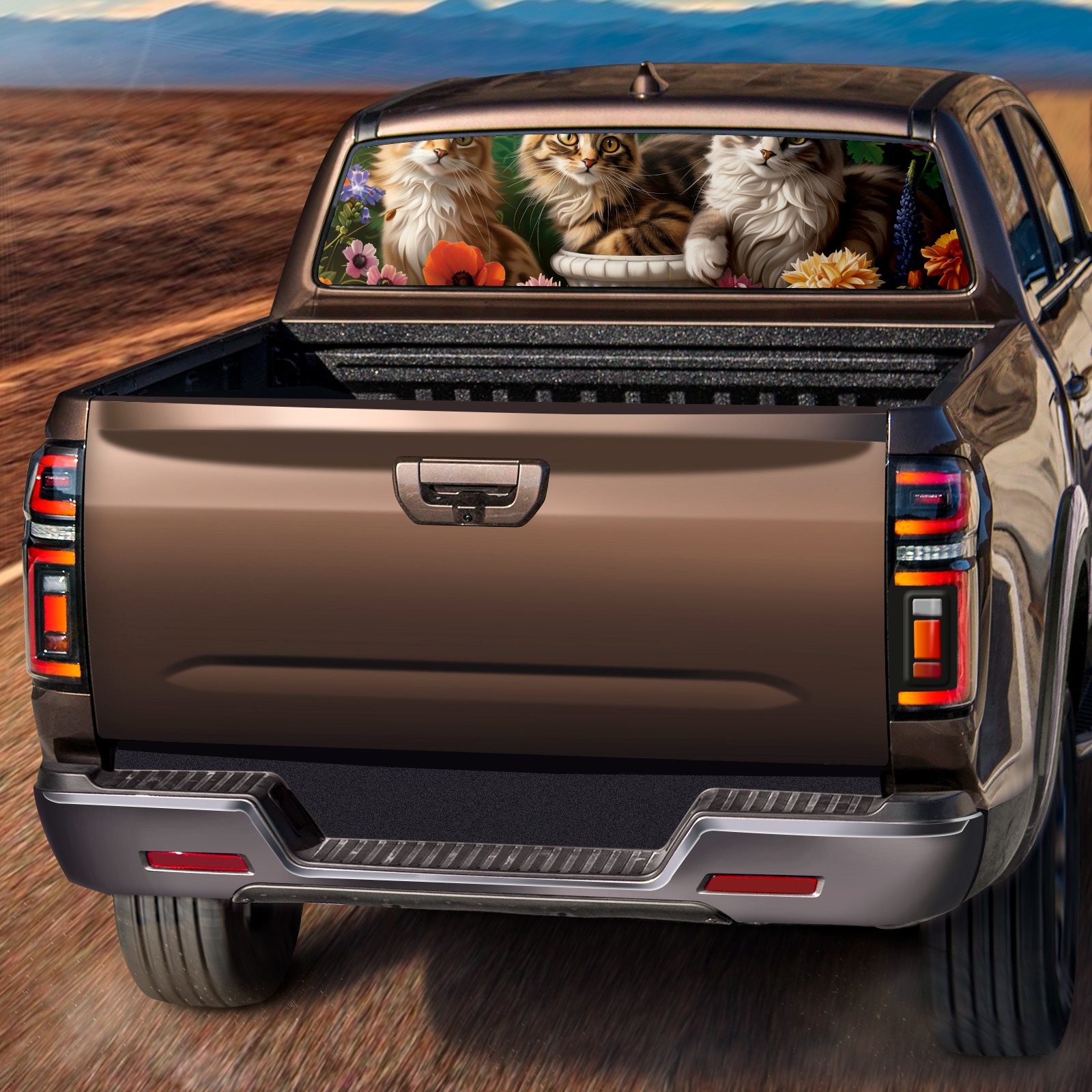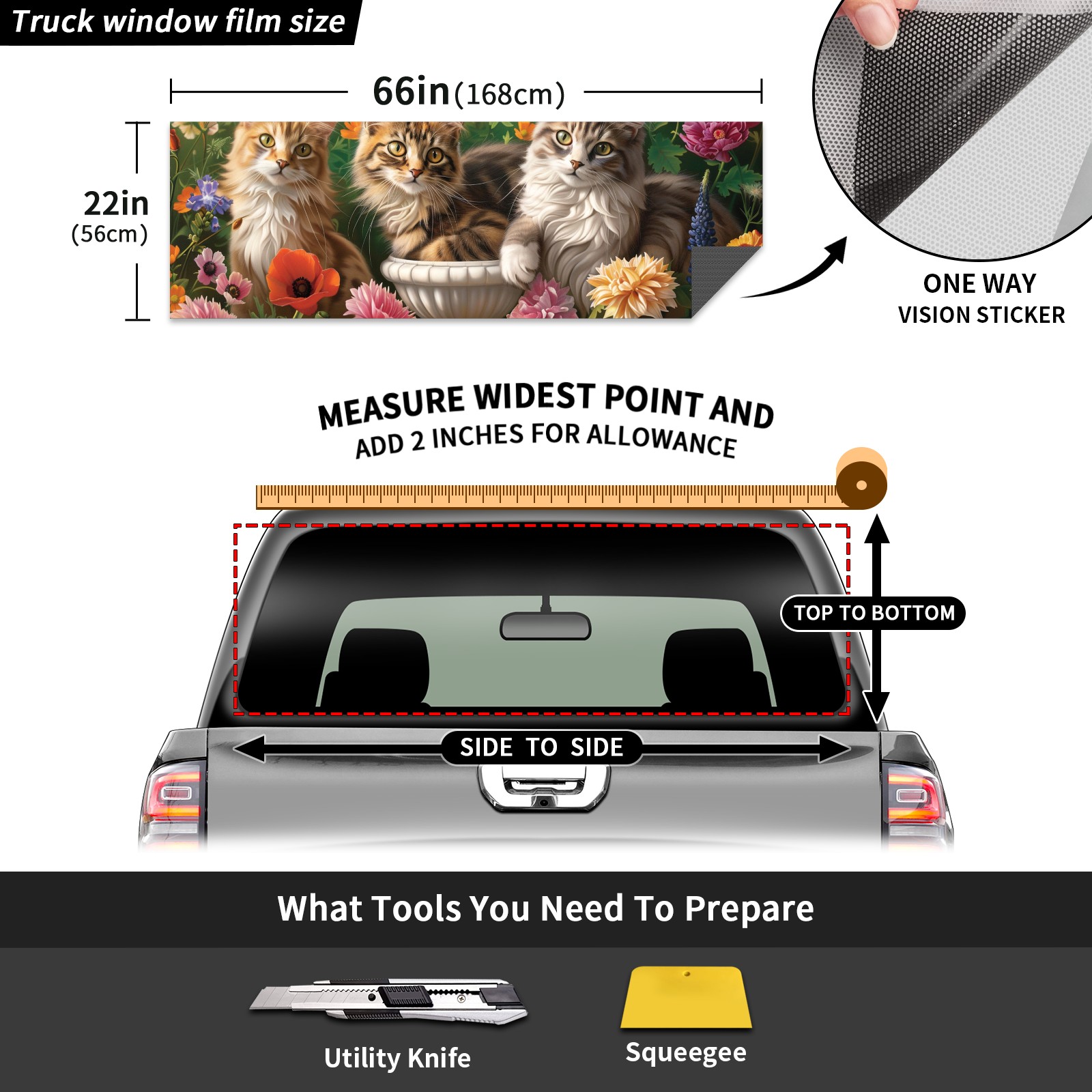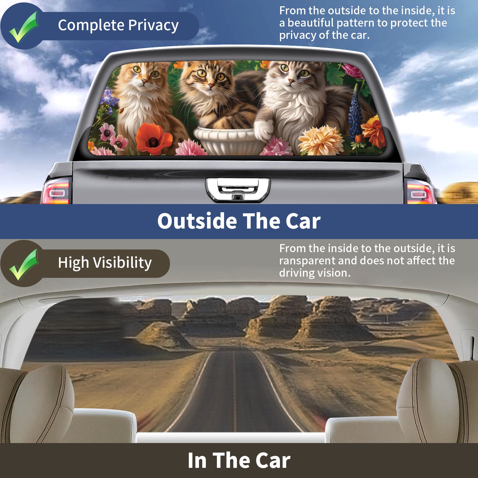 Truck Rear Window Graphics Decals Pickup Trucks Back Window Sticker Full Window Film Decal One Way Visual Waterproof Car Rear Tint Cat Flower