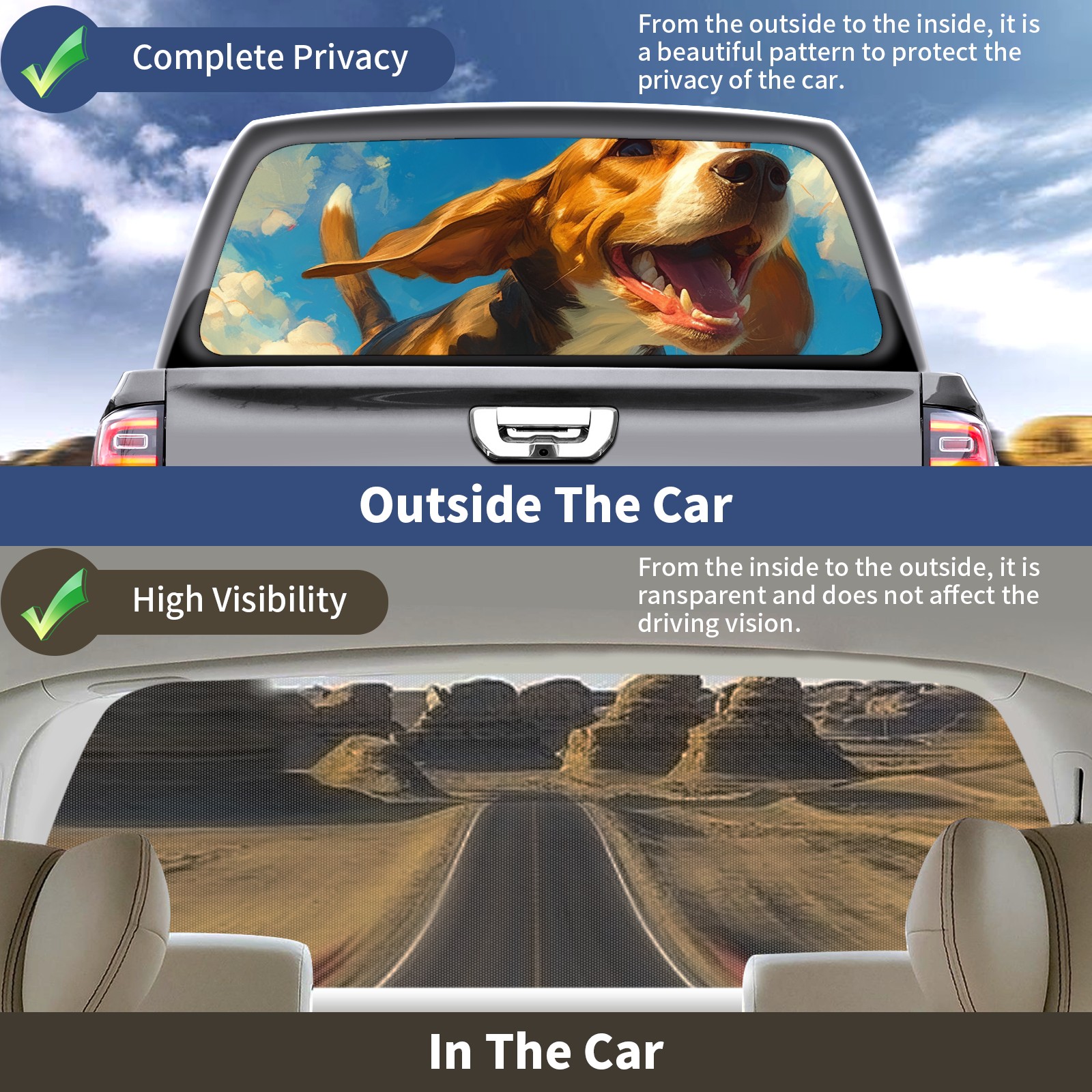 Truck Rear Window Graphics Decals Pickup Trucks Back Window Sticker Full Window Film Decal One Way Visual Waterproof Car Rear Tint Dog 4
