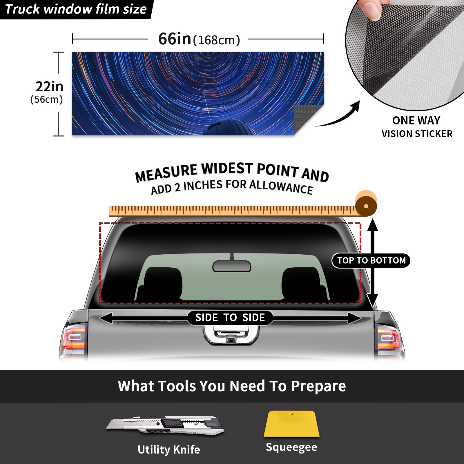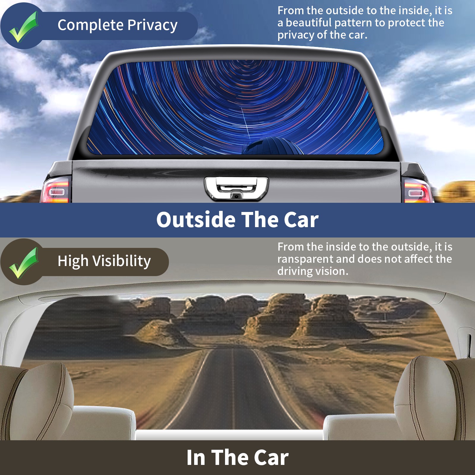 Truck Rear Window Graphics Decals Pickup Trucks Back Window Sticker Full Window Film Decal One Way Visual Waterproof Car Rear Tint The Night Sky