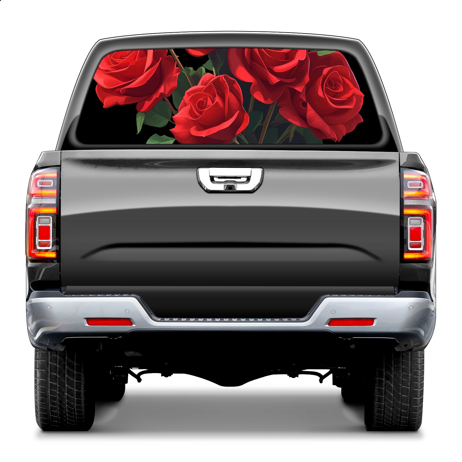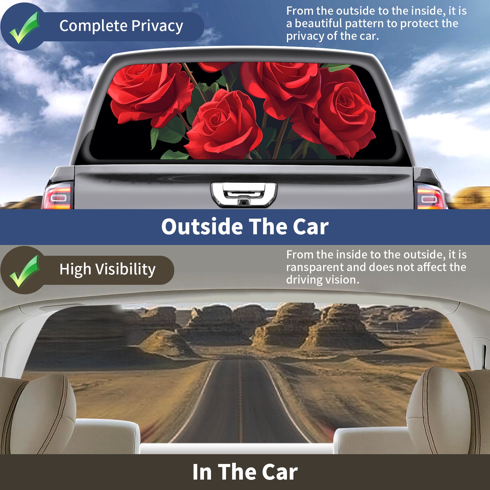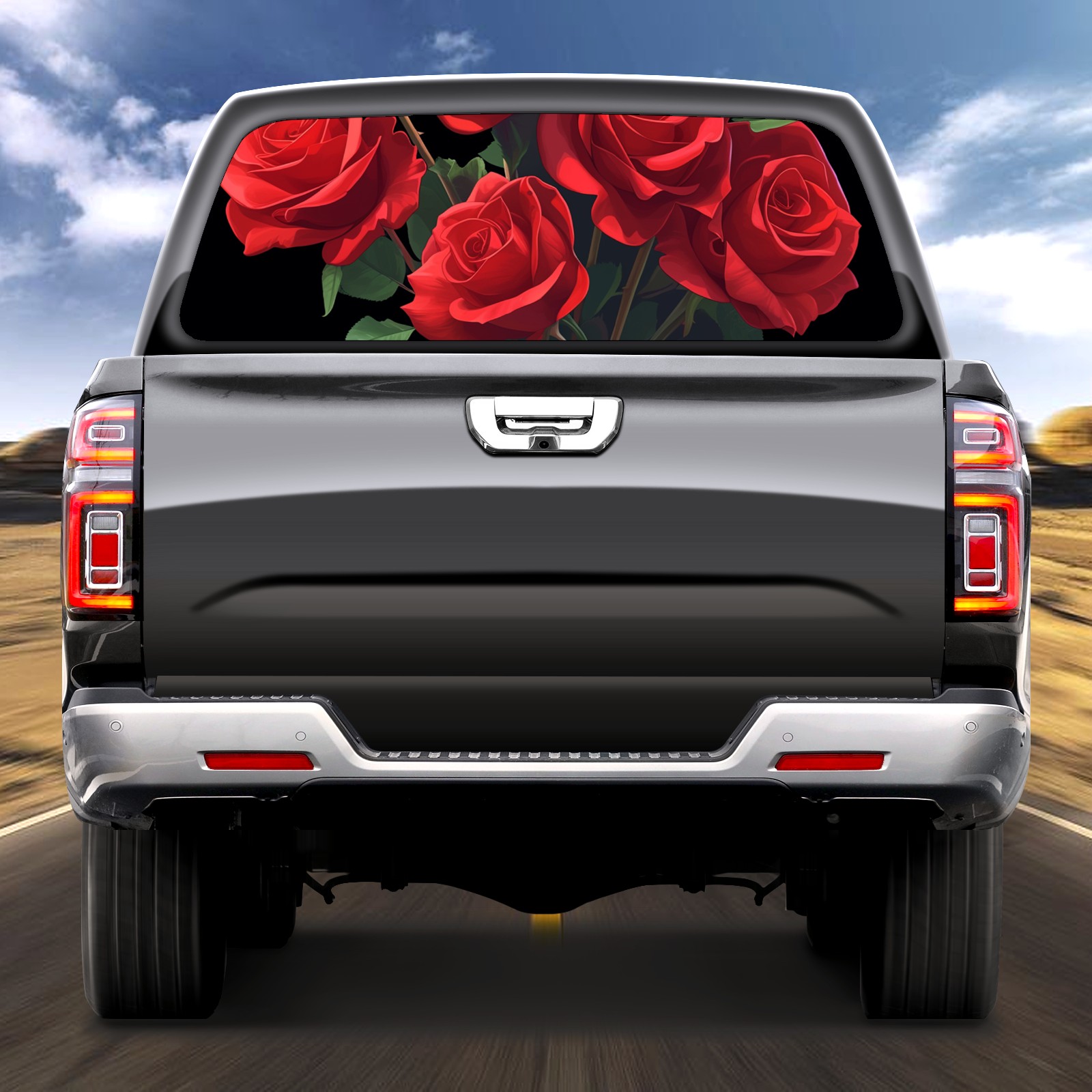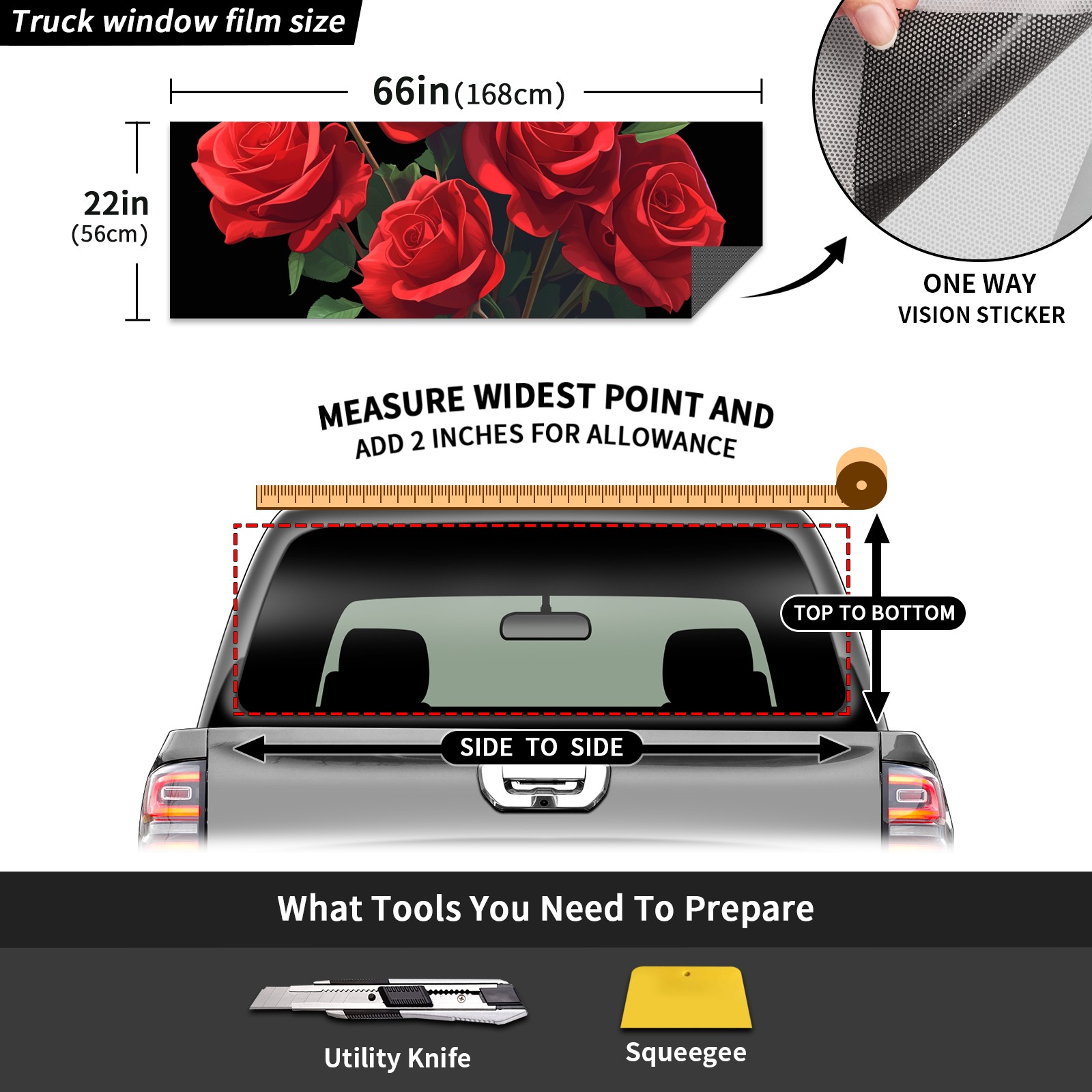 Truck Rear Window Graphics Decals Pickup Trucks Back Window Sticker Full Window Film Decal One Way Visual Waterproof Car Rear Tint Roses1