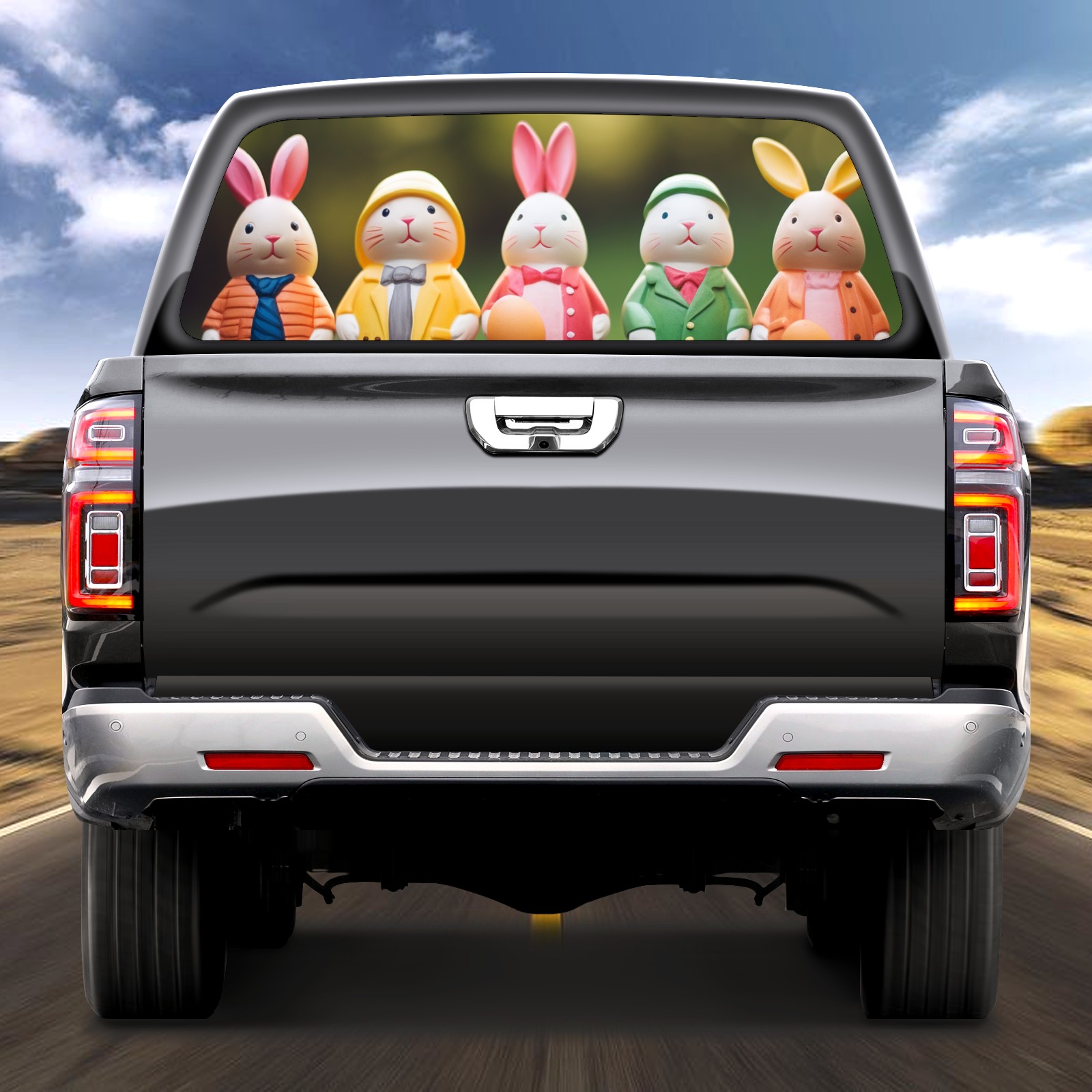 Truck Rear Window Graphics Decals Pickup Trucks Back Window Sticker Full Window Film Decal One Way Visual Waterproof Car Rear Tint Easter
