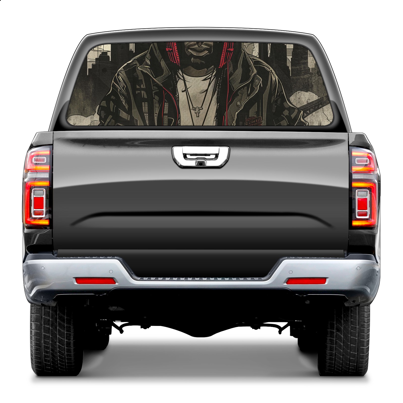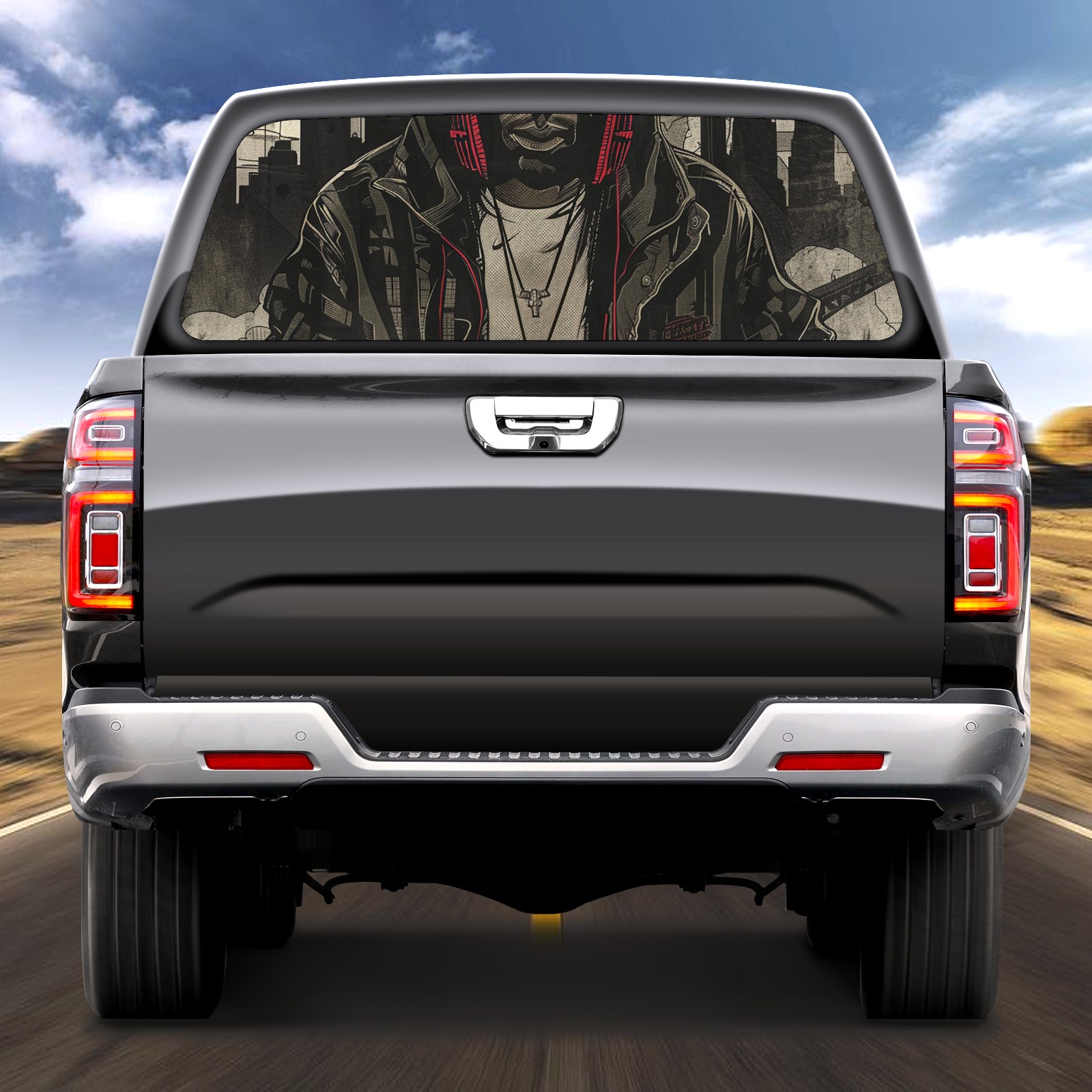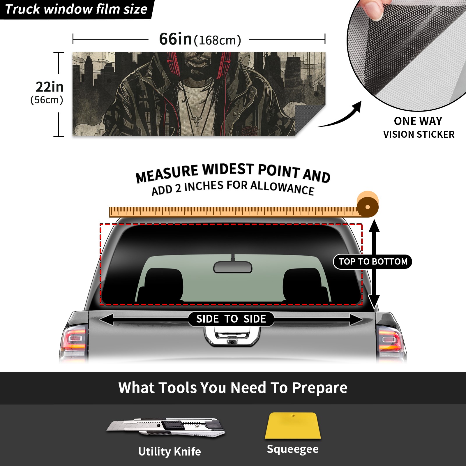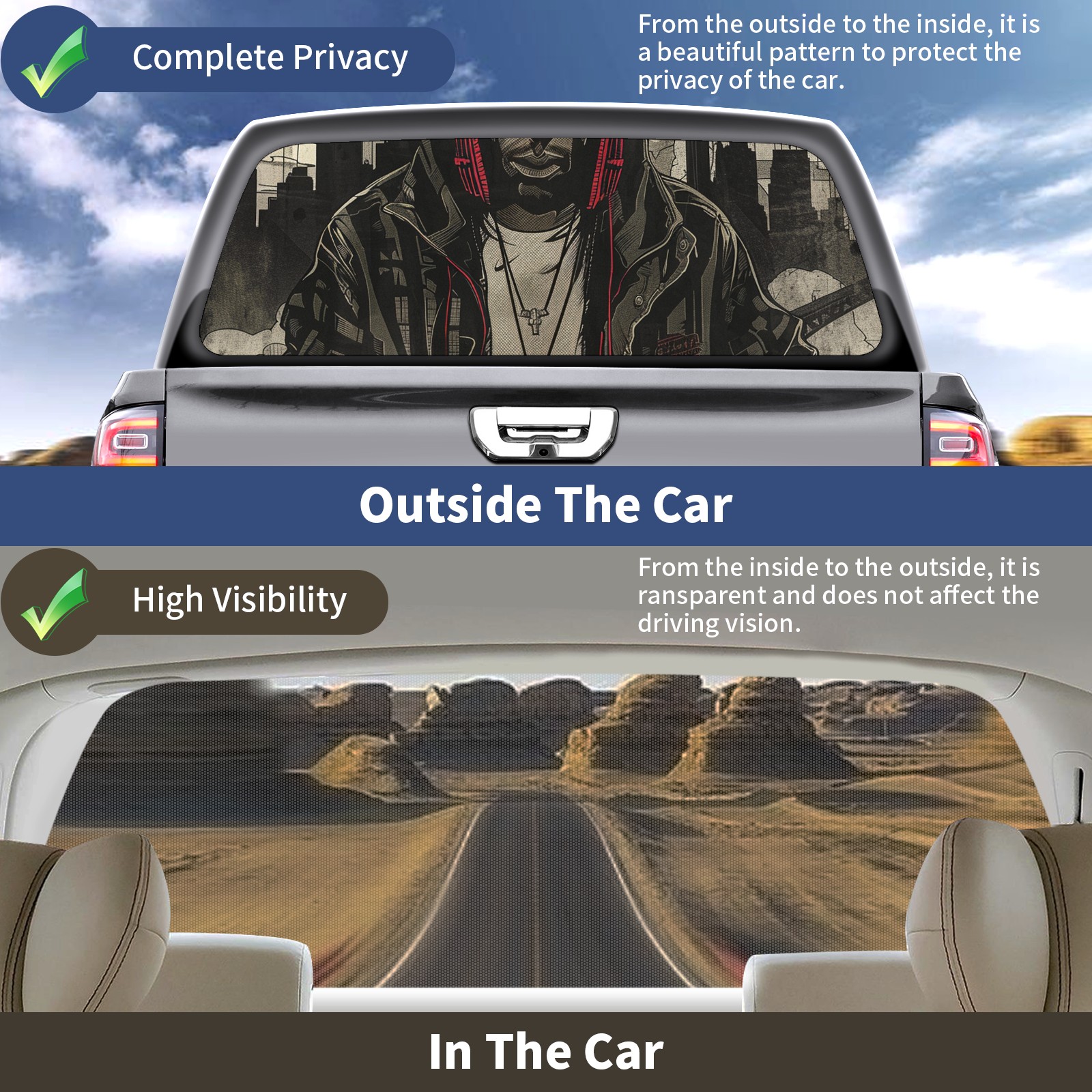 Truck Rear Window Graphics Decals Pickup Trucks Back Window Sticker Full Window Film Decal One Way Visual Waterproof Car Rear Tint Vintage Rap (182)