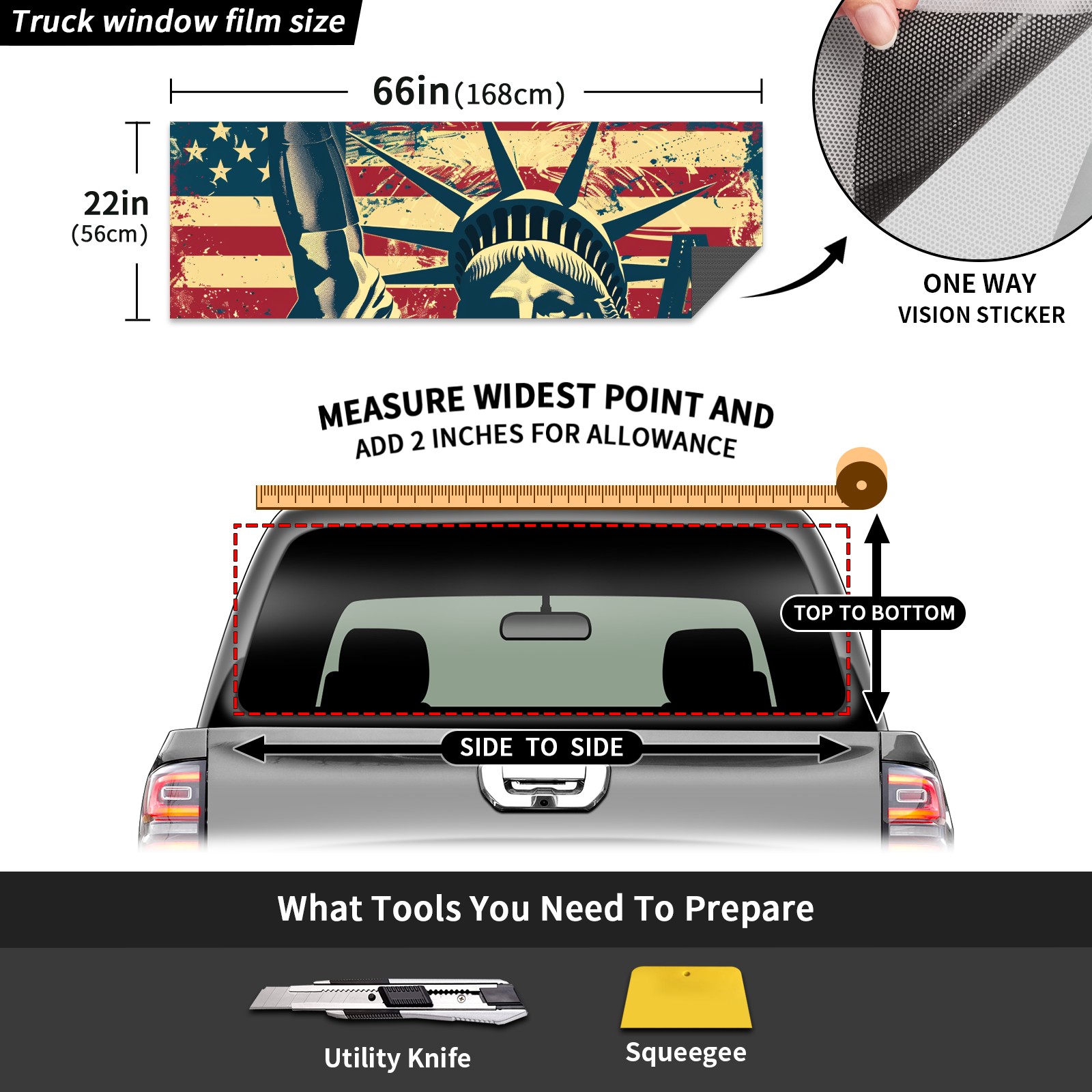 Truck Rear Window Graphics Decals Pickup Trucks Back Window Sticker Full Window Film Decal One Way Visual Waterproof Car Rear Tint Portrait