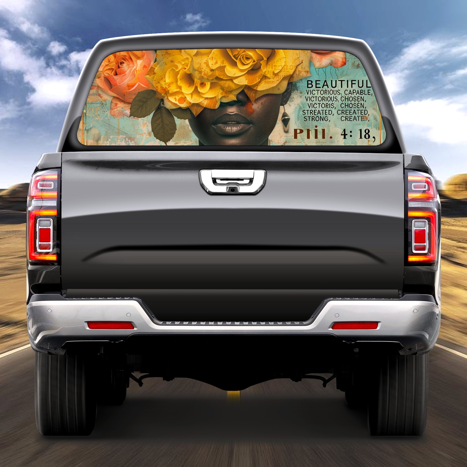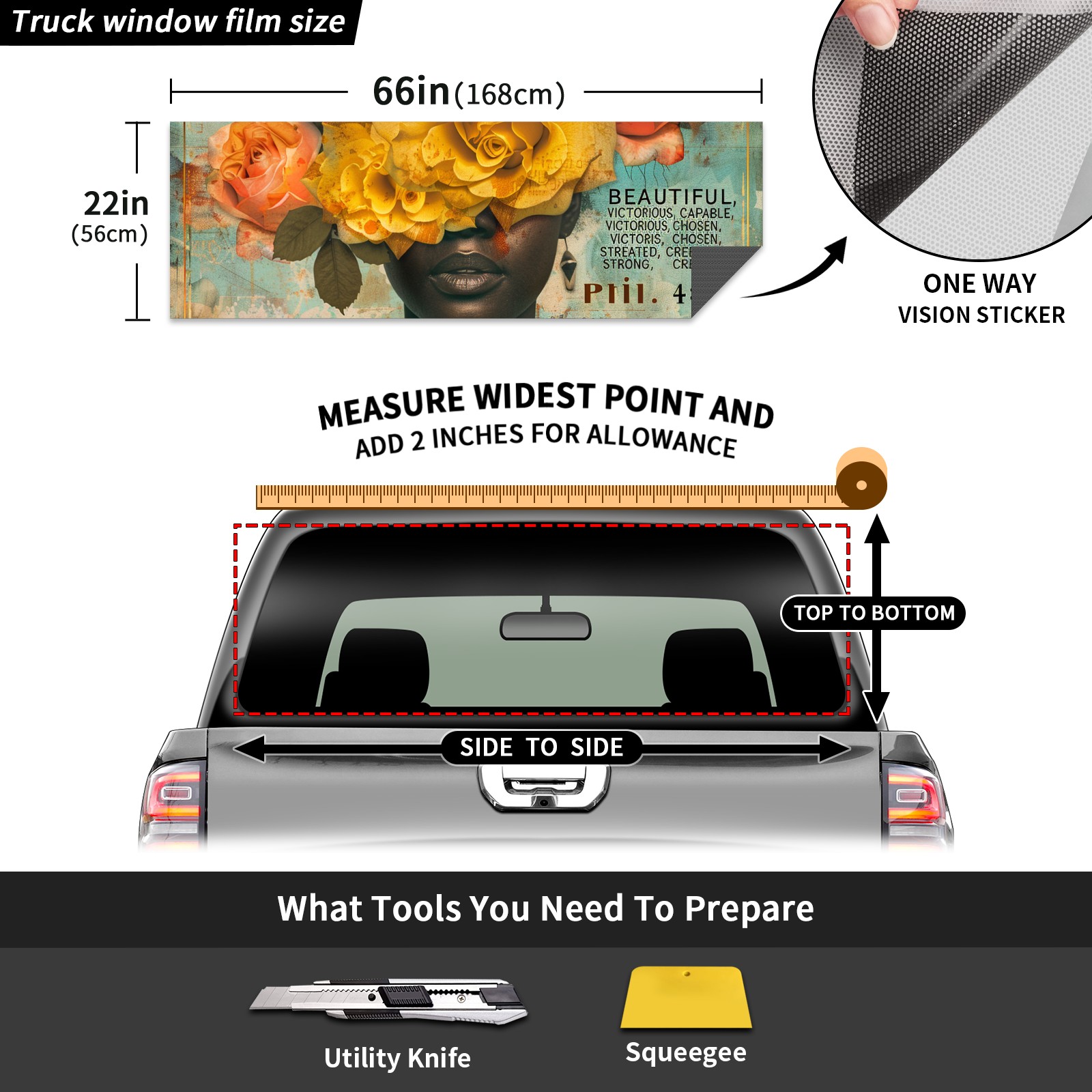 Truck Rear Window Graphics Decals Pickup Trucks Back Window Sticker Full Window Film Decal One Way Visual Waterproof Car Rear Tint Black Girl
