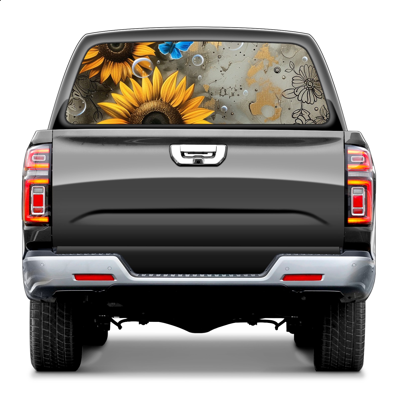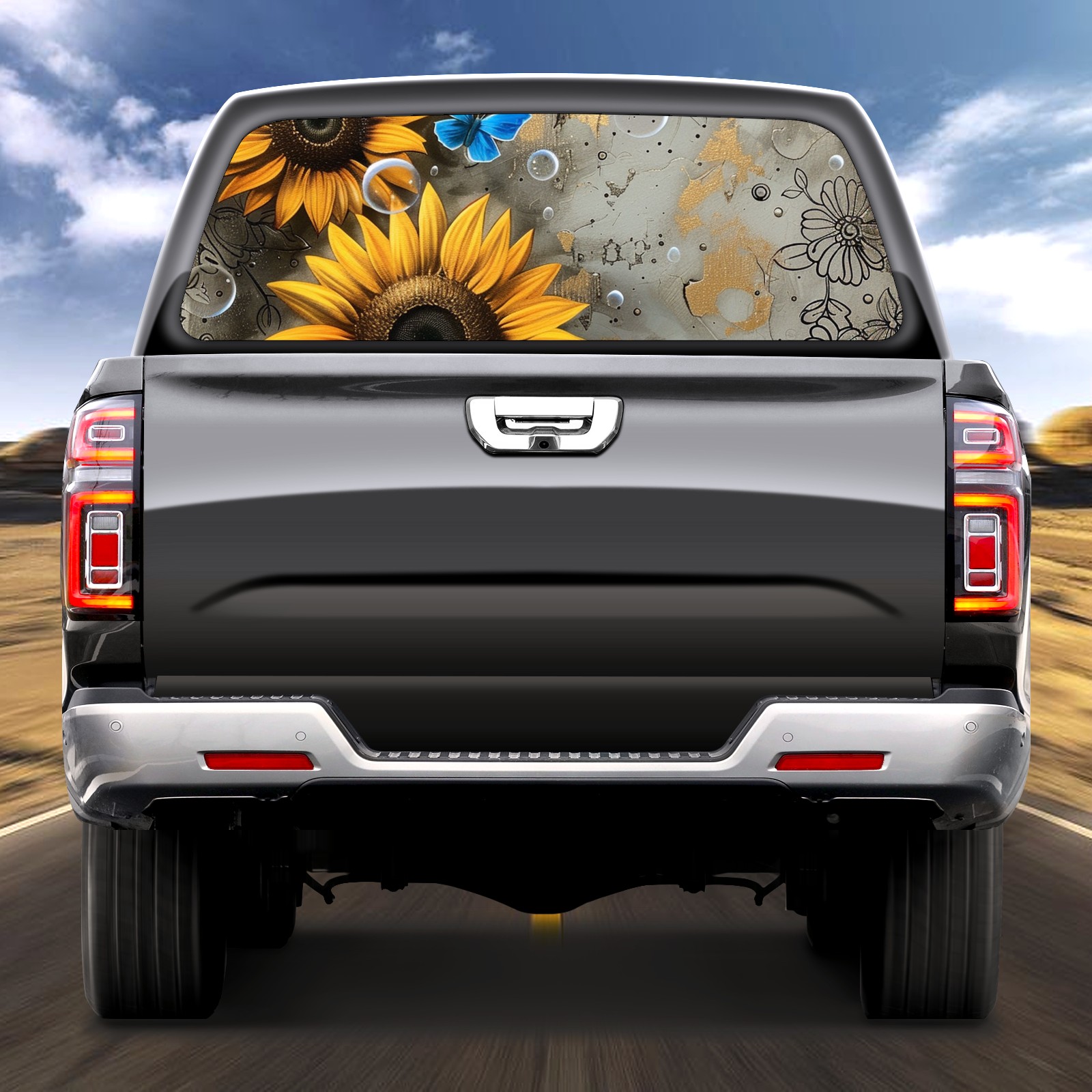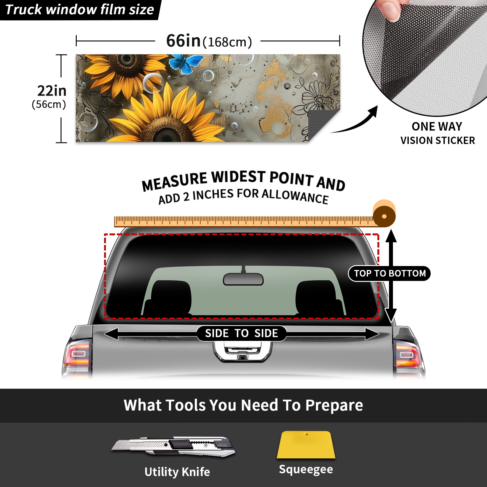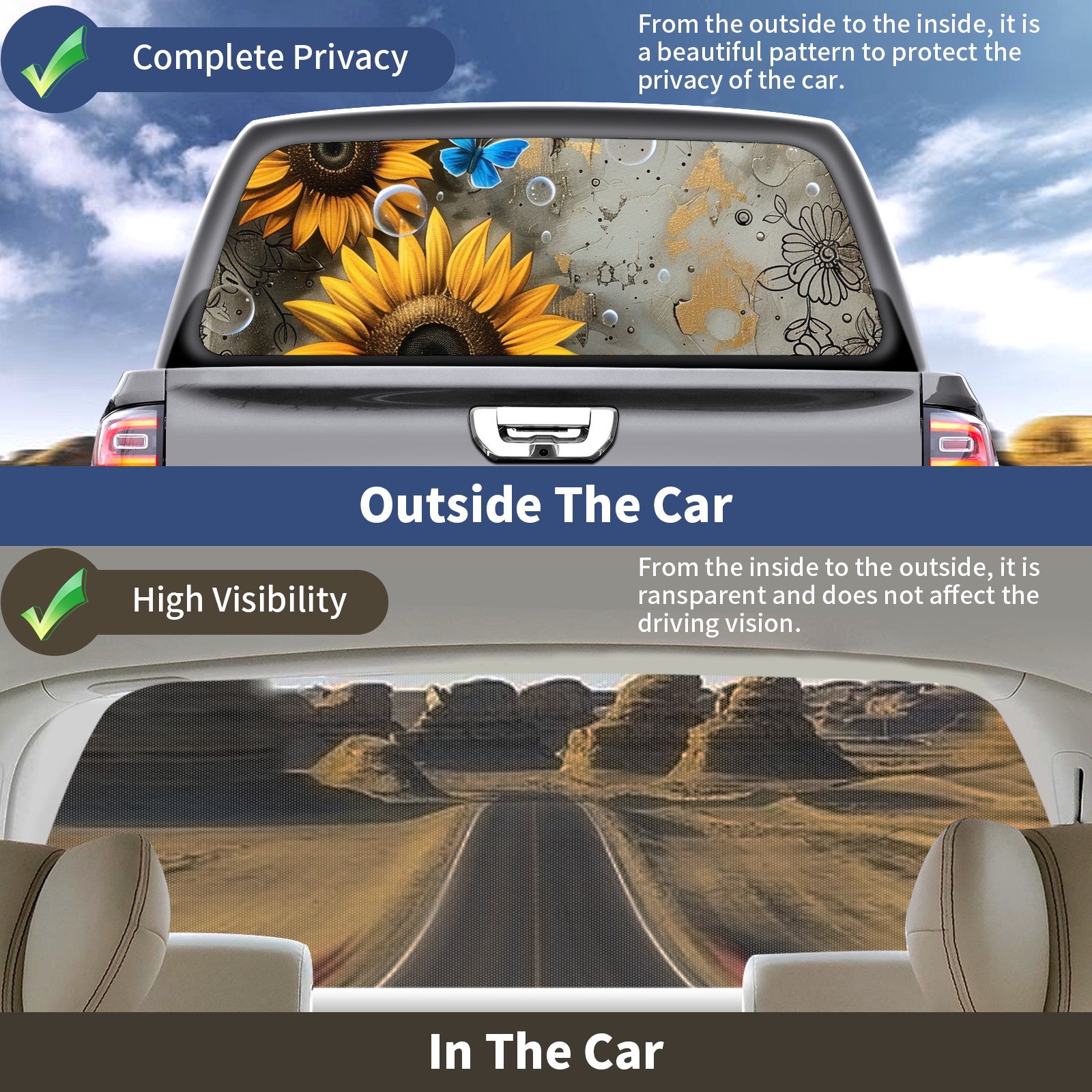 Truck Rear Window Graphics Decals Pickup Trucks Back Window Sticker Full Window Film Decal One Way Visual Waterproof Car Rear Tint Butterfly Daisy