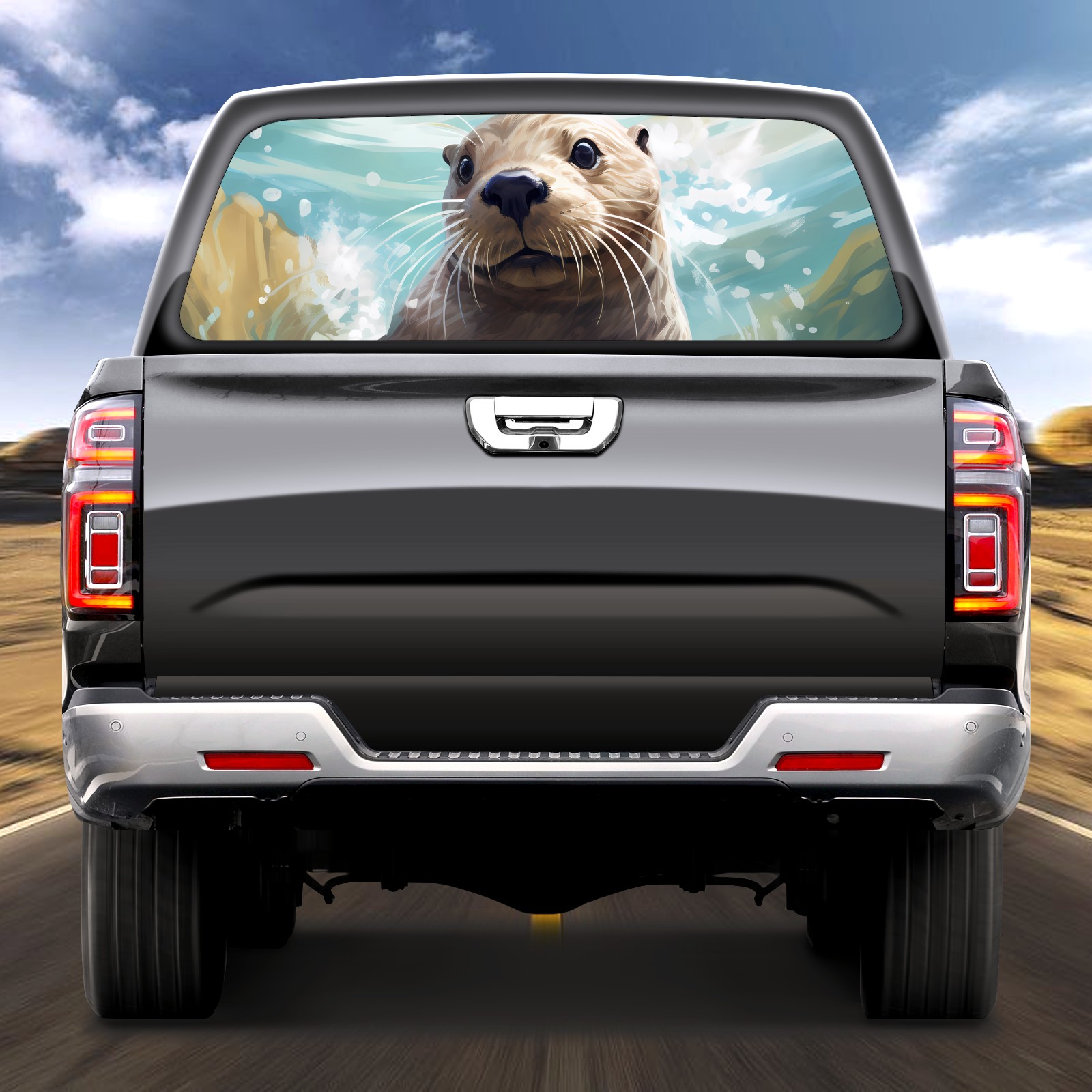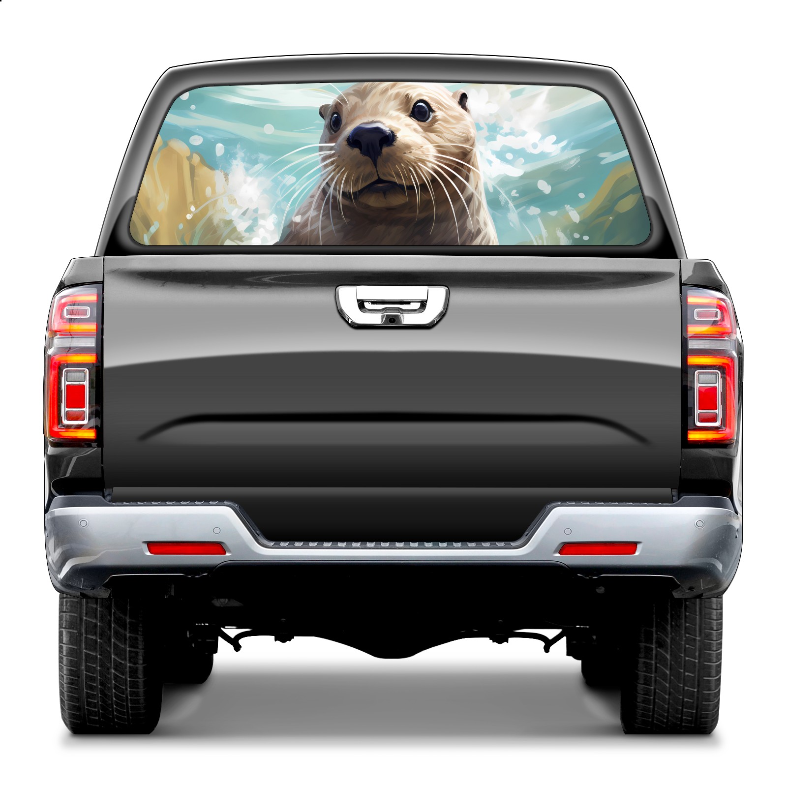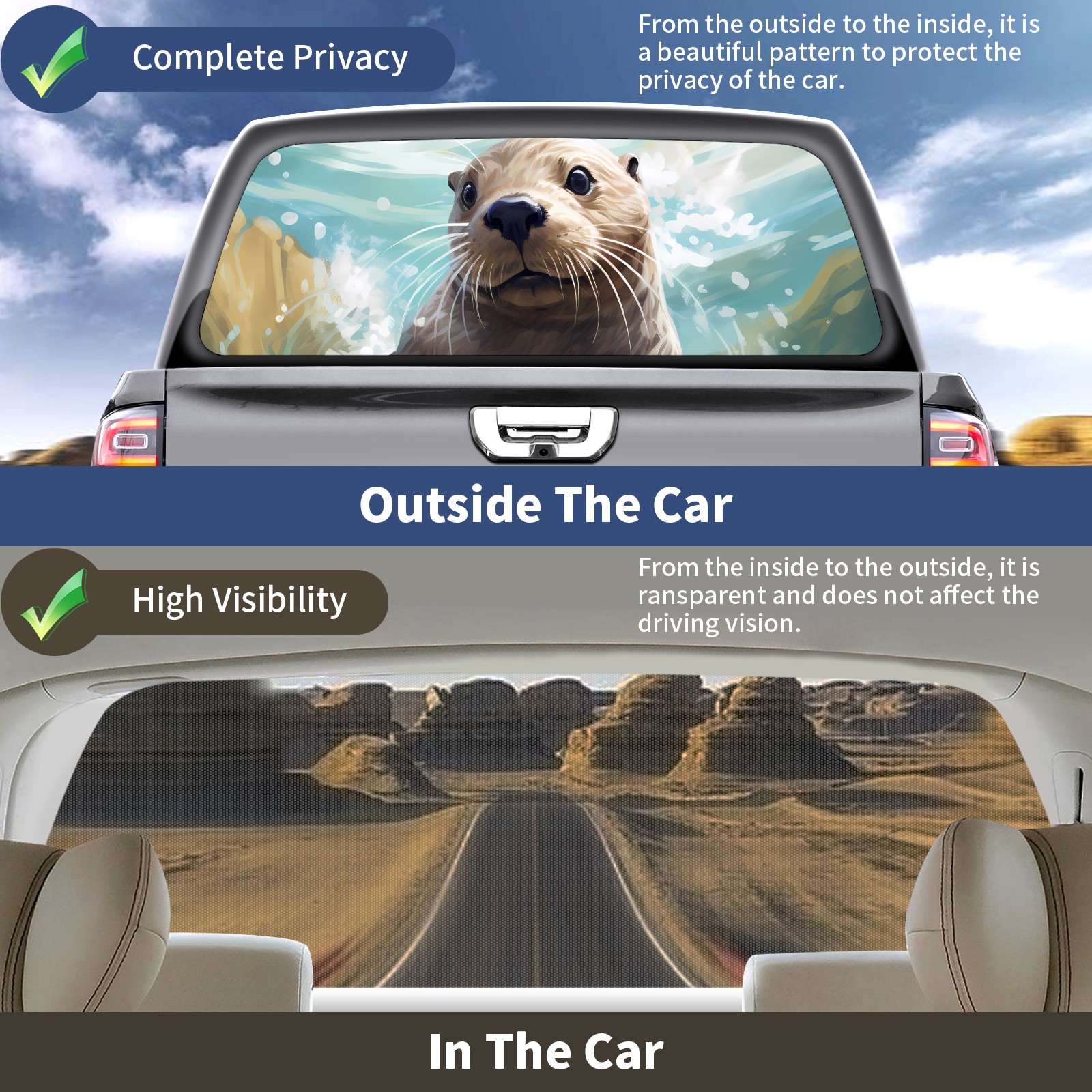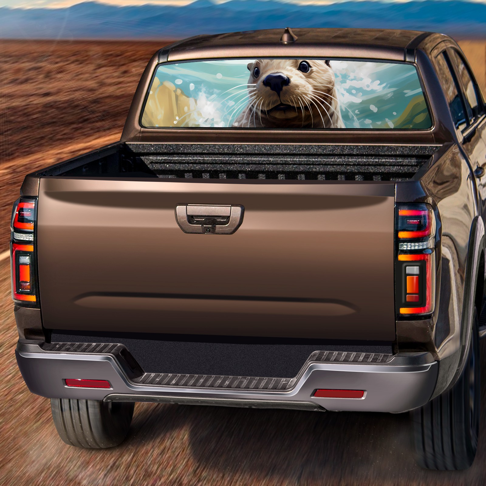 Truck Rear Window Graphics Decals Pickup Trucks Back Window Sticker Full Window Film Decal One Way Visual Waterproof Car Rear Tint River Otter 3 (1)
