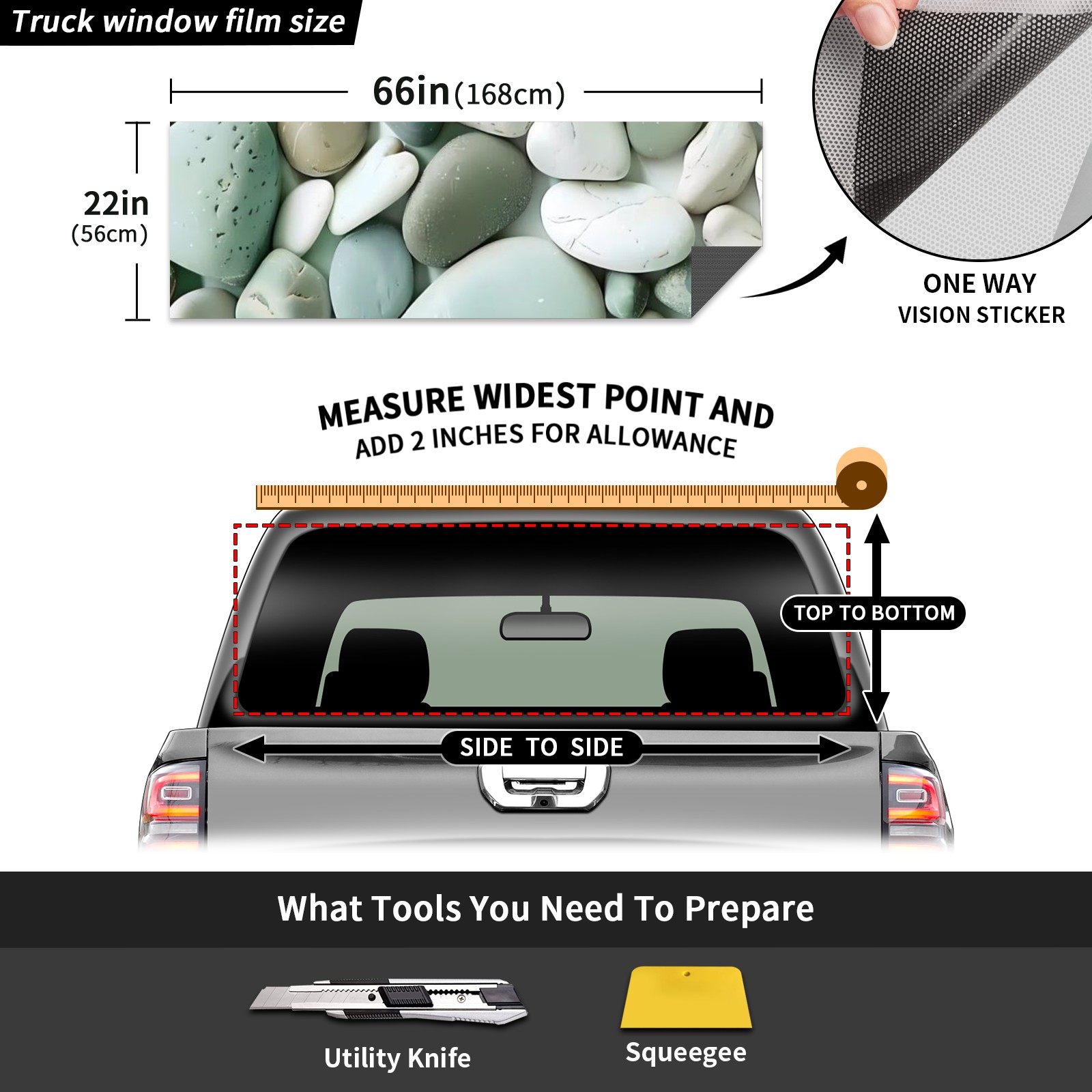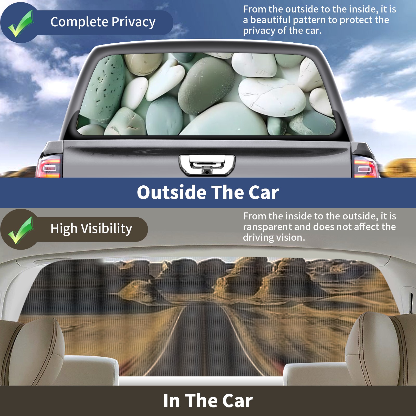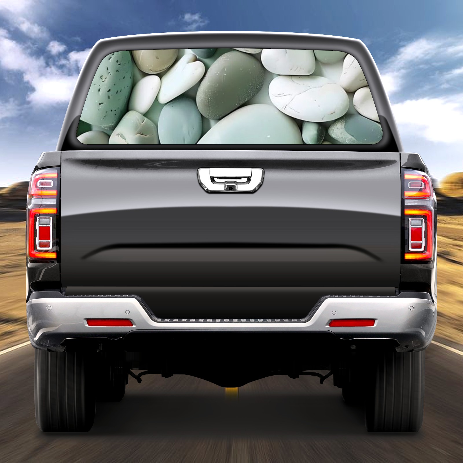 Truck Rear Window Graphics Decals Pickup Trucks Back Window Sticker Full Window Film Decal One Way Visual Waterproof Car Rear Tint Stone