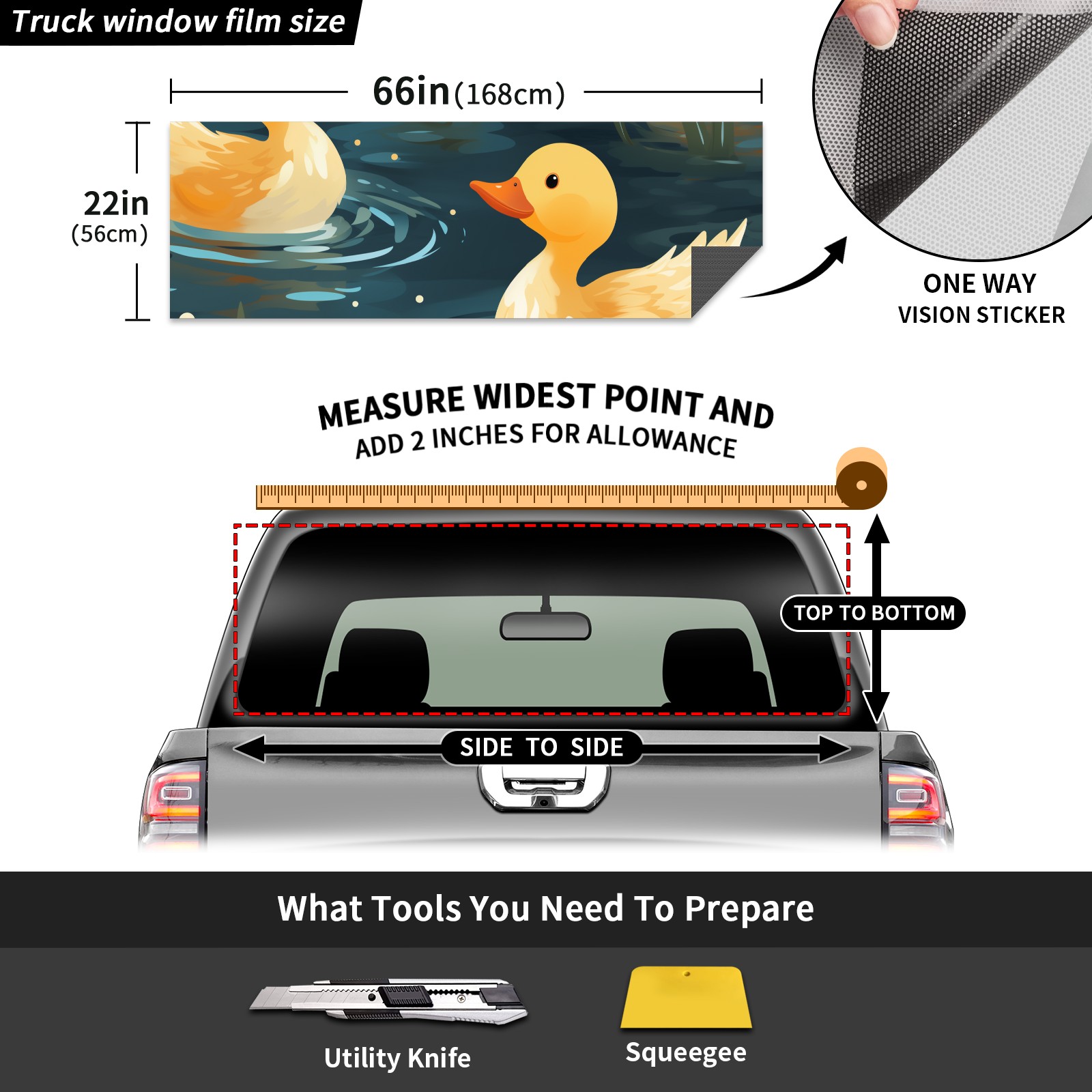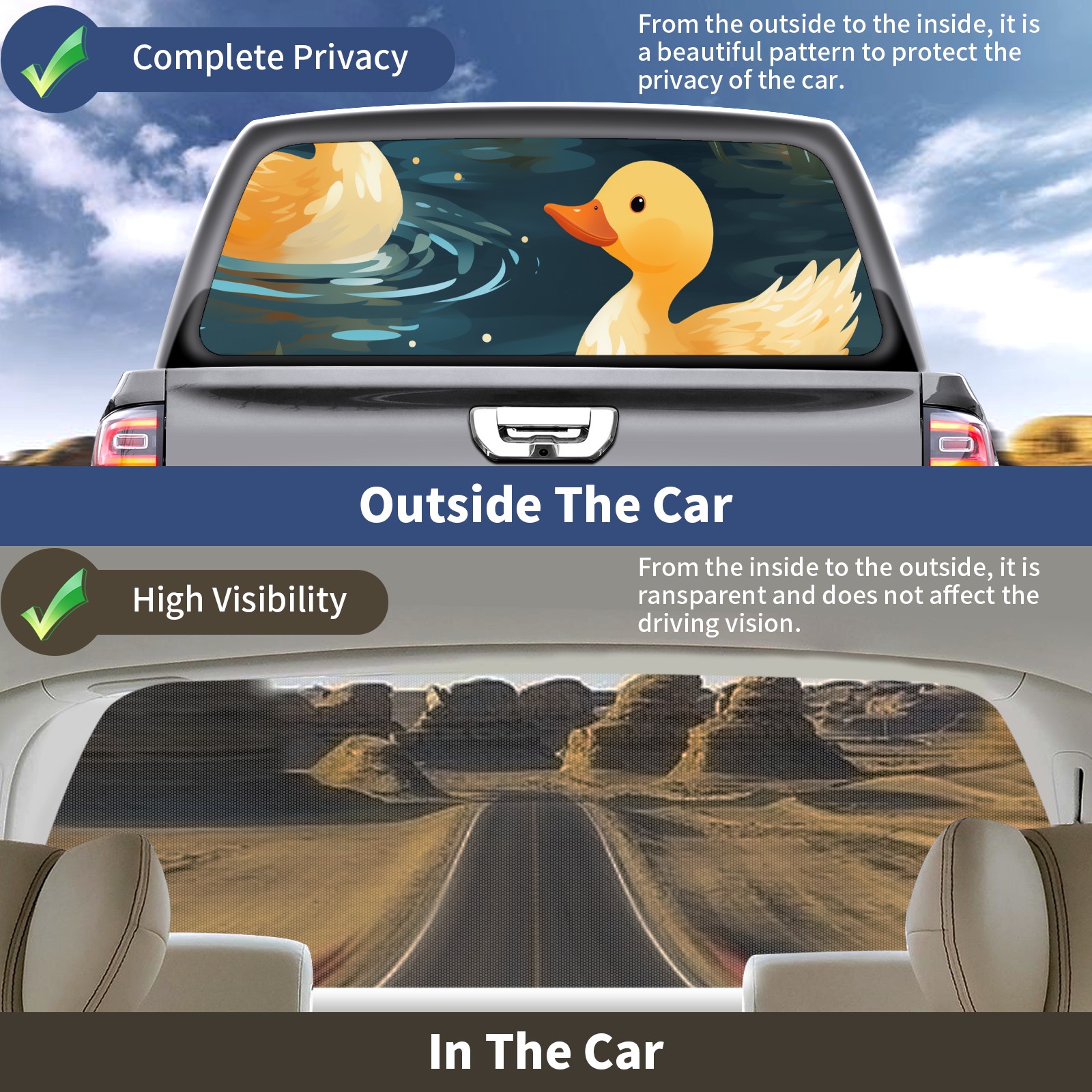 Truck Rear Window Graphics Decals Pickup Trucks Back Window Sticker Full Window Film Decal One Way Visual Waterproof Car Rear Tint Duck