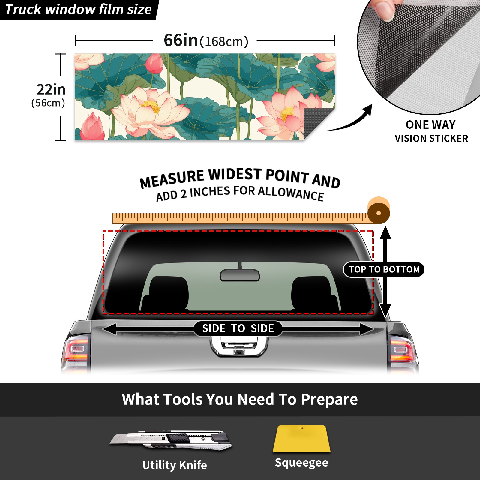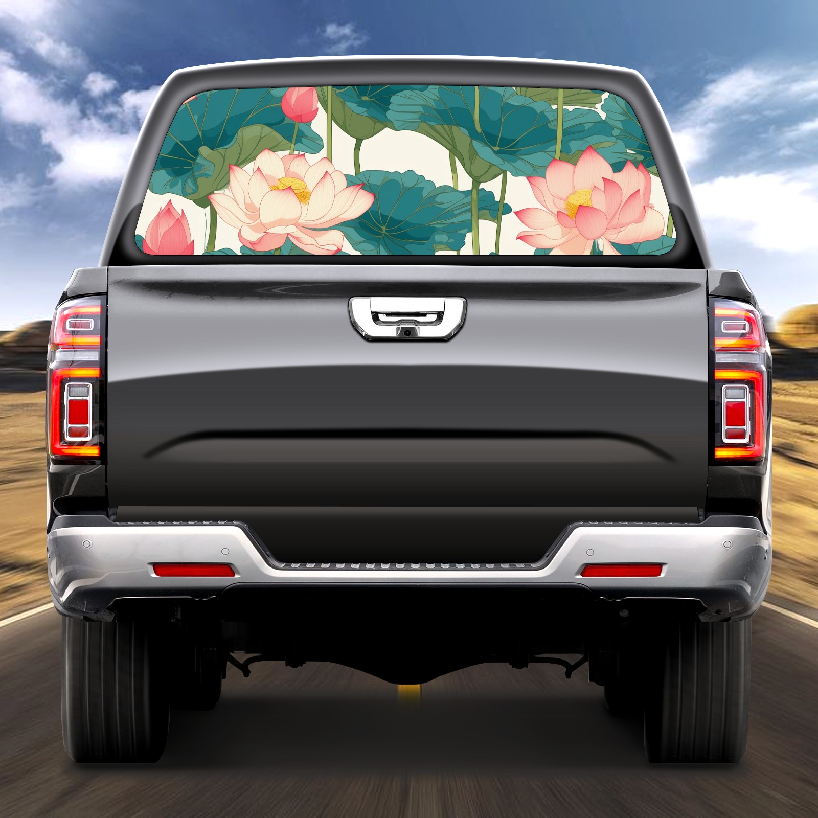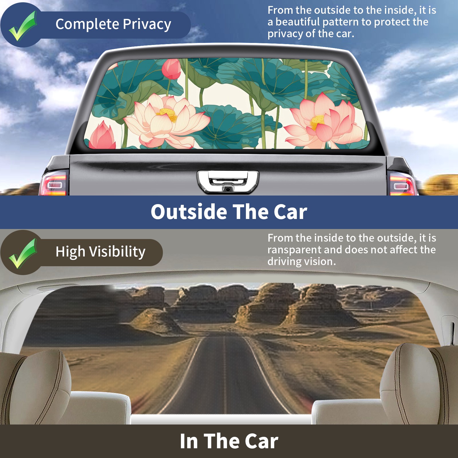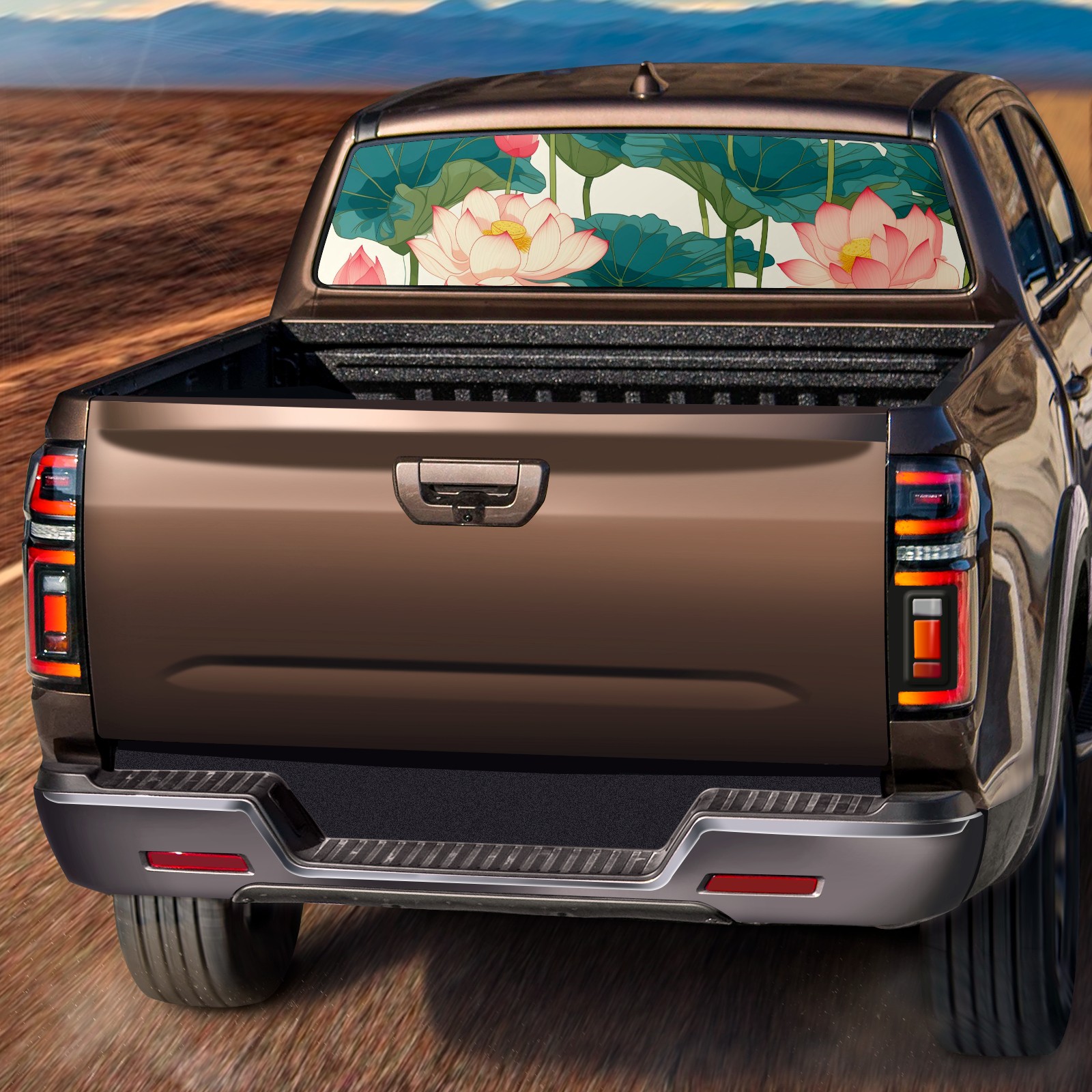 Truck Rear Window Graphics Decals Pickup Trucks Back Window Sticker Full Window Film Decal One Way Visual Waterproof Car Rear Tint Green Lotus Flower