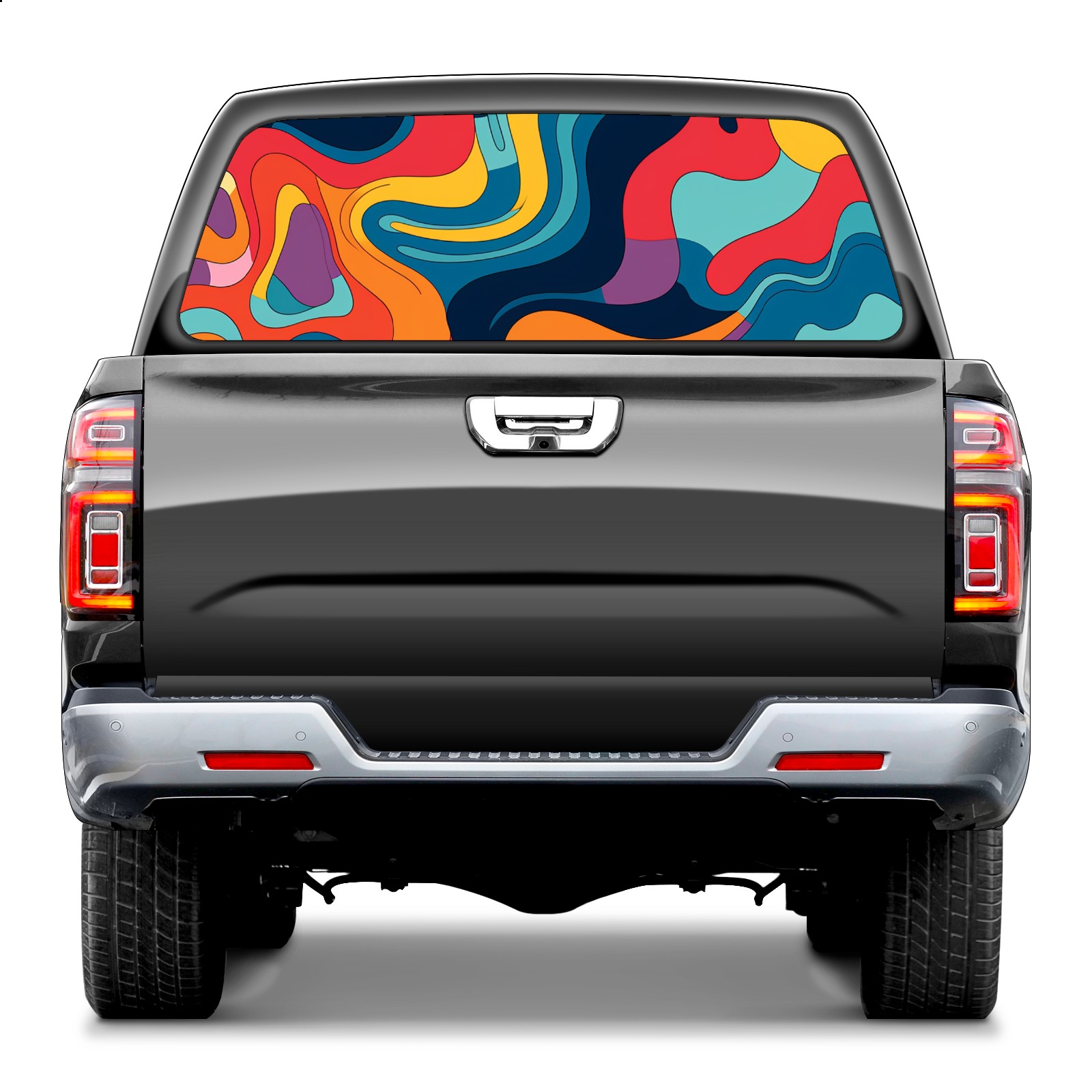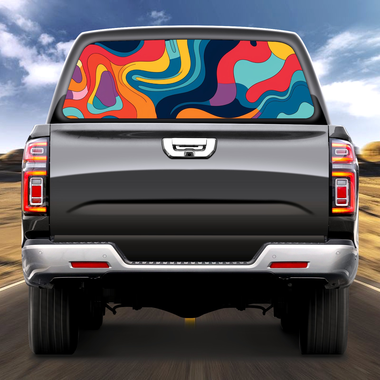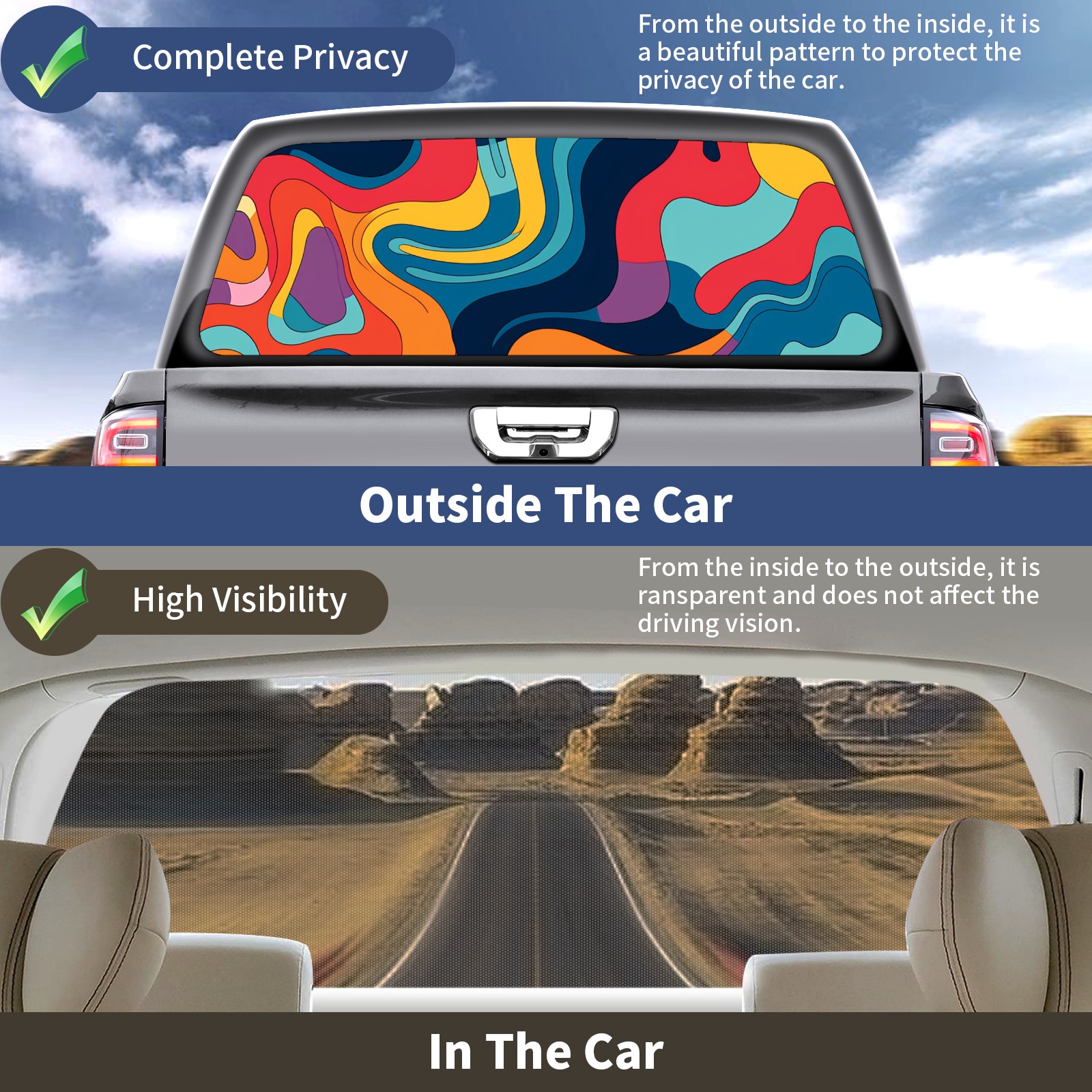 Truck Rear Window Graphics Decals Pickup Trucks Back Window Sticker Full Window Film Decal One Way Visual Waterproof Car Rear Tint Abstract