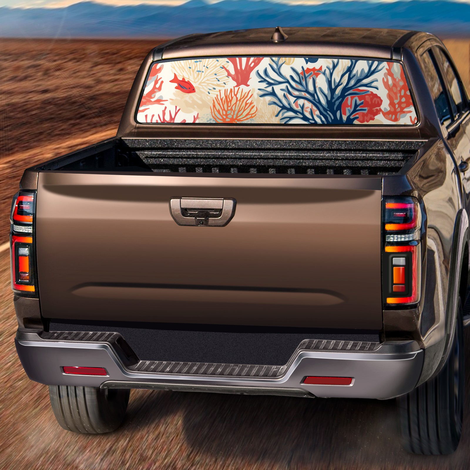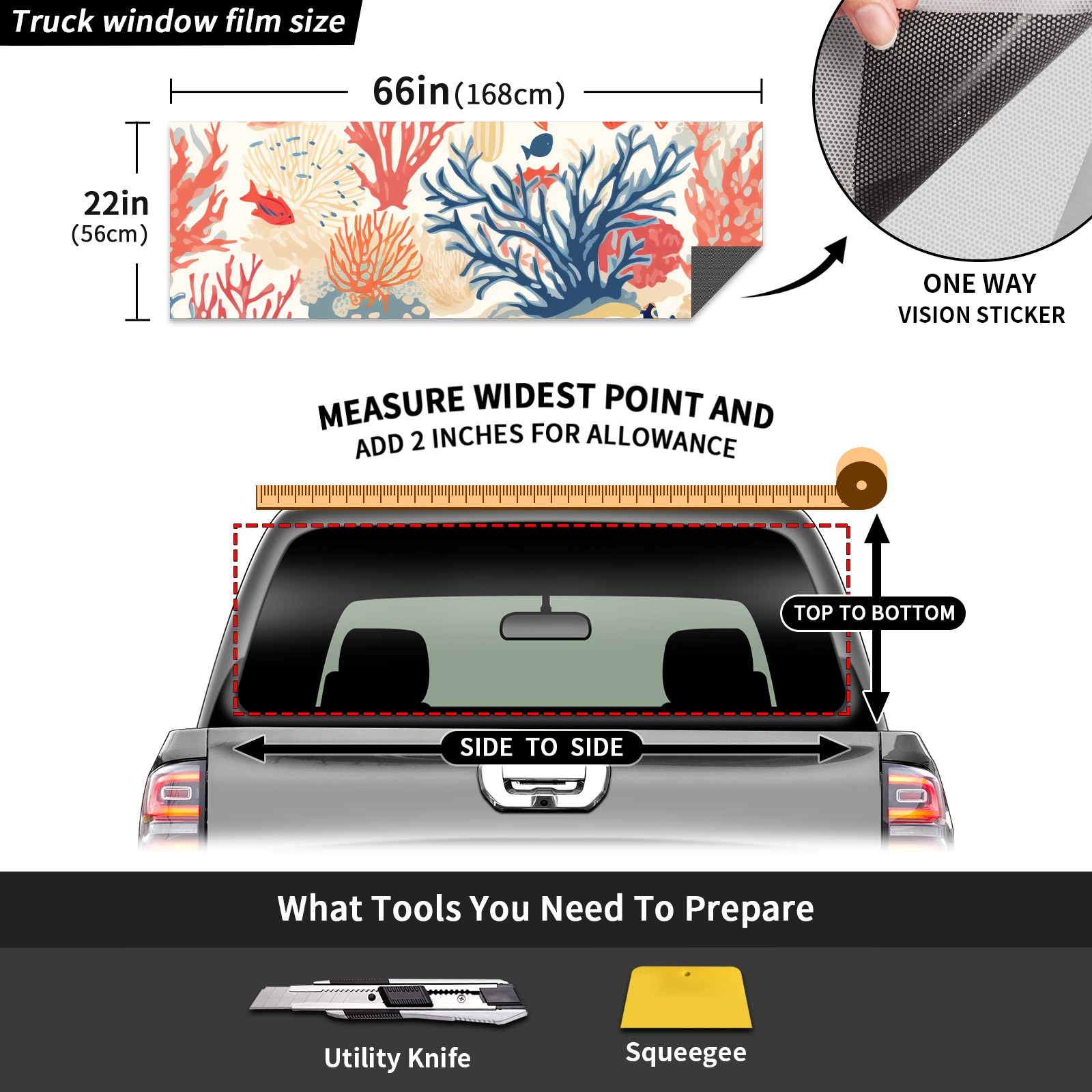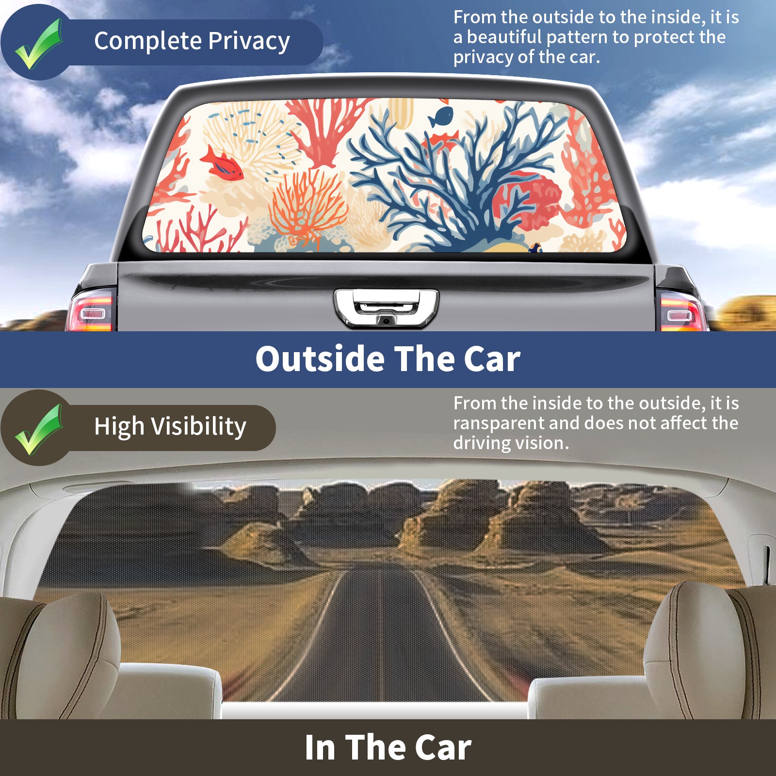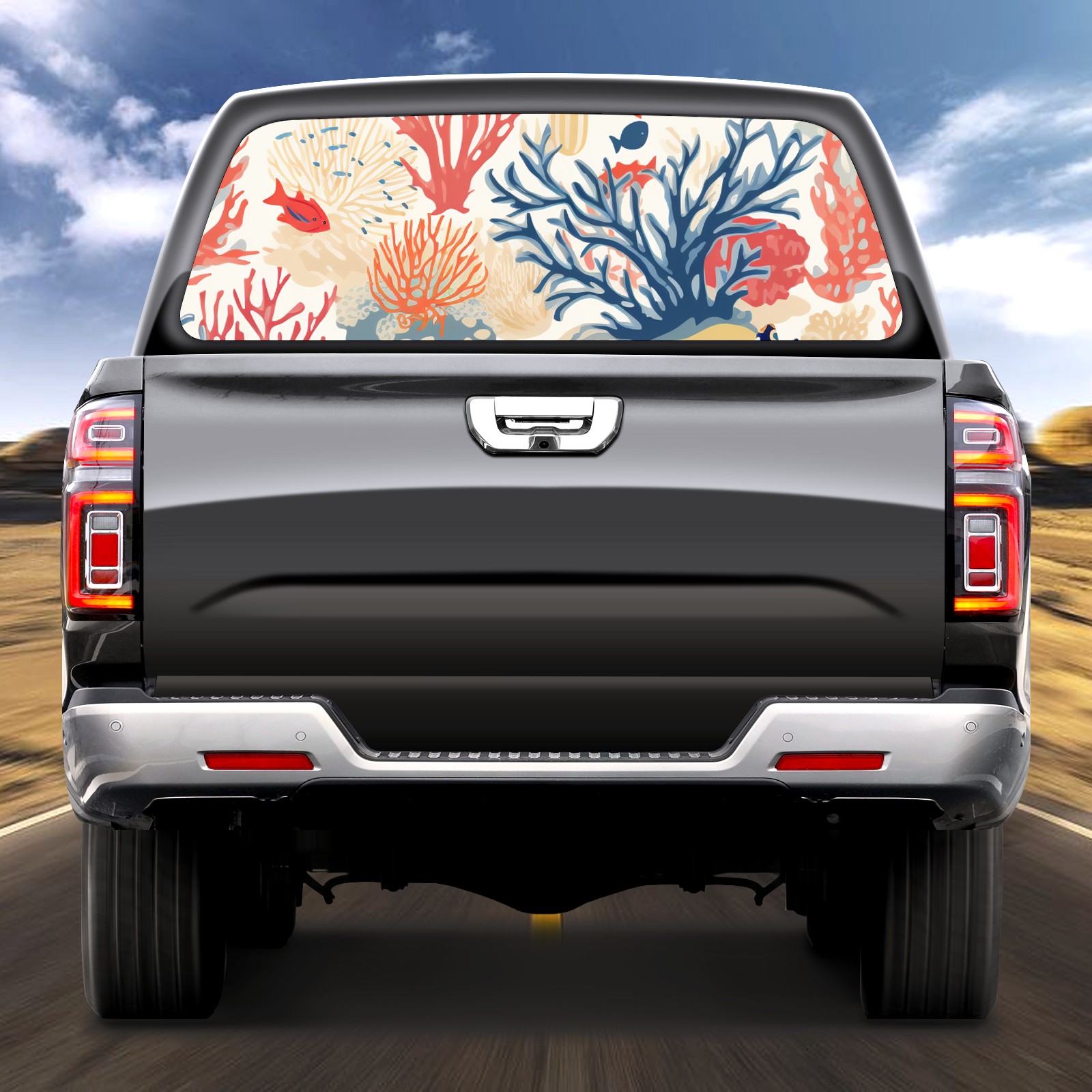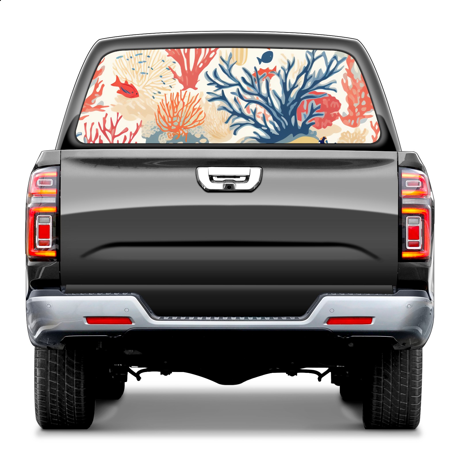 Truck Rear Window Graphics Decals Pickup Trucks Back Window Sticker Full Window Film Decal One Way Visual Waterproof Car Rear Tint Fish