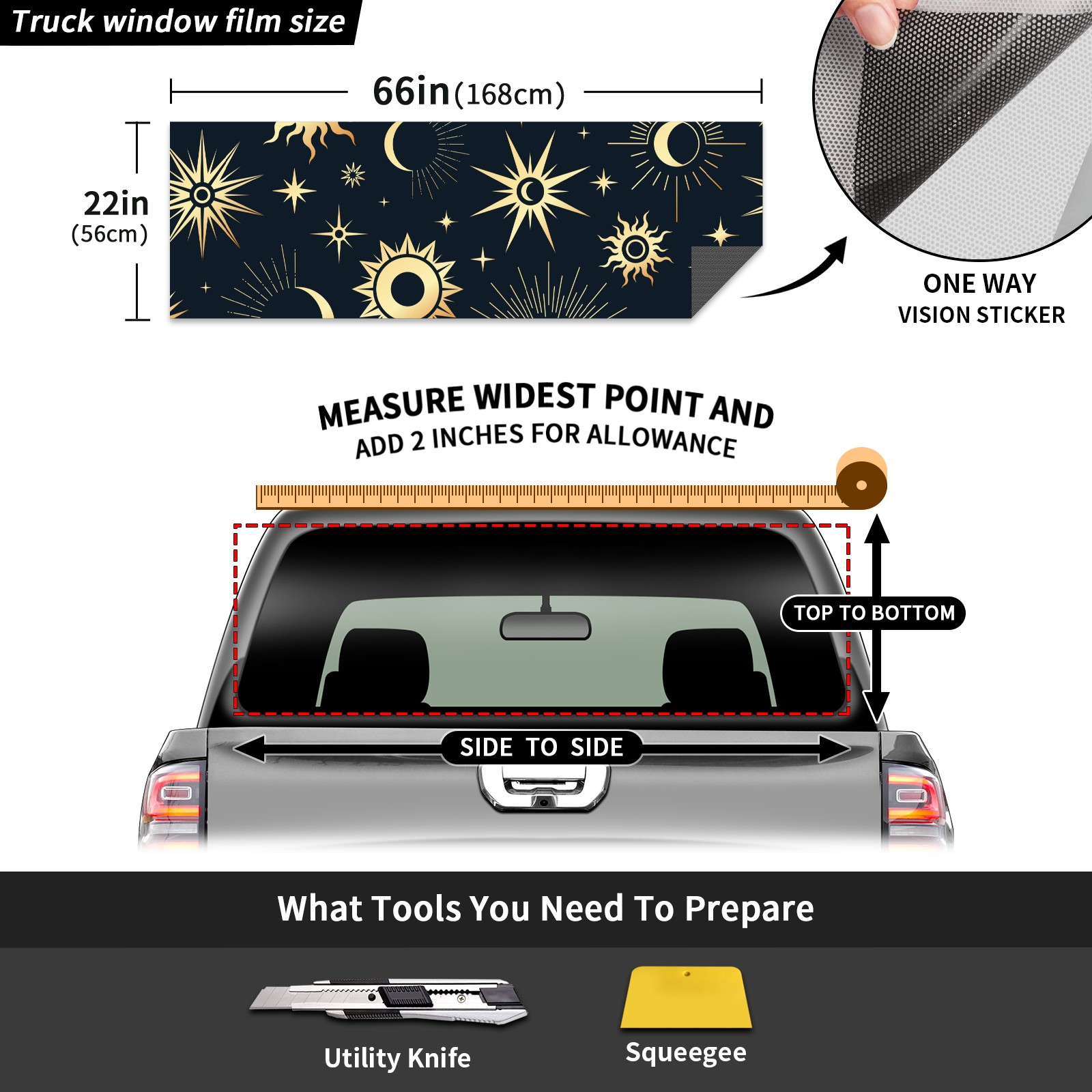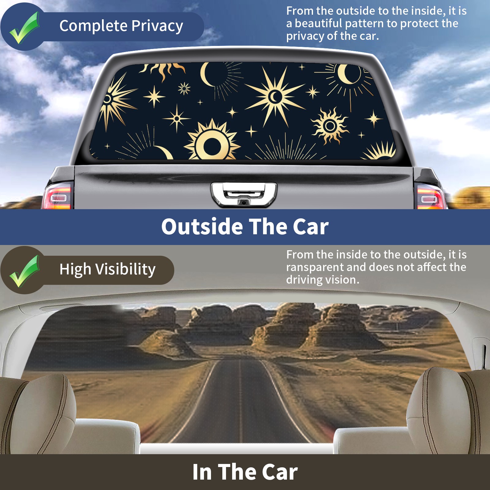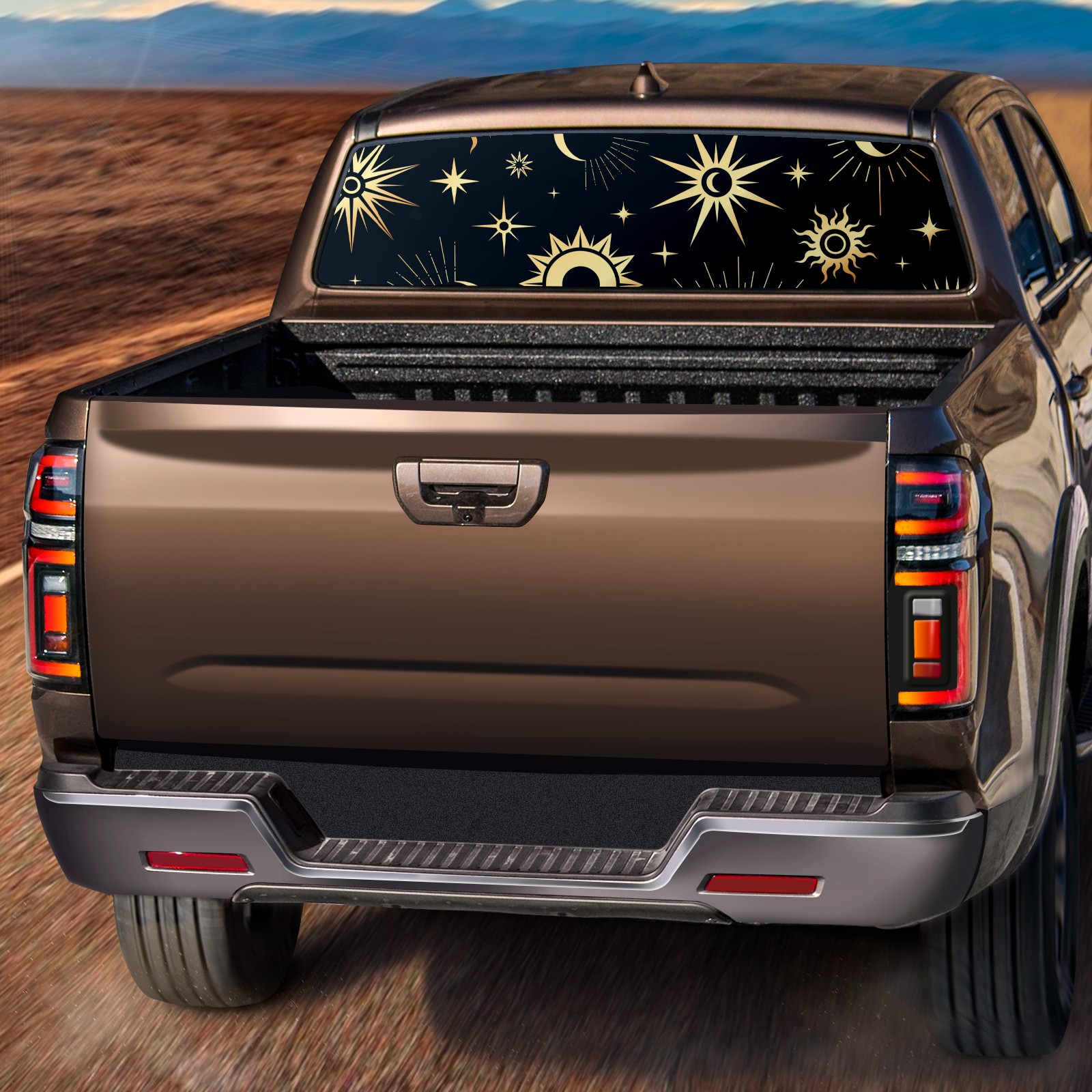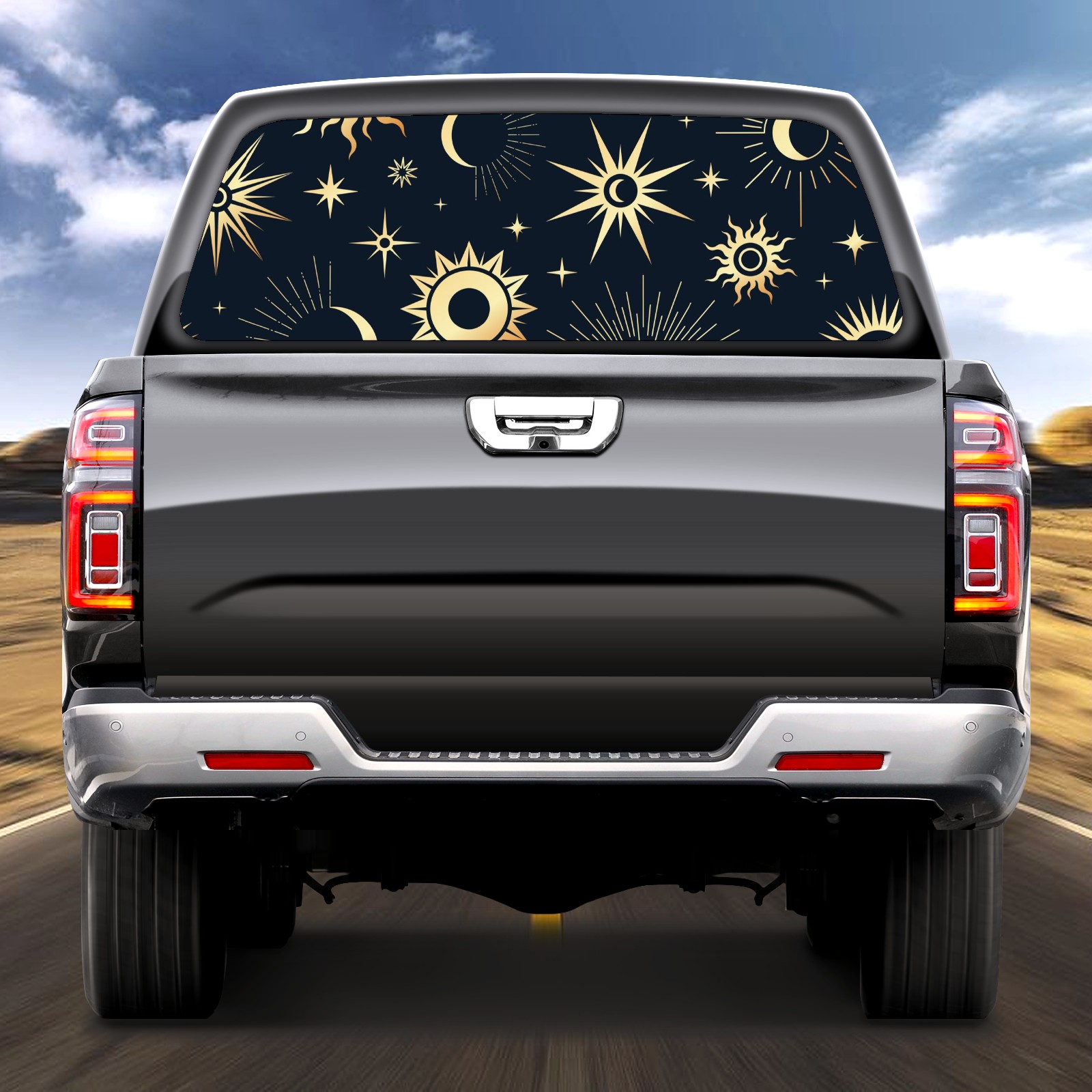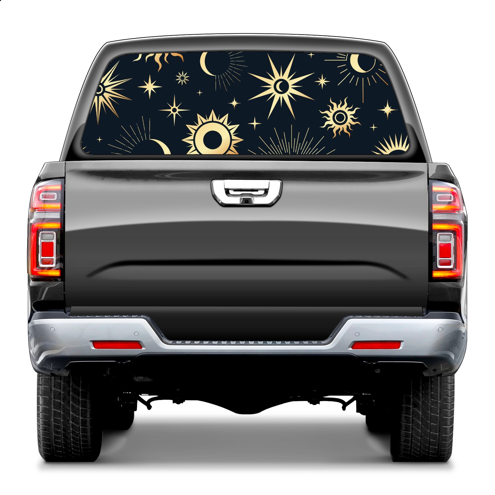 Truck Rear Window Graphics Decals Pickup Trucks Back Window Sticker Full Window Film Decal One Way Visual Waterproof Car Rear Tint Gold Soleil Cosmos Astrology