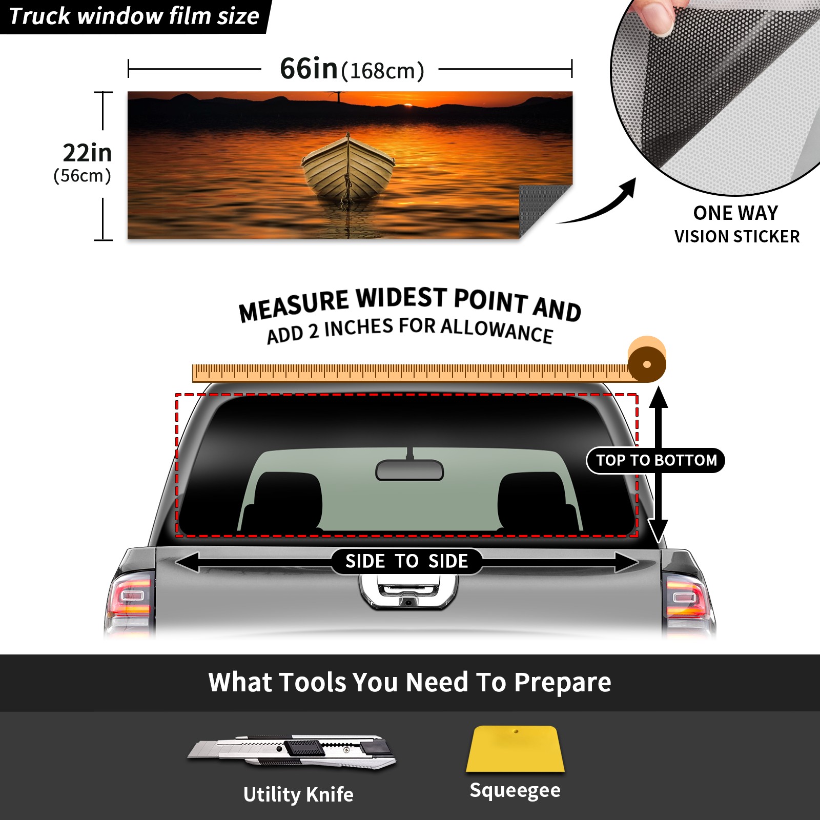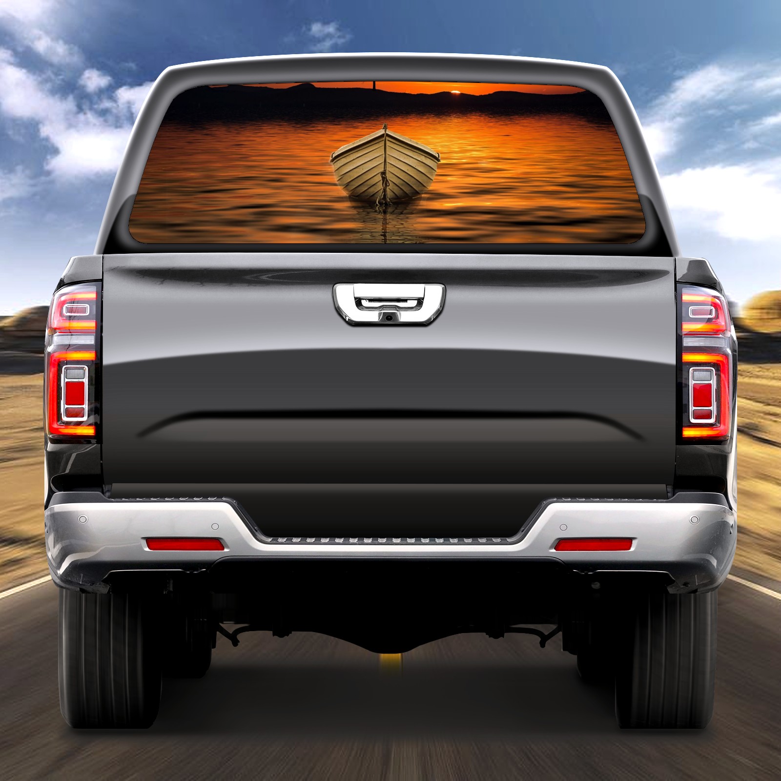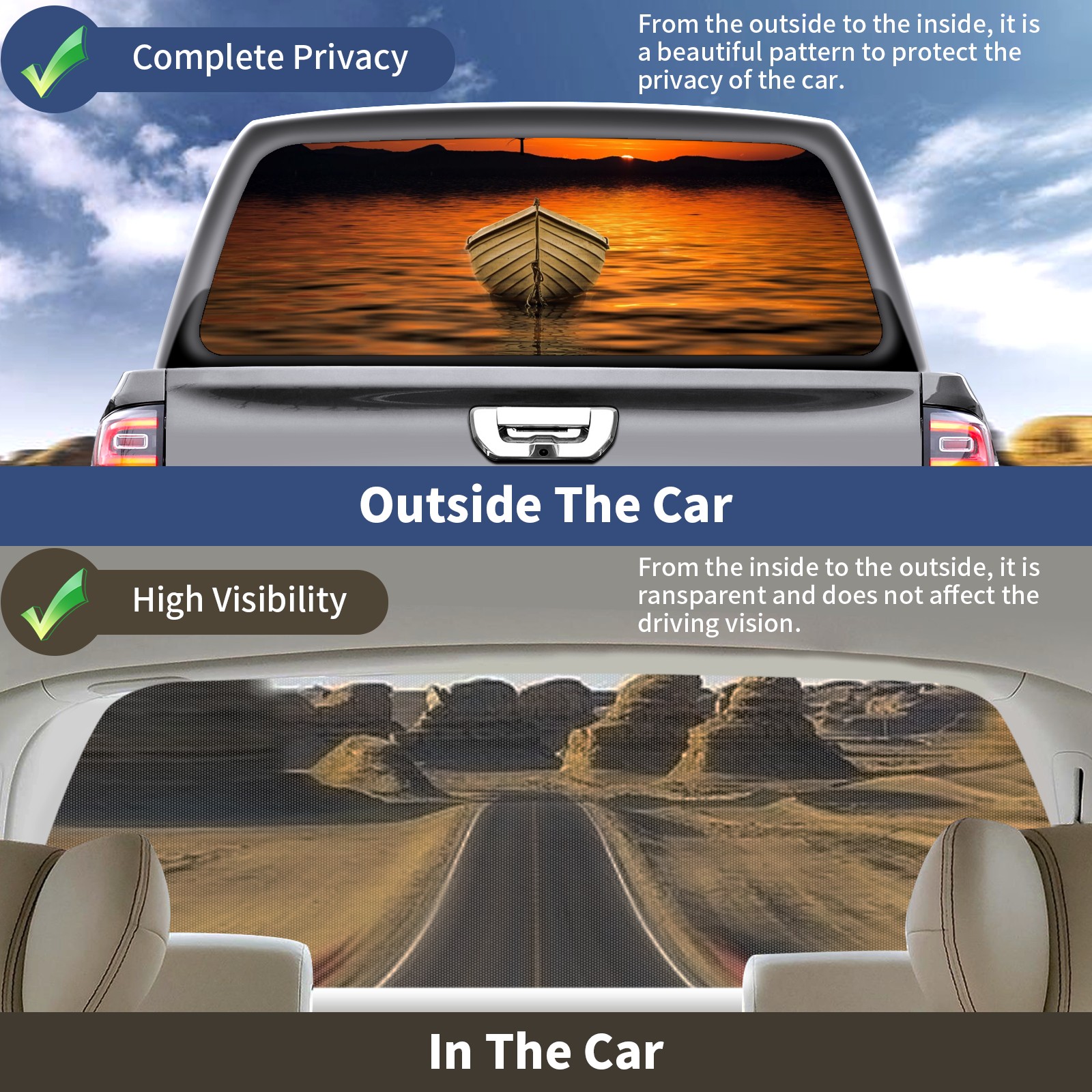 Truck Rear Window Graphics Decals Pickup Trucks Back Window Sticker Full Window Film Decal One Way Visual Waterproof Car Rear Tint Ocean Sunset