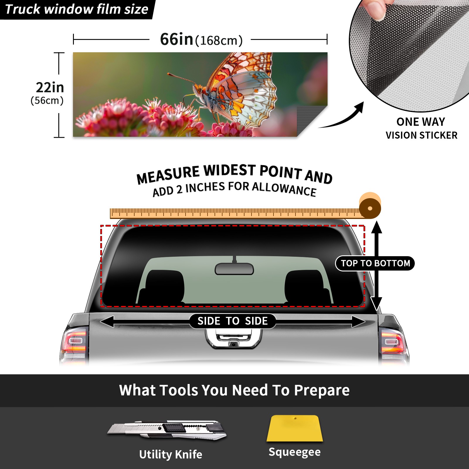 Truck Rear Window Graphics Decals Pickup Trucks Back Window Sticker Full Window Film Decal One Way Visual Waterproof Car Rear Tint Butterfly