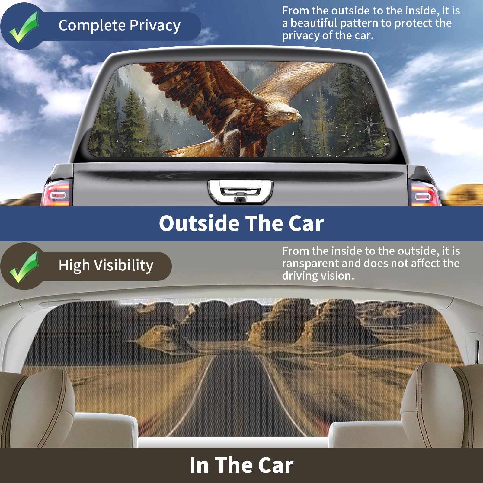 Truck Rear Window Graphics Decals Pickup Trucks Back Window Sticker Full Window Film Decal One Way Visual Waterproof Car Rear Tint Bald Eagle