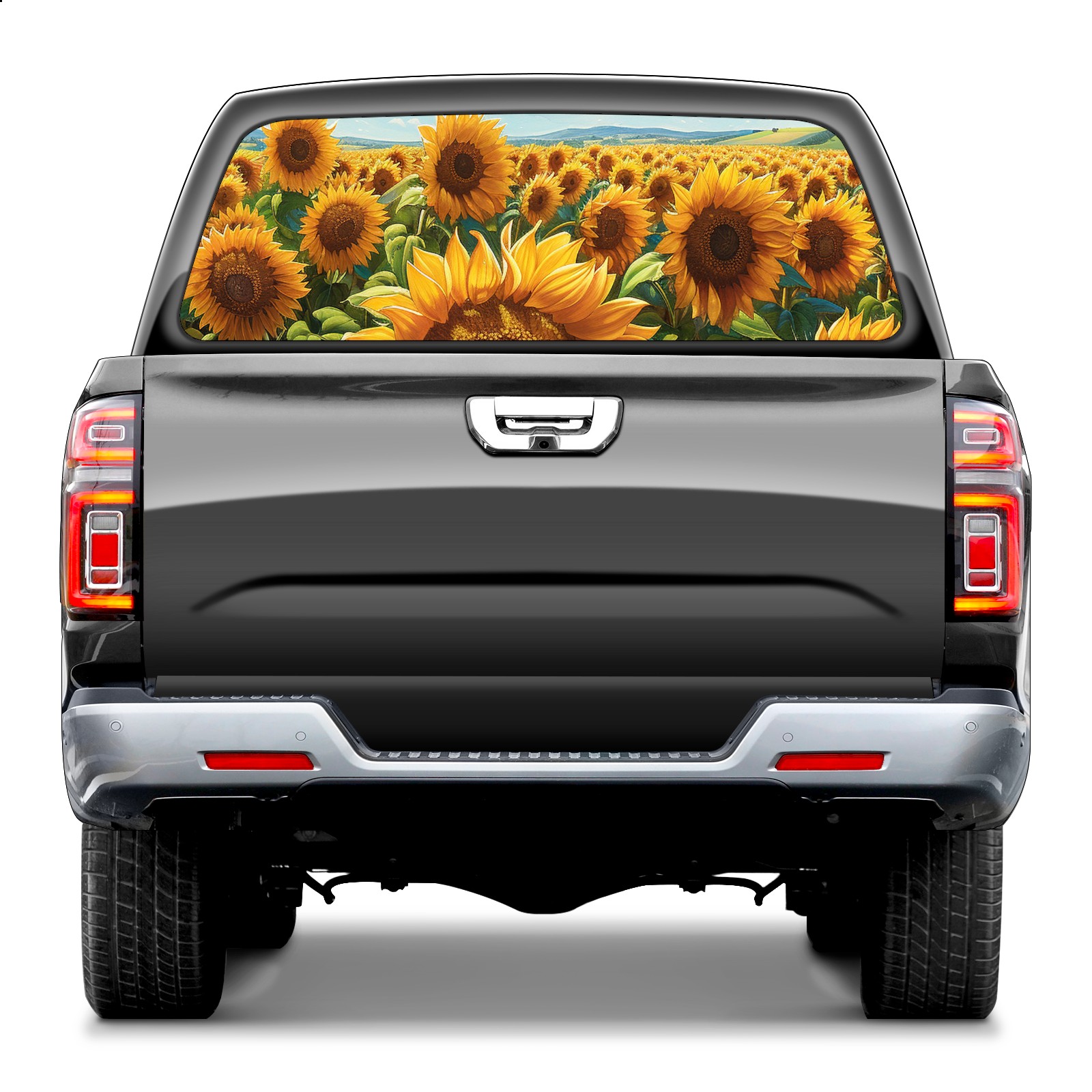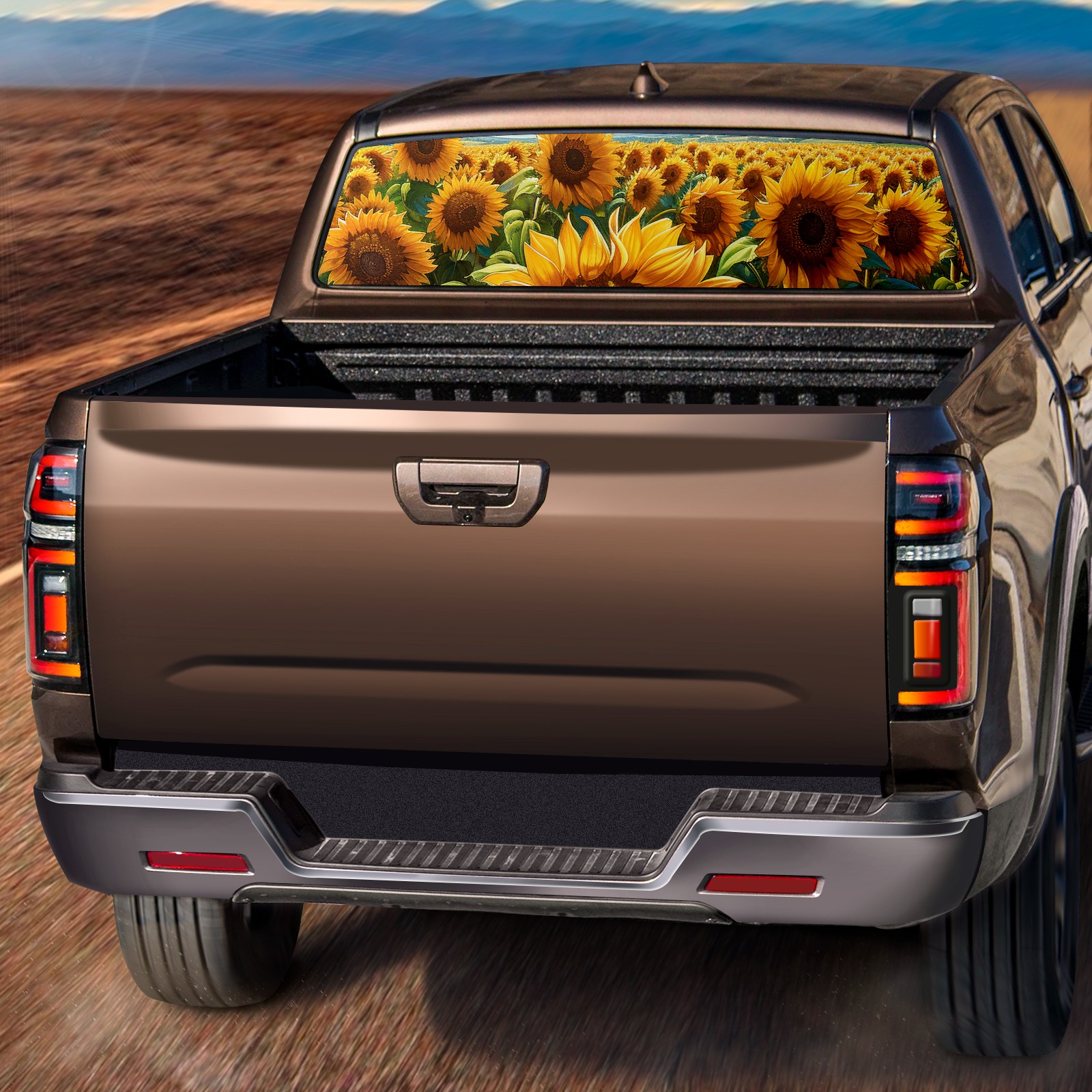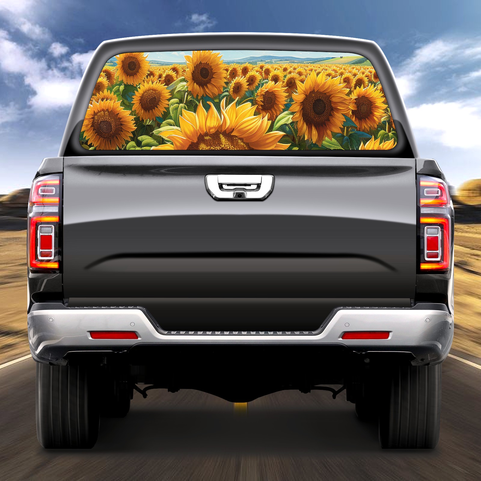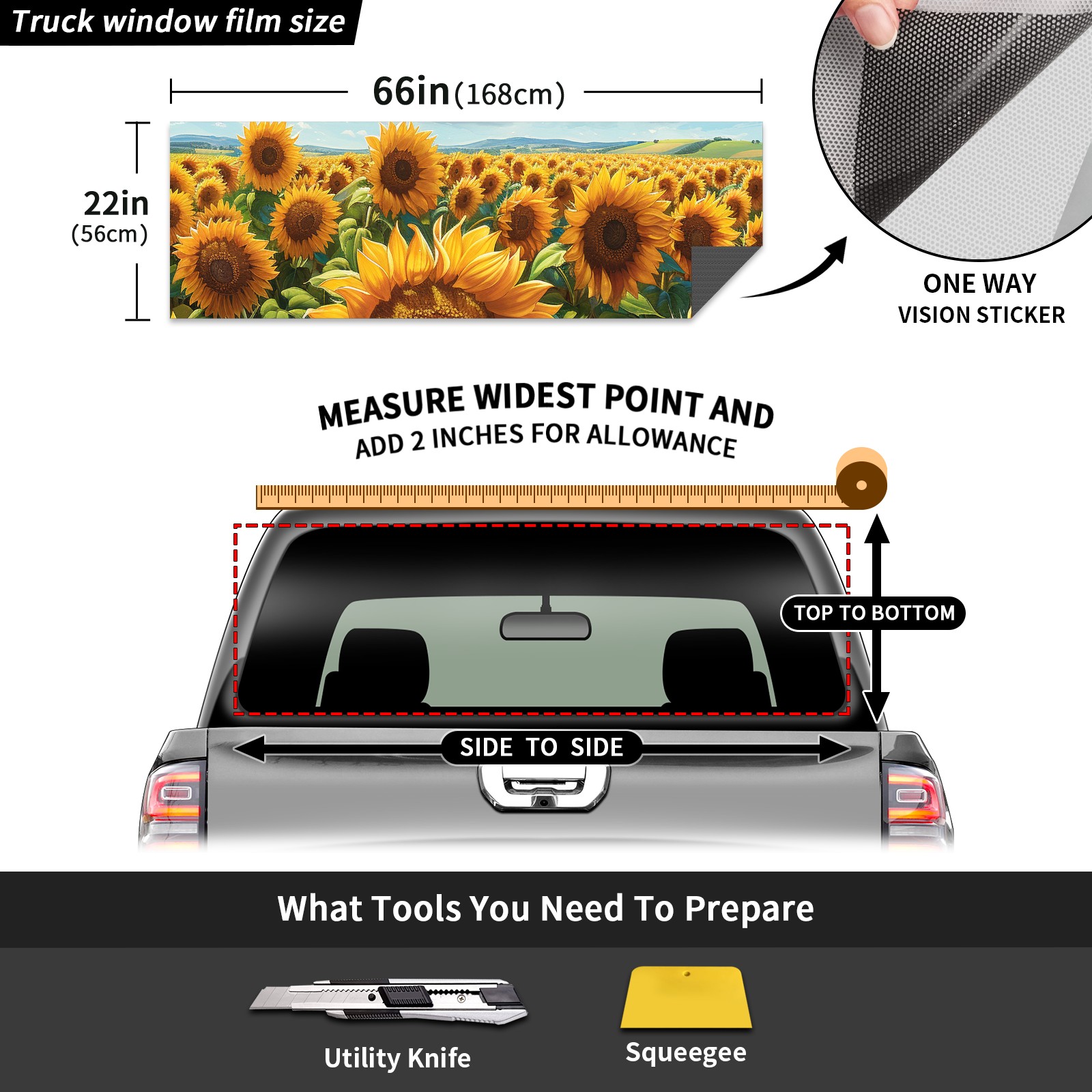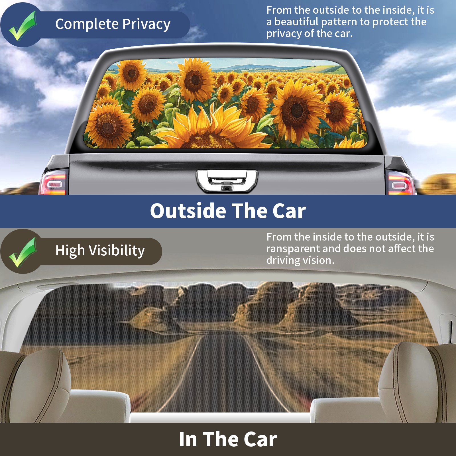 Truck Rear Window Graphics Decals Pickup Trucks Back Window Sticker Full Window Film Decal One Way Visual Waterproof Car Rear Tint Sunflower