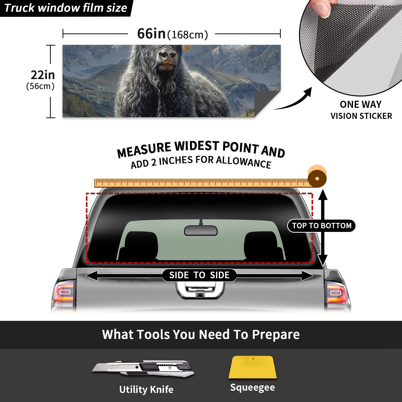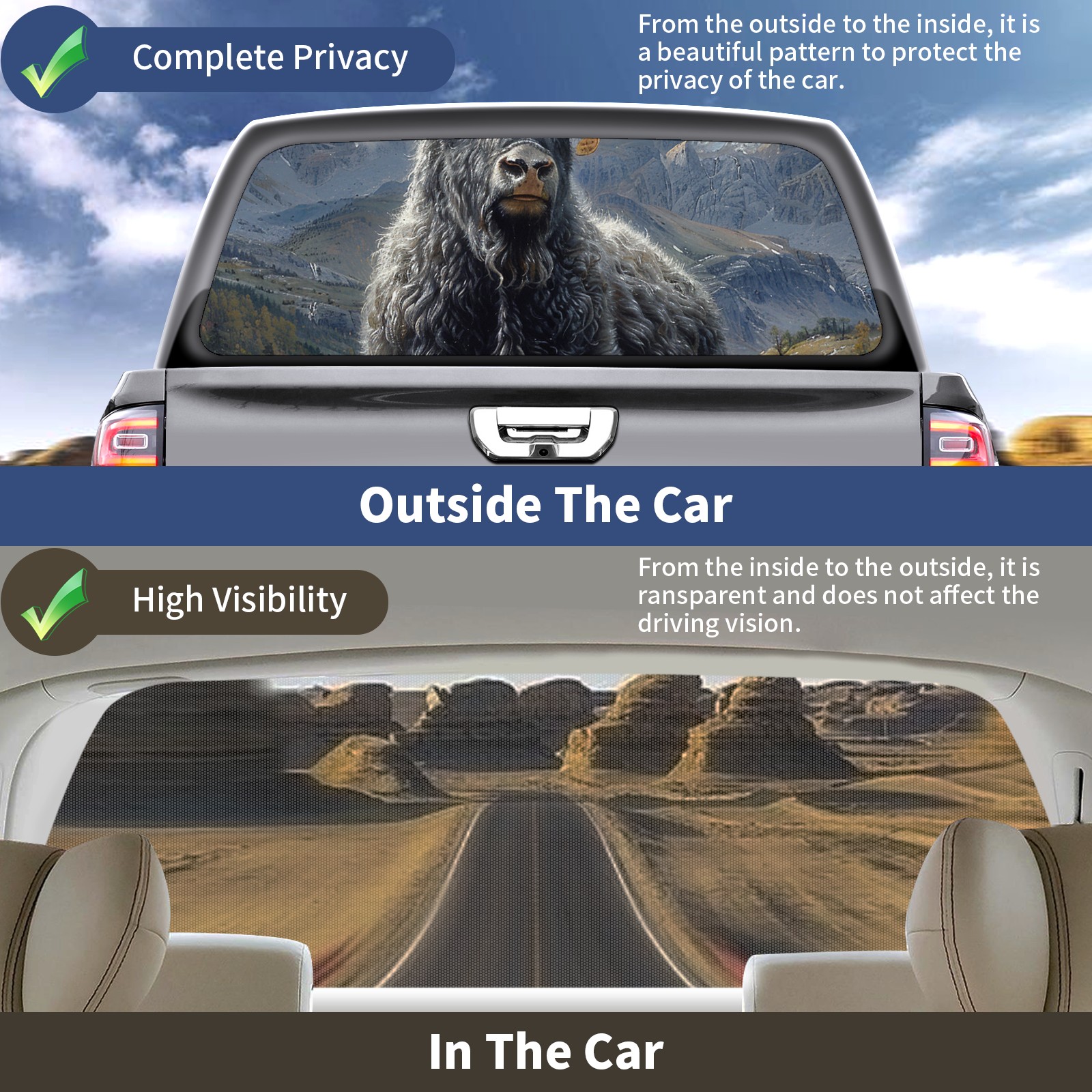 Truck Rear Window Graphics Decals Pickup Trucks Back Window Sticker Full Window Film Decal One Way Visual Waterproof Car Rear Tint Cattle