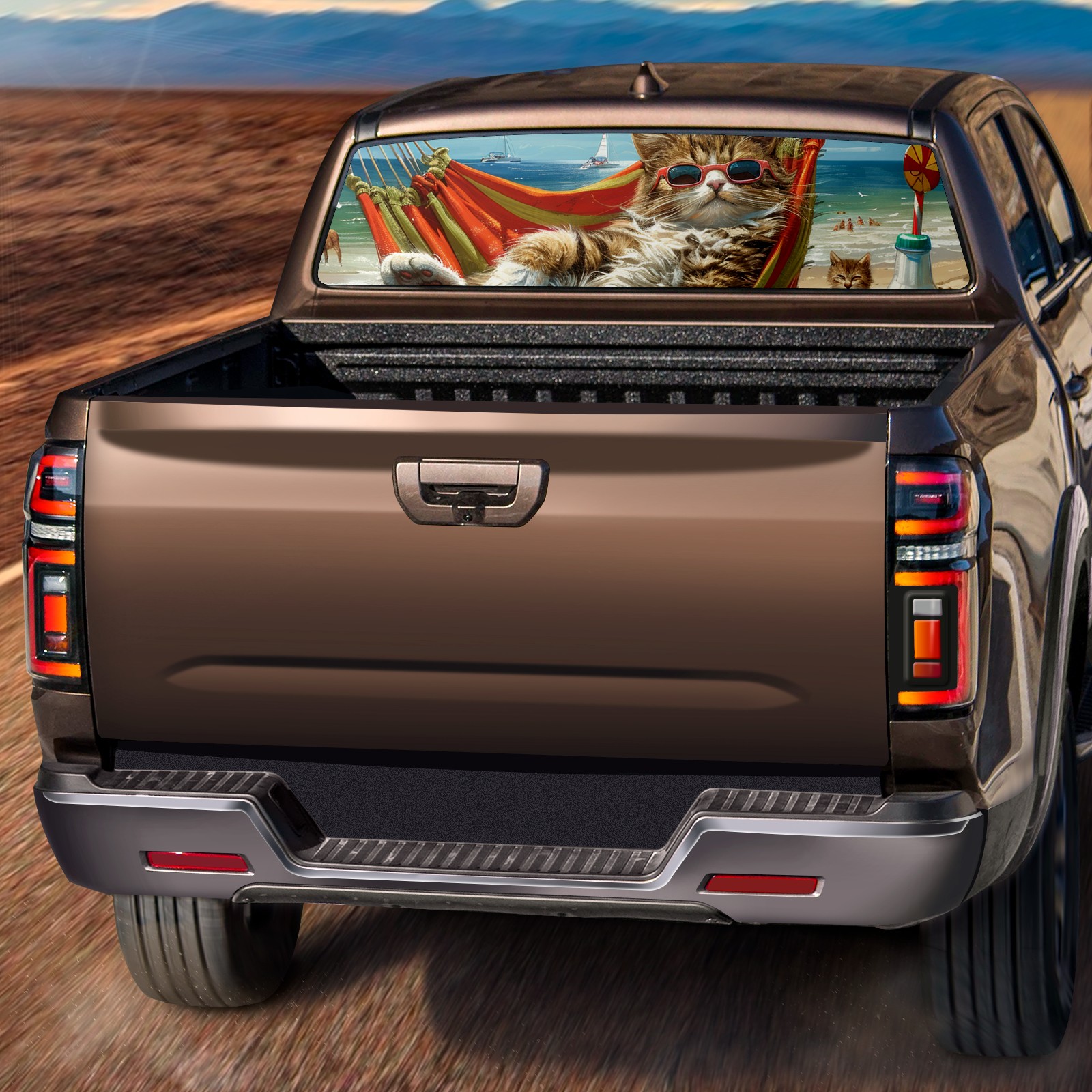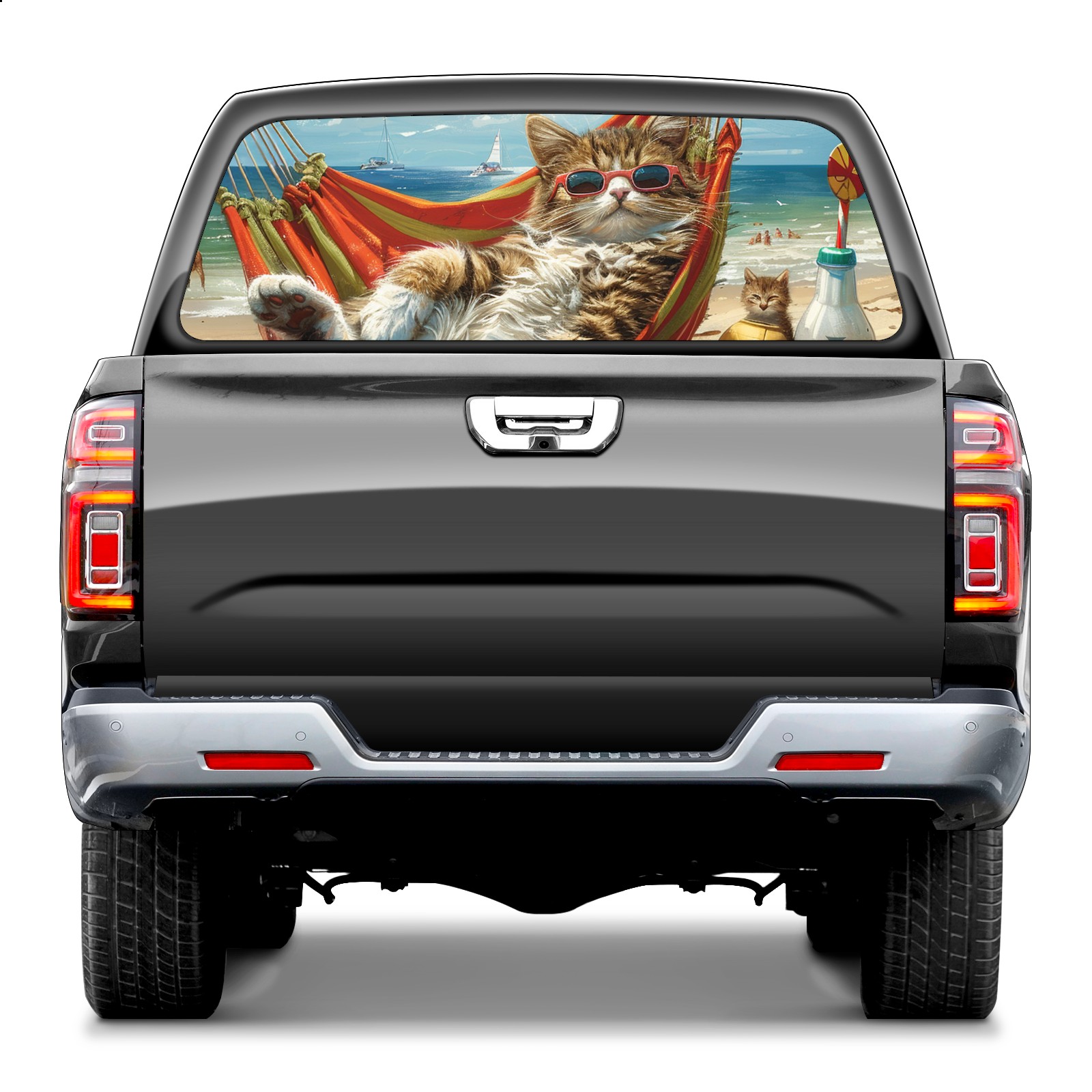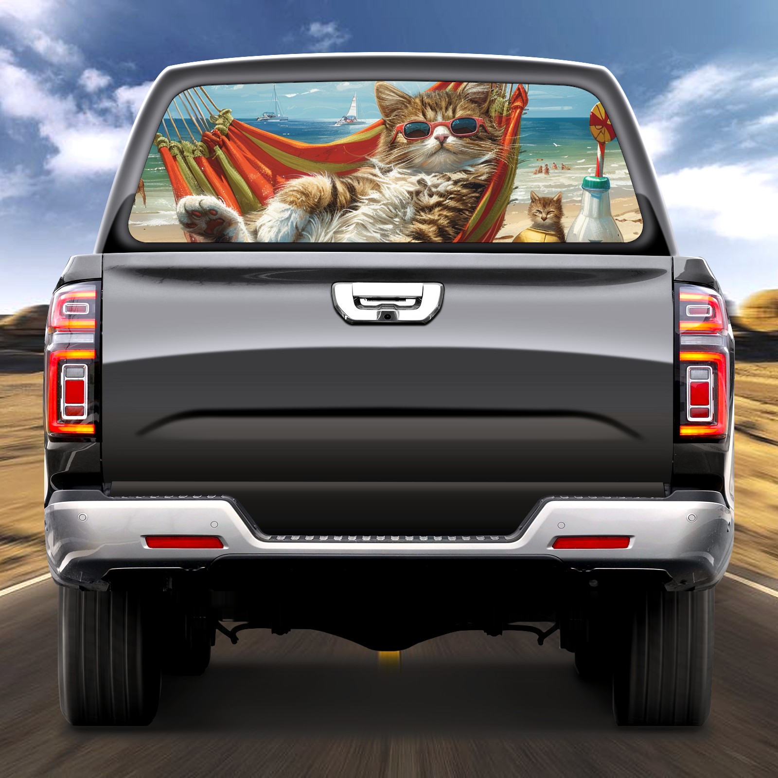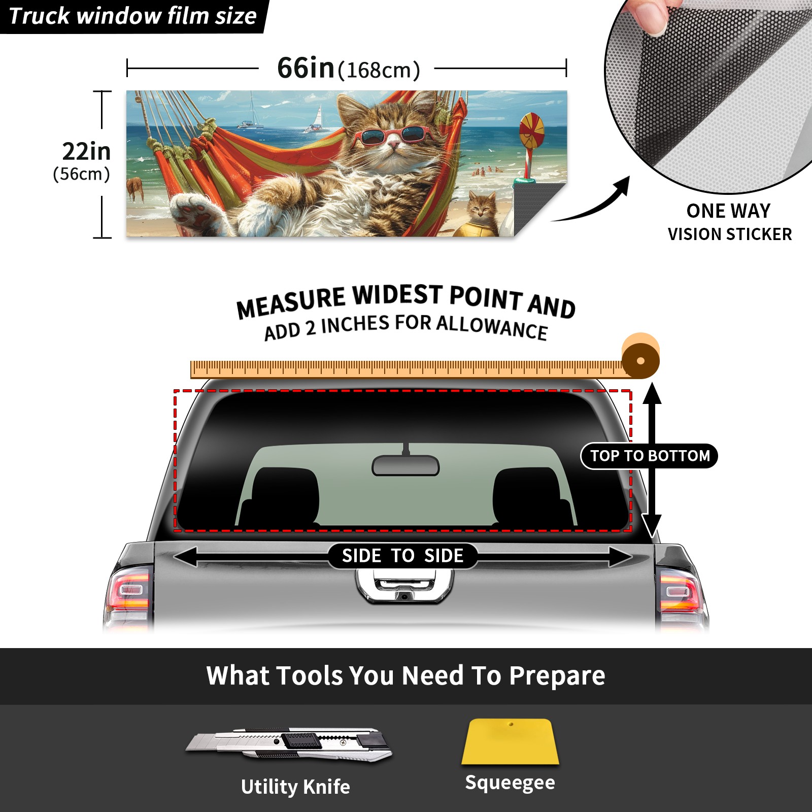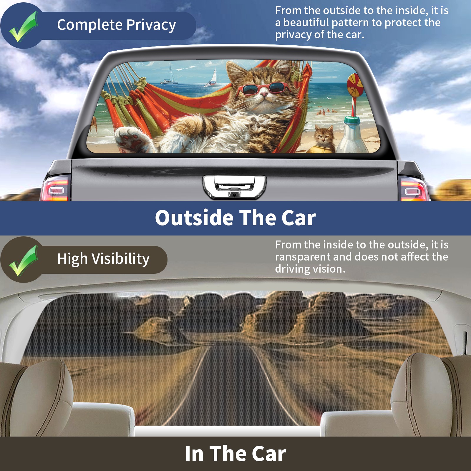 Truck Rear Window Graphics Decals Pickup Trucks Back Window Sticker Full Window Film Decal One Way Visual Waterproof Car Rear Tint Funny Cat