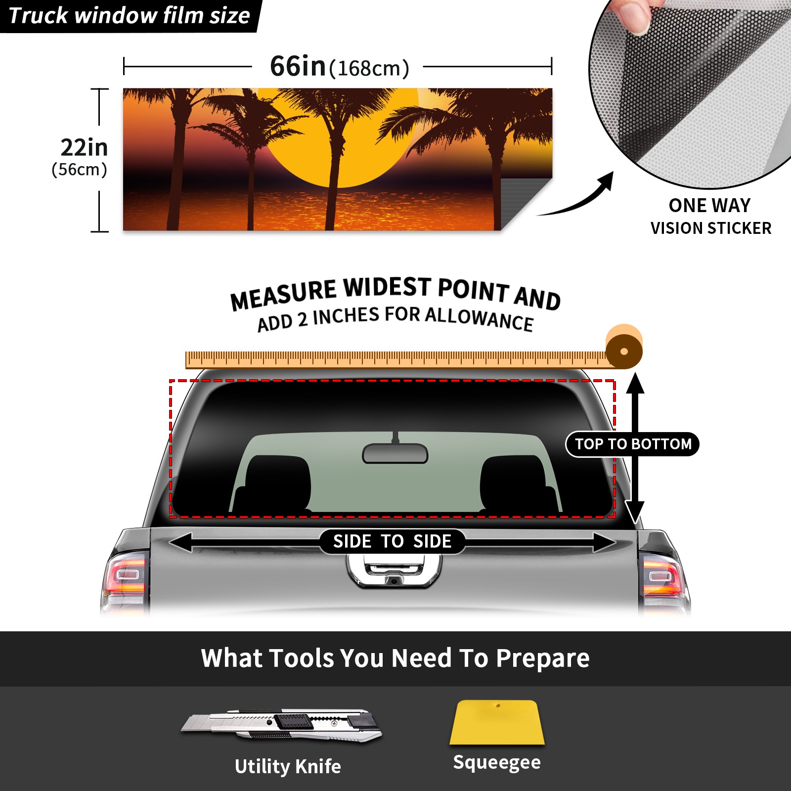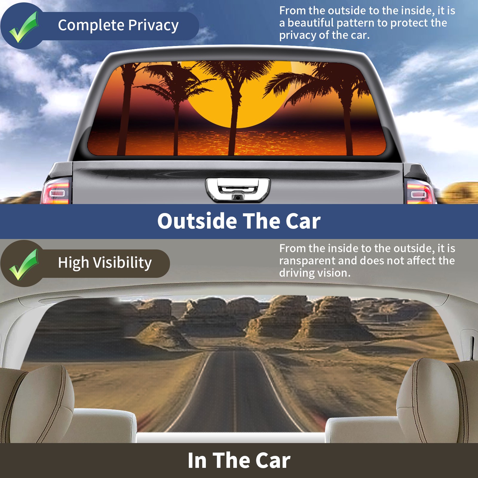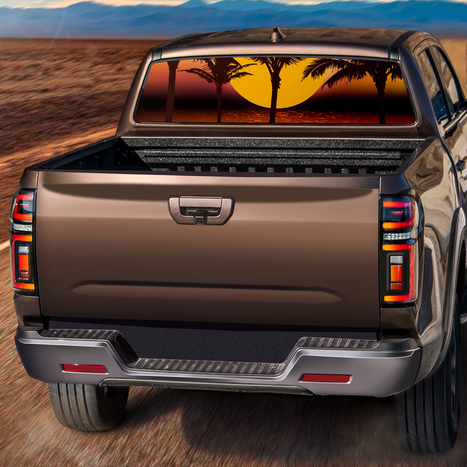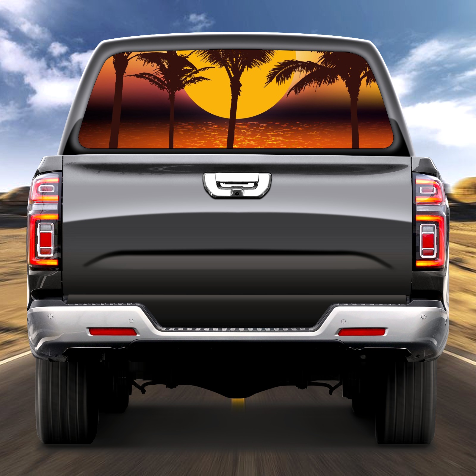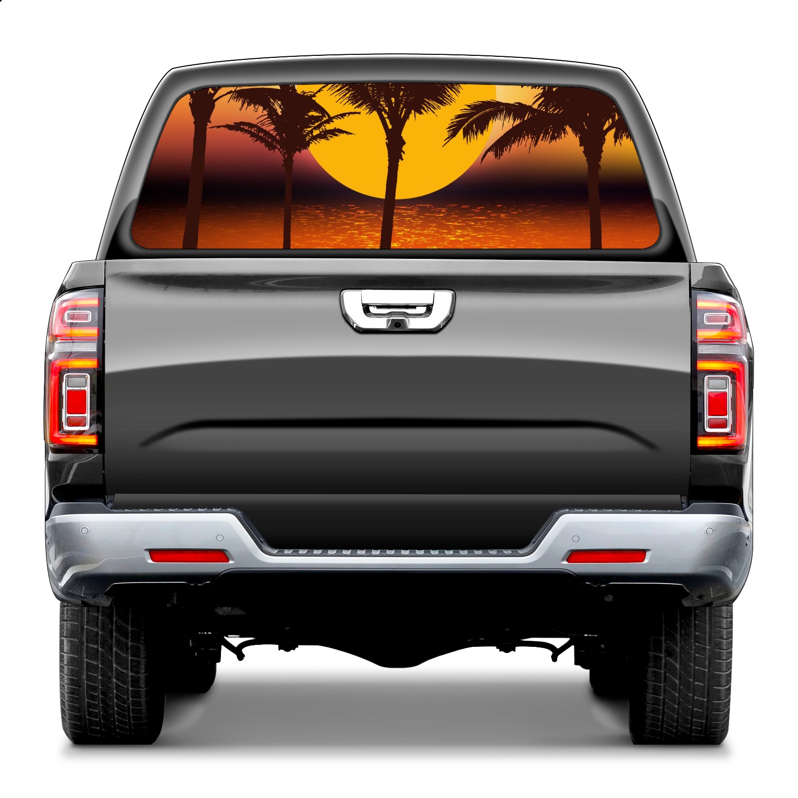 Truck Rear Window Graphics Decals Pickup Trucks Back Window Sticker Full Window Film Decal One Way Visual Waterproof Car Rear Tint Tropical Sunset Palm Trees