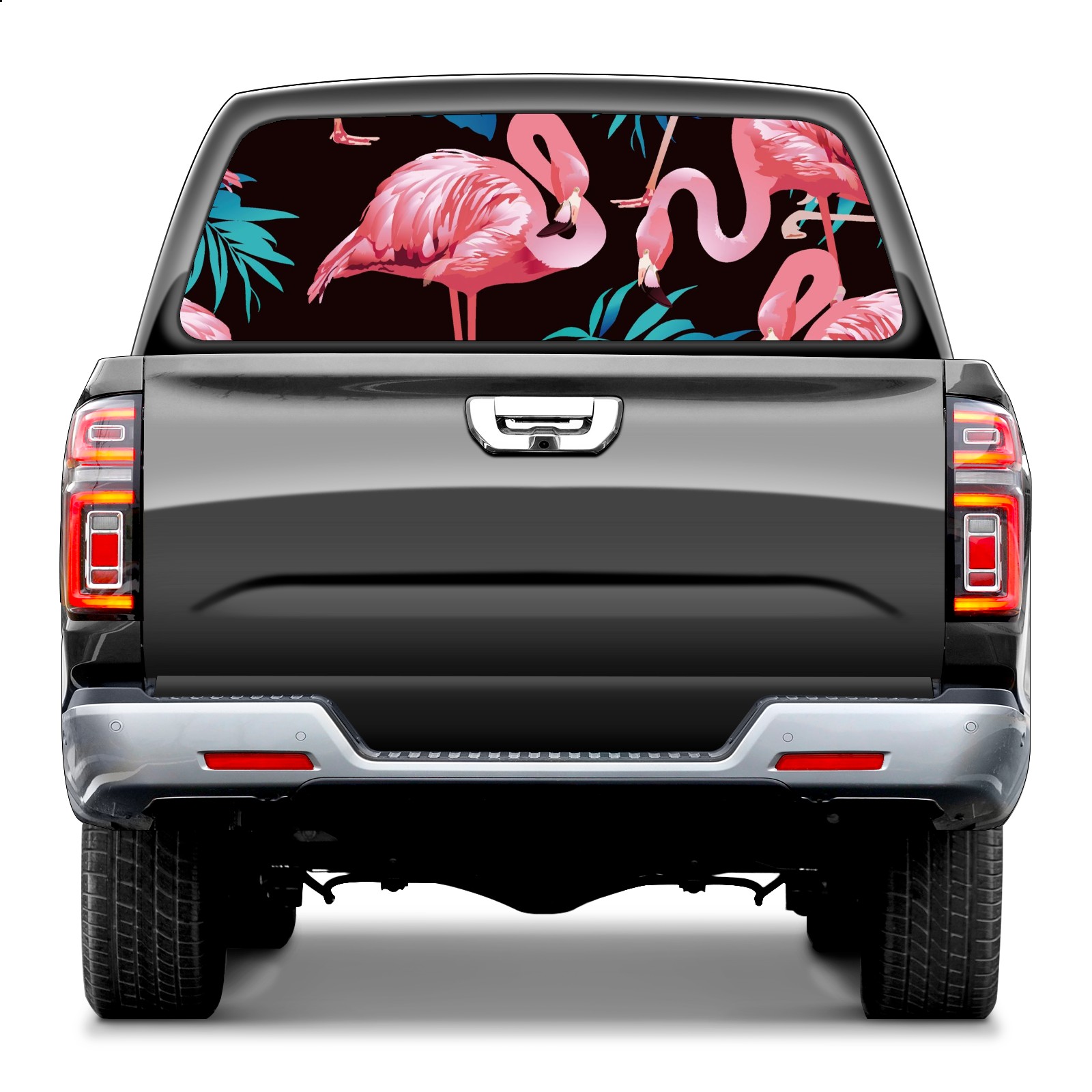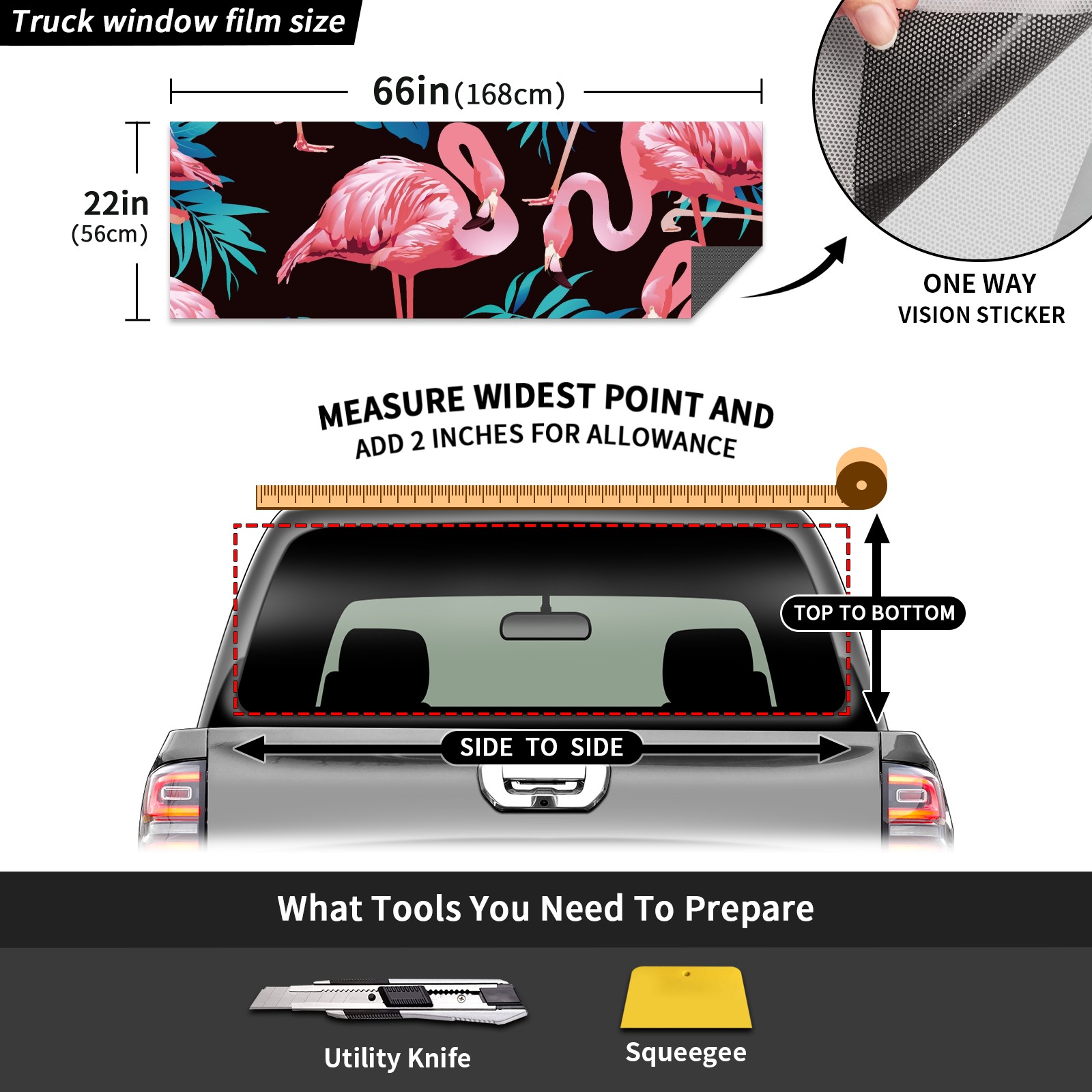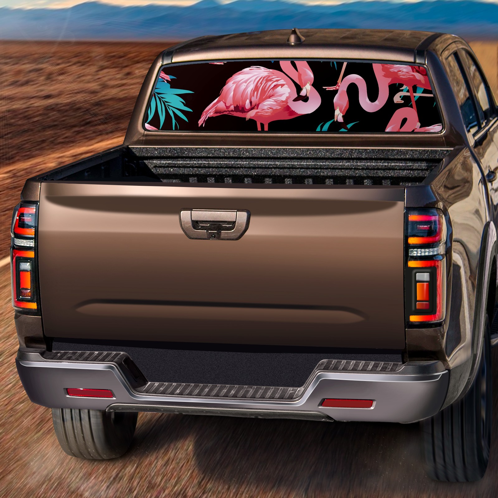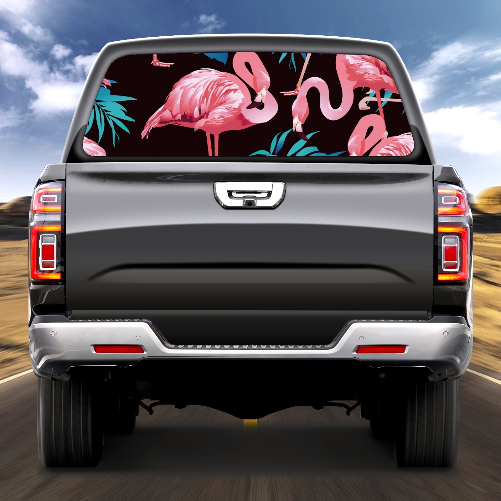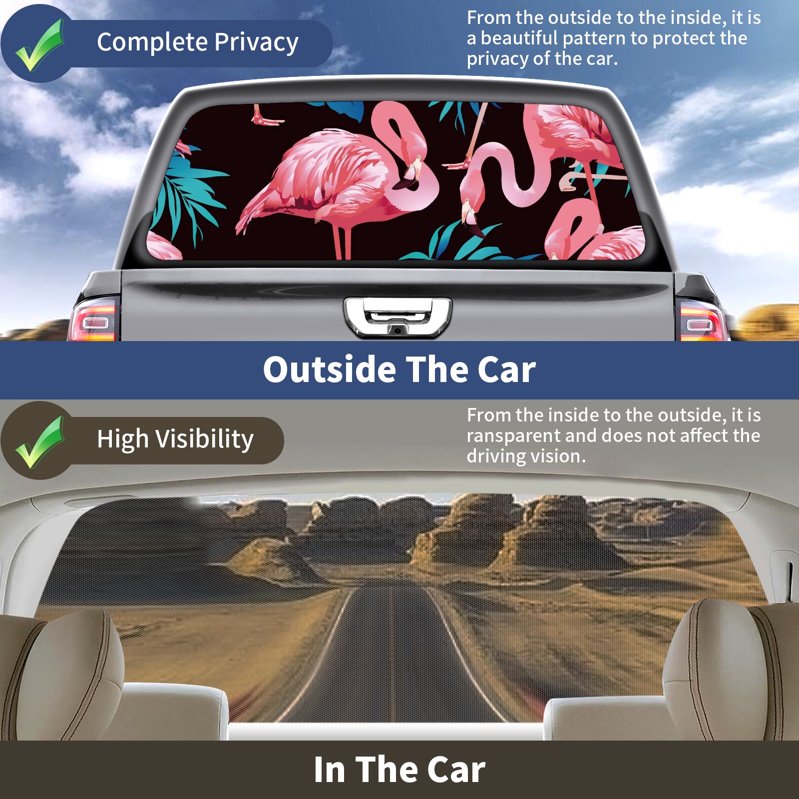 Truck Rear Window Graphics Decals Pickup Trucks Back Window Sticker Full Window Film Decal One Way Visual Waterproof Car Rear Tint Tropical Flamingo Plant