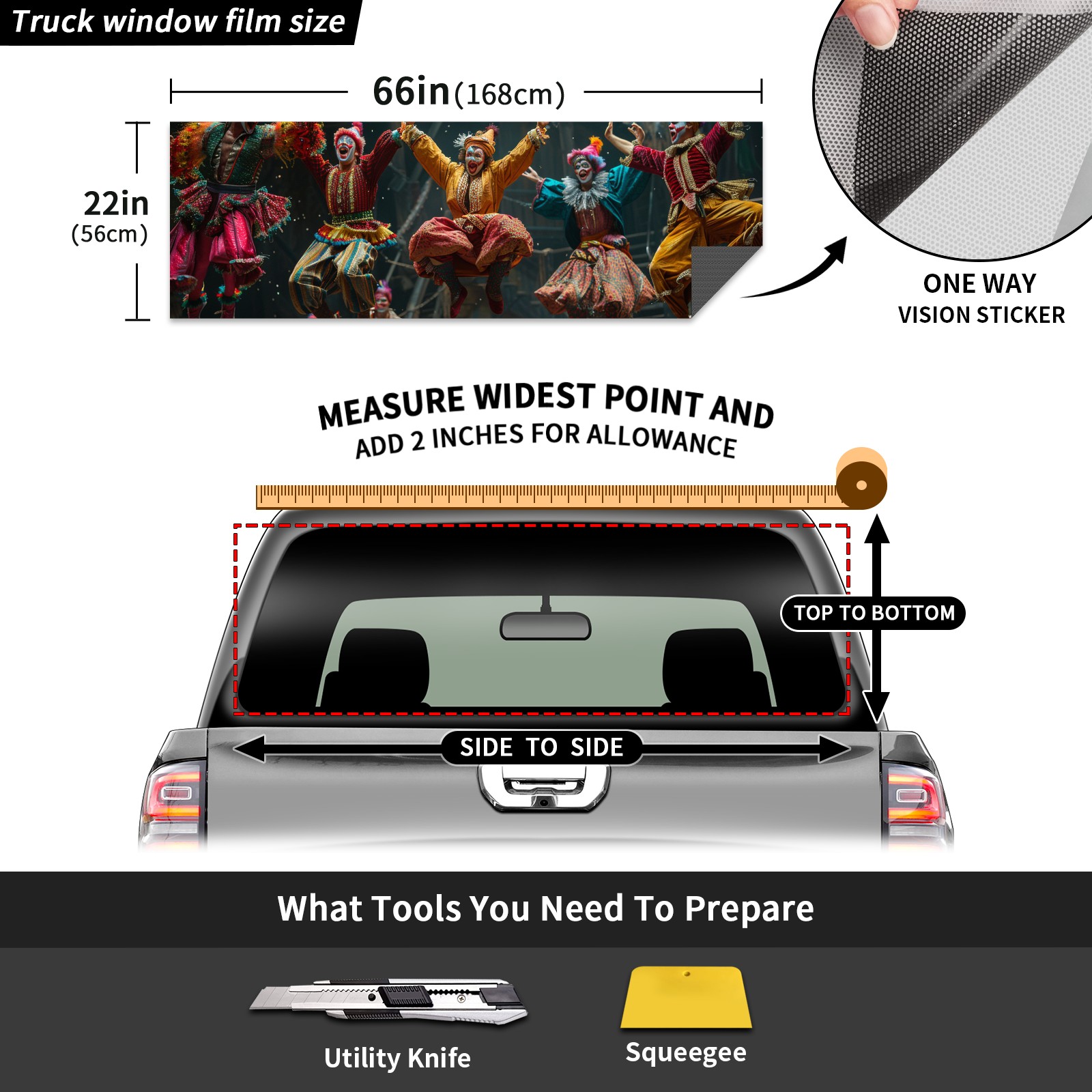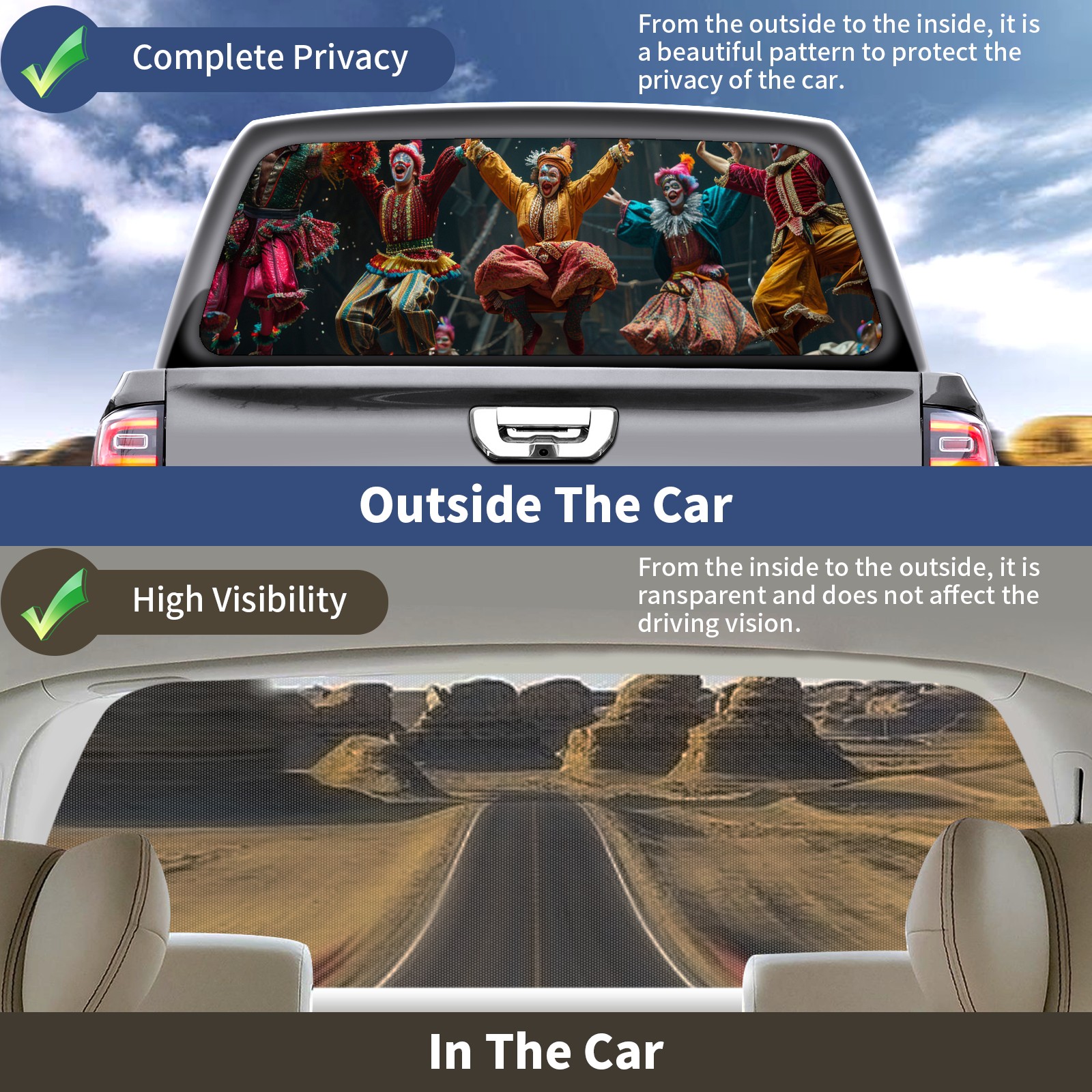 Truck Rear Window Graphics Decals Pickup Trucks Back Window Sticker Full Window Film Decal One Way Visual Waterproof Car Rear Tint Clown