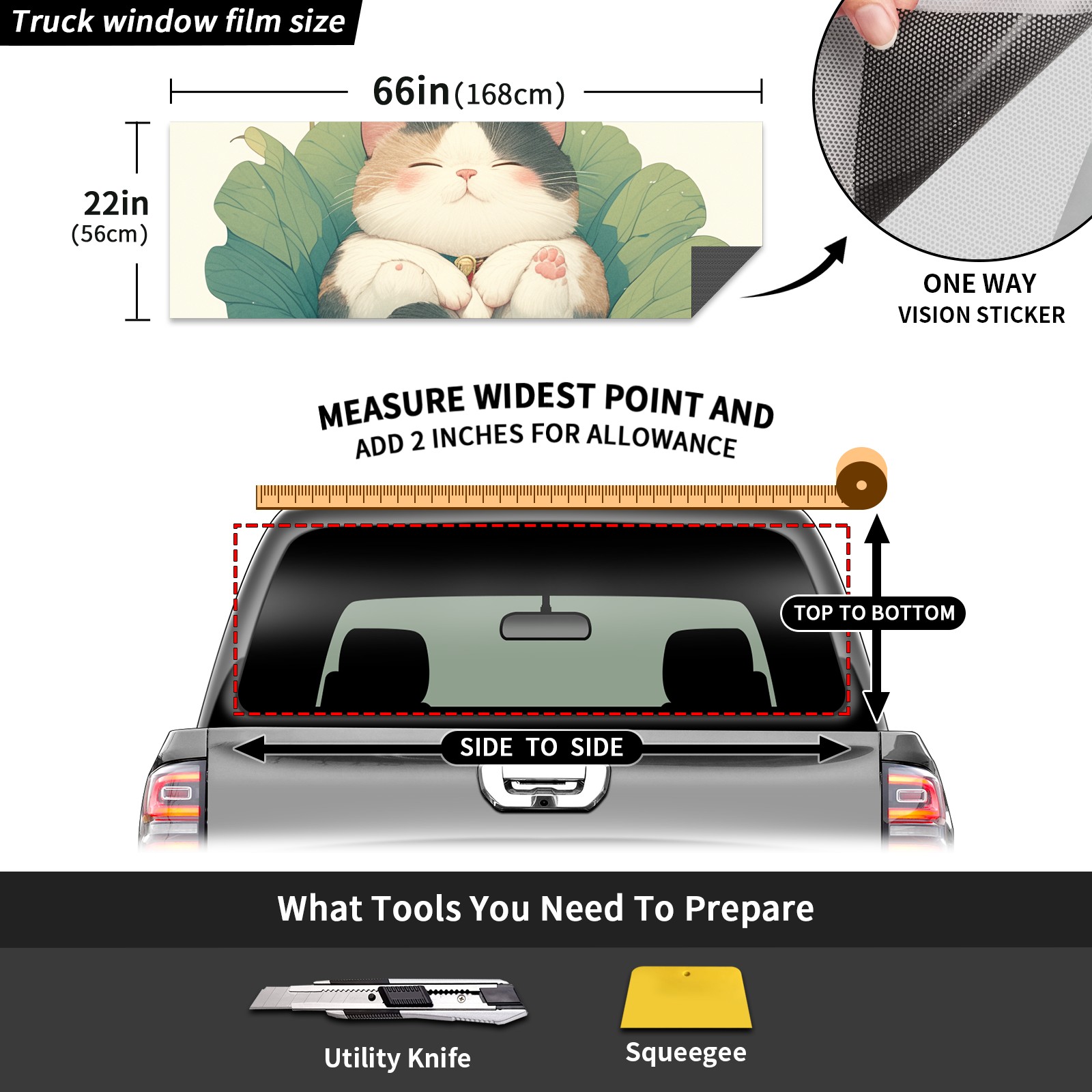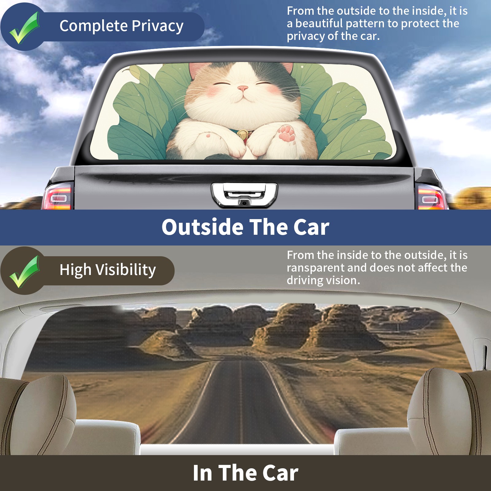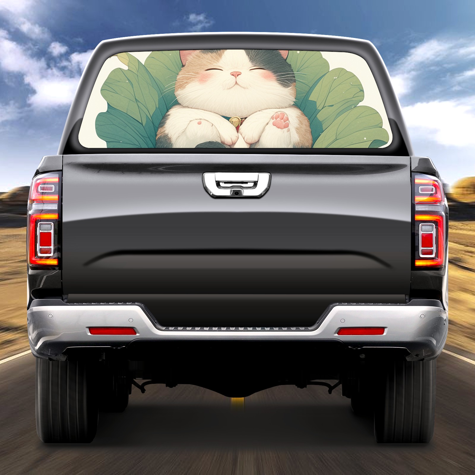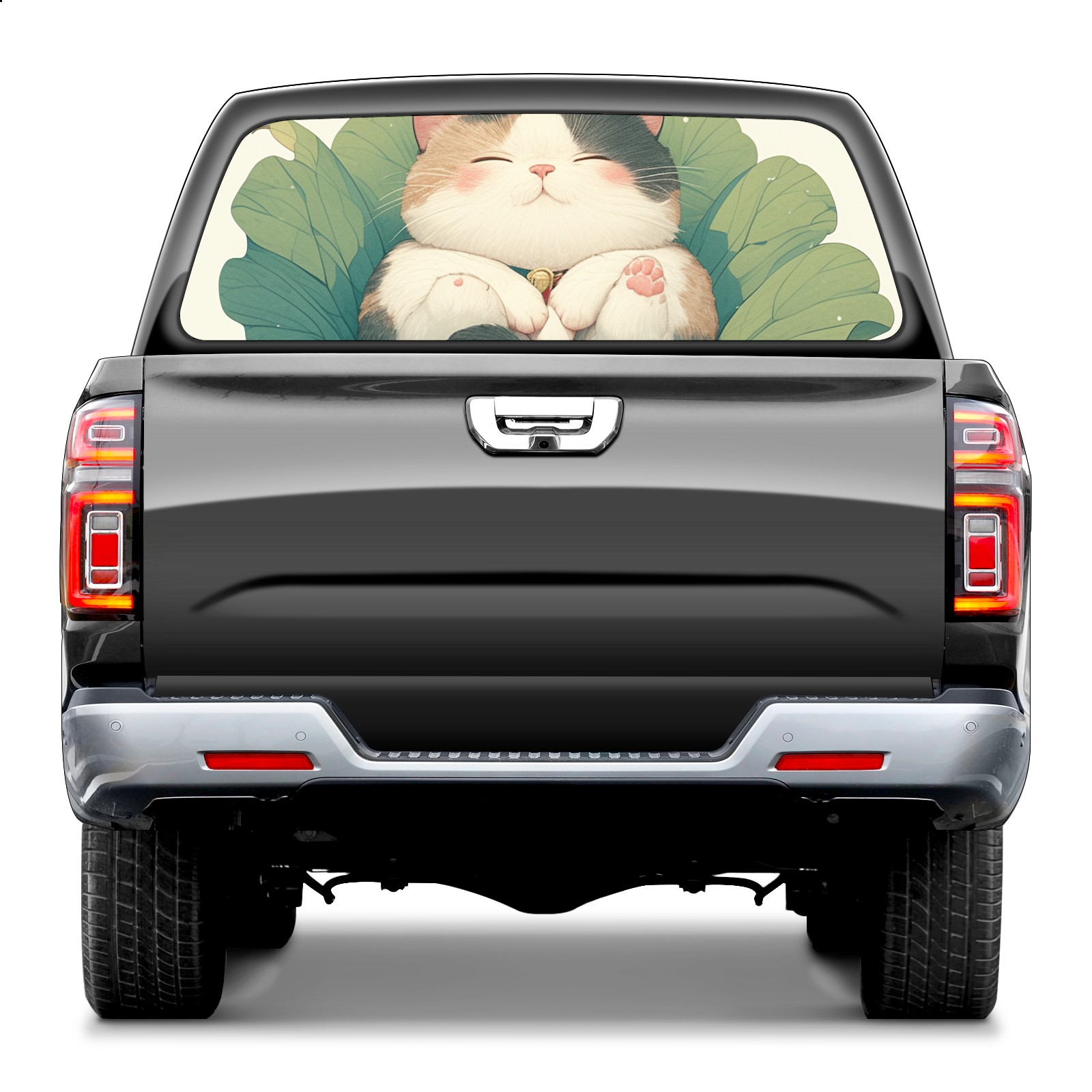 Truck Rear Window Graphics Decals Pickup Trucks Back Window Sticker Full Window Film Decal One Way Visual Waterproof Car Rear Tint Lotus Leaf Cat