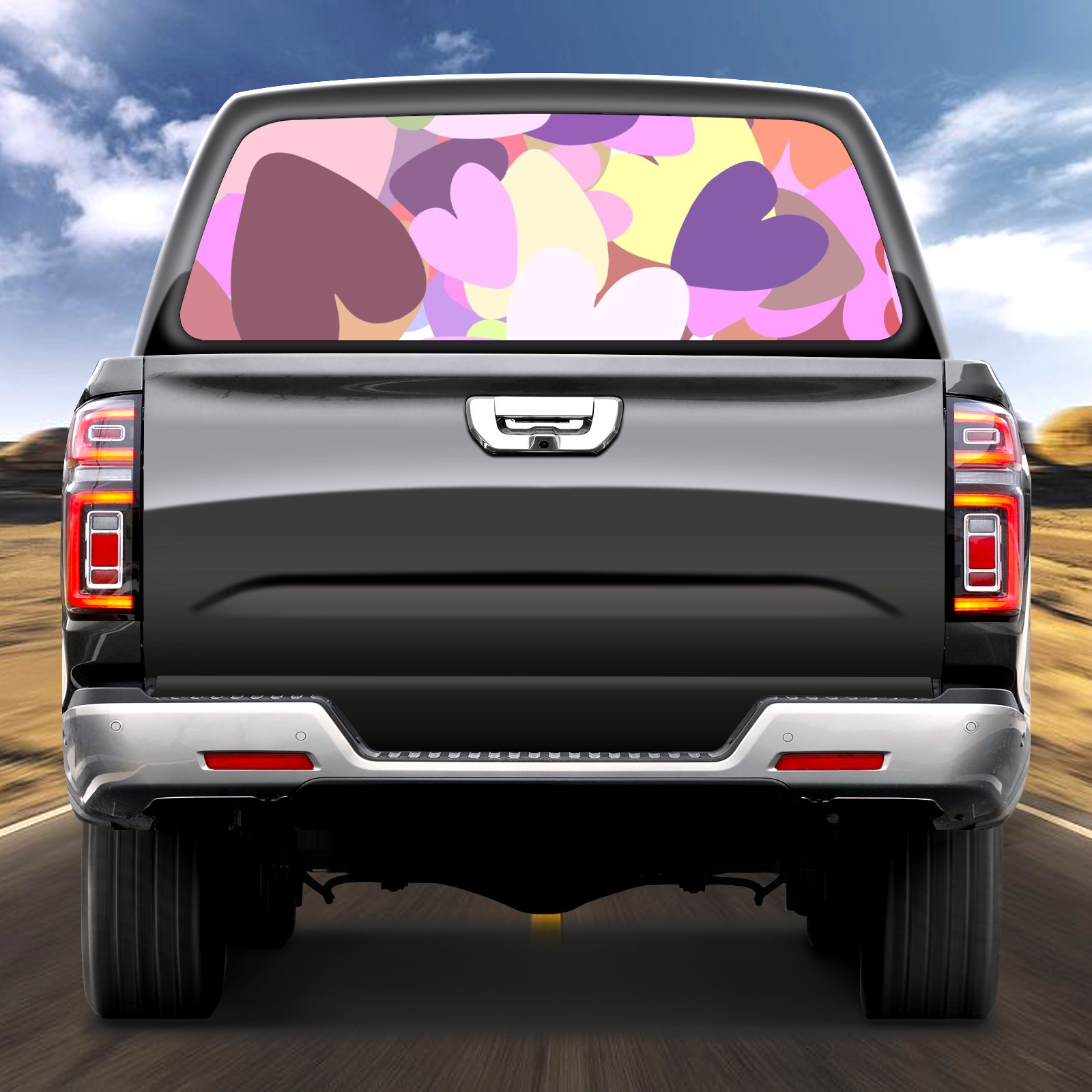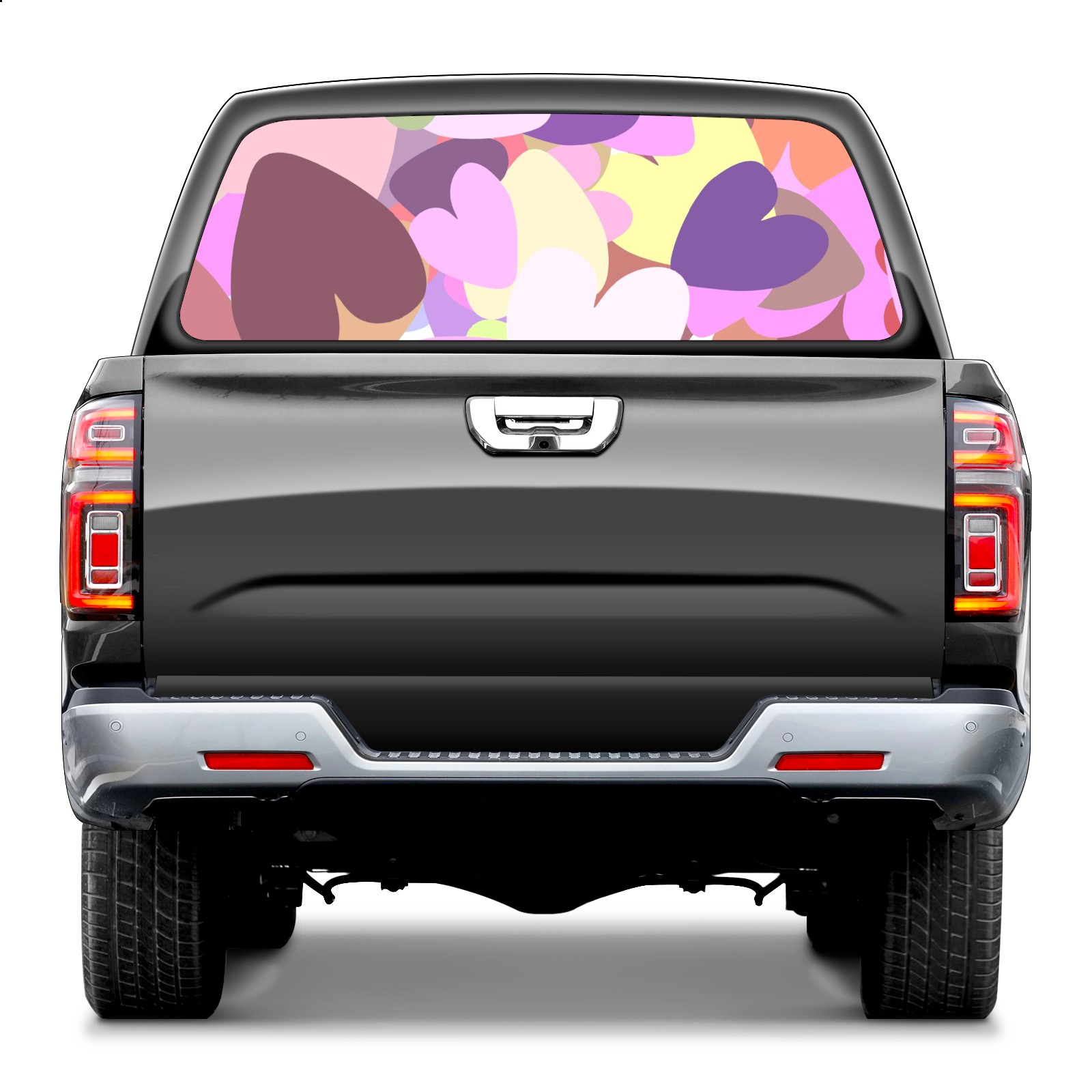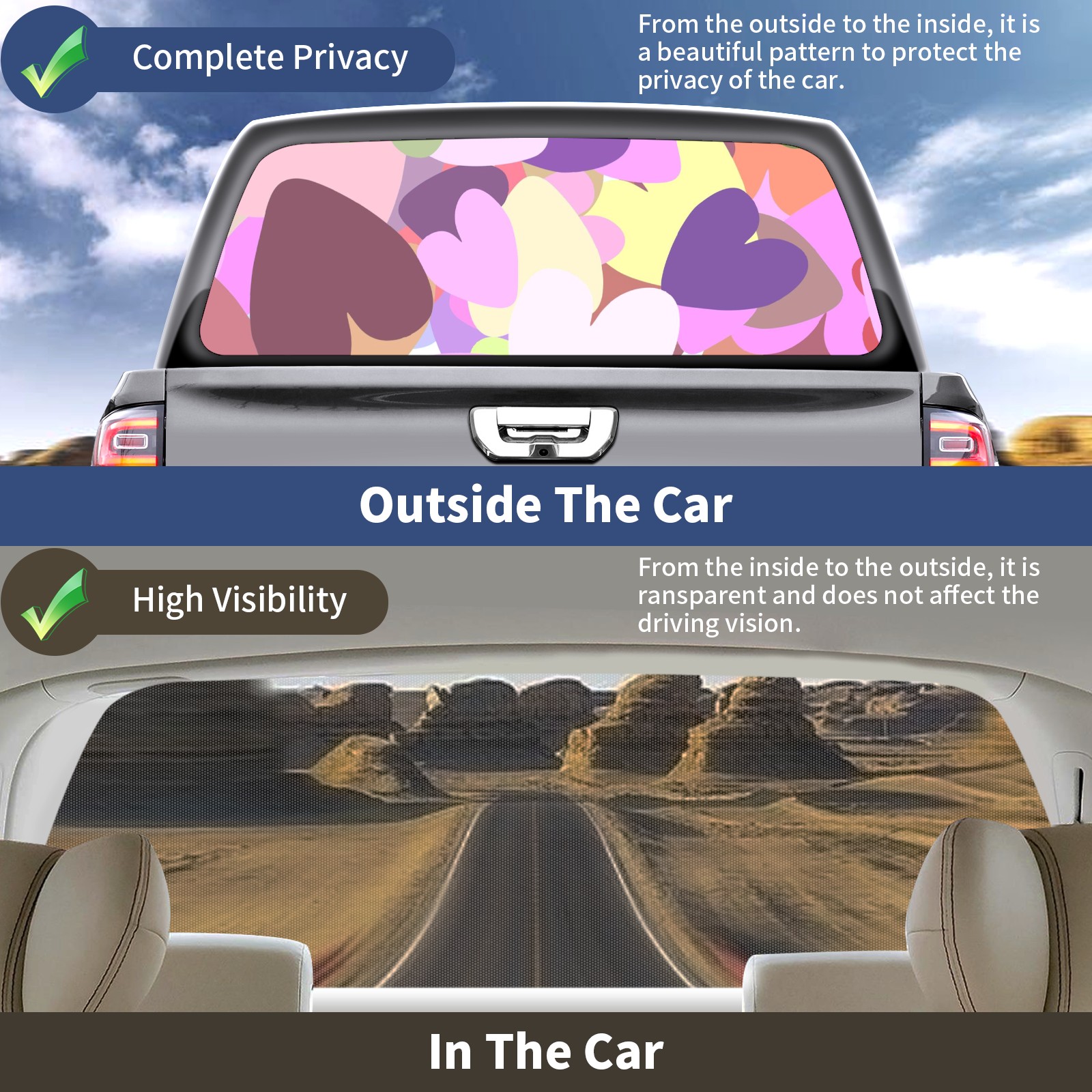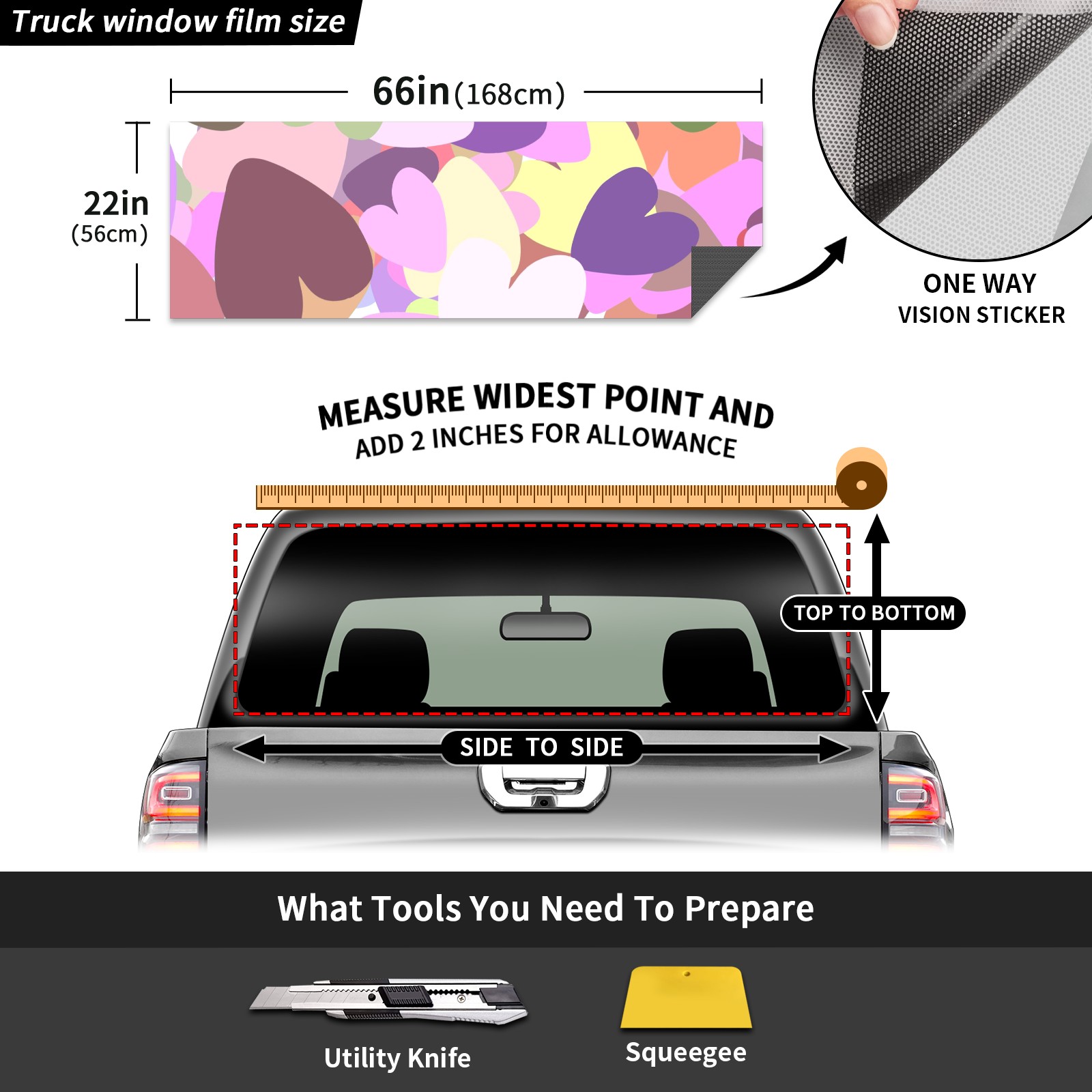 Truck Rear Window Graphics Decals Pickup Trucks Back Window Sticker Full Window Film Decal One Way Visual Waterproof Car Rear Tint Heart 2