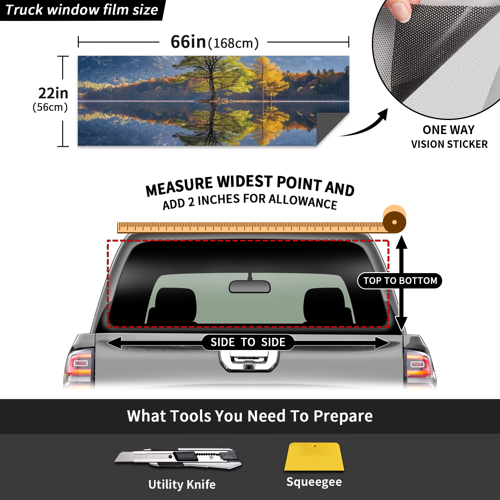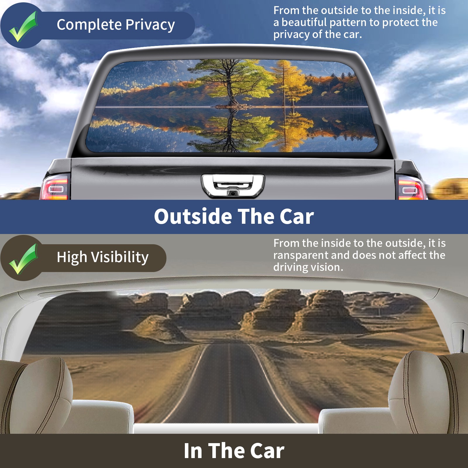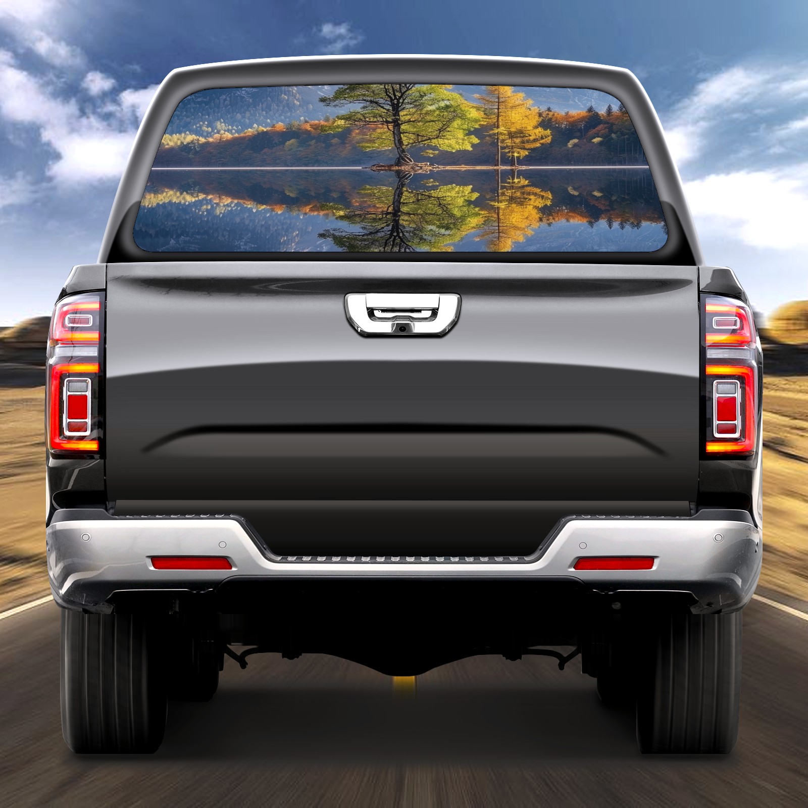 Truck Rear Window Graphics Decals Pickup Trucks Back Window Sticker Full Window Film Decal One Way Visual Waterproof Car Rear Tint Lake