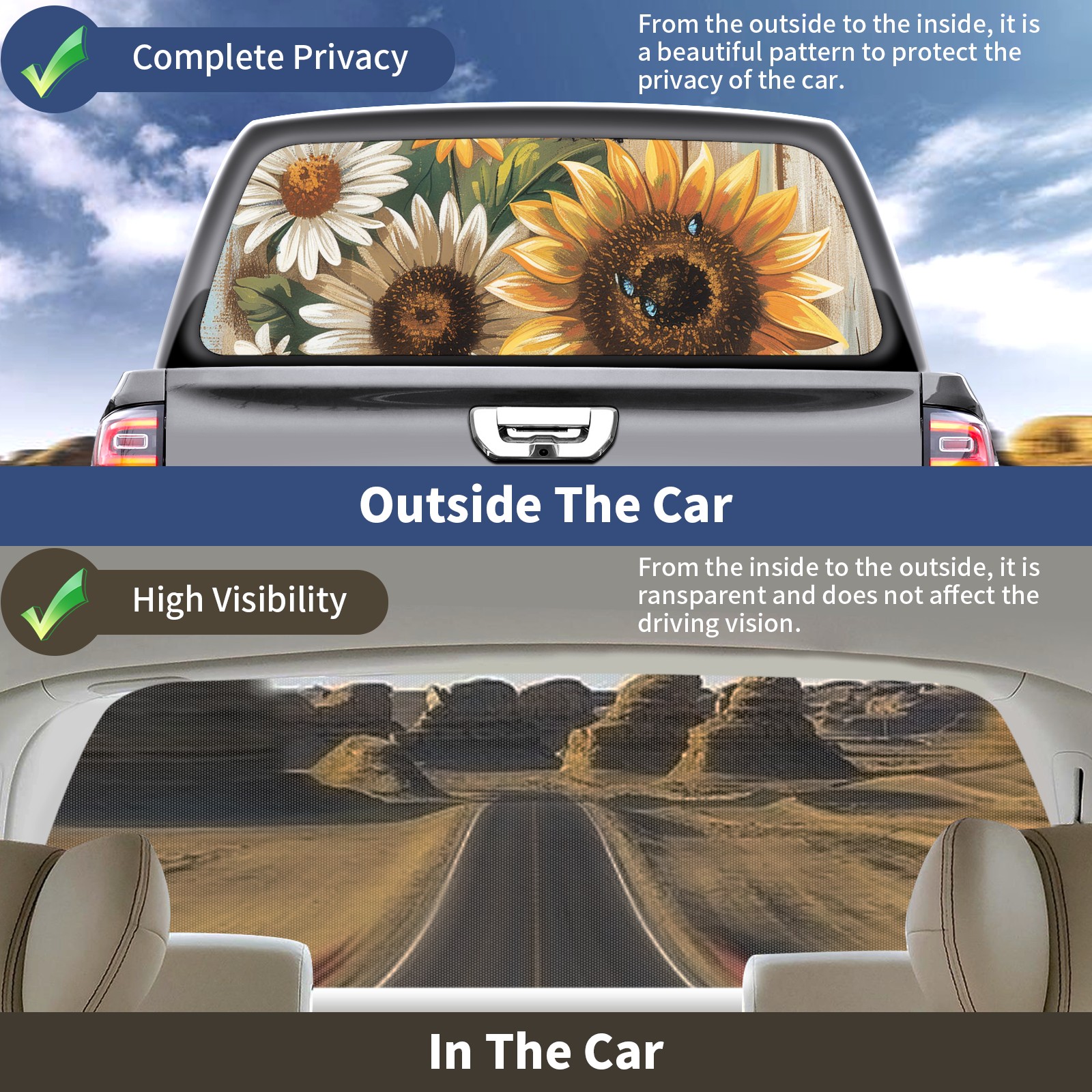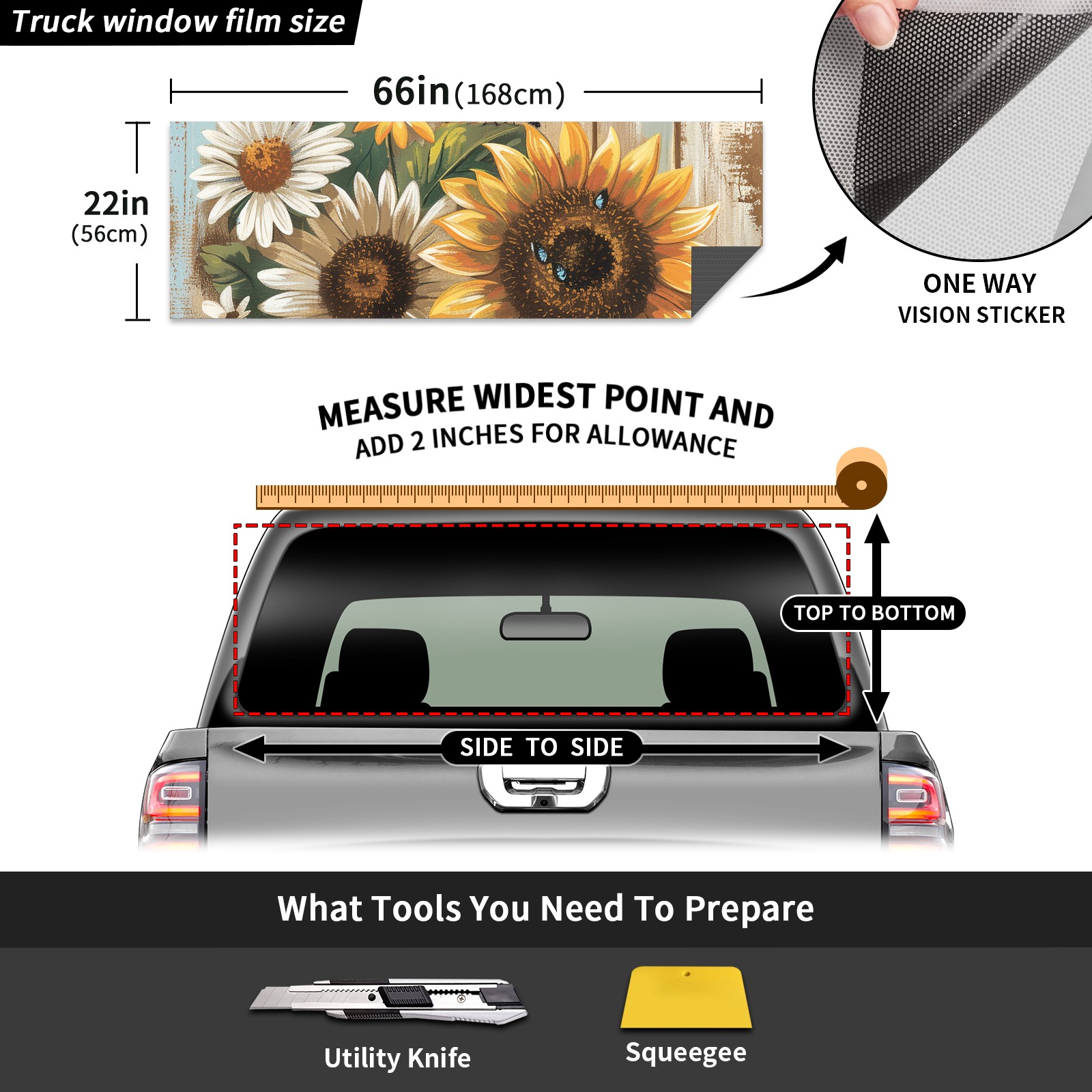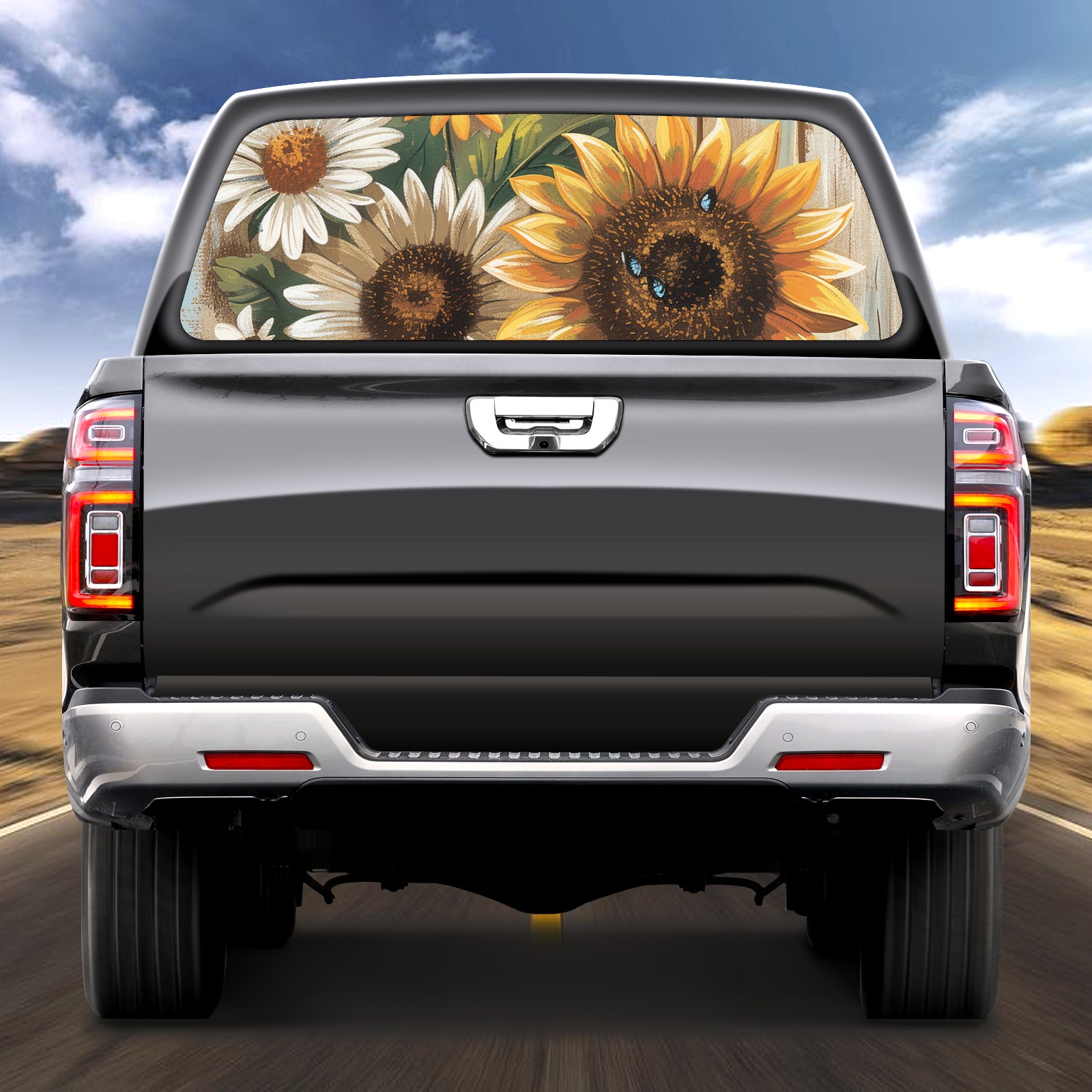 Truck Rear Window Graphics Decals Pickup Trucks Back Window Sticker Full Window Film Decal One Way Visual Waterproof Car Rear Tint Daisy