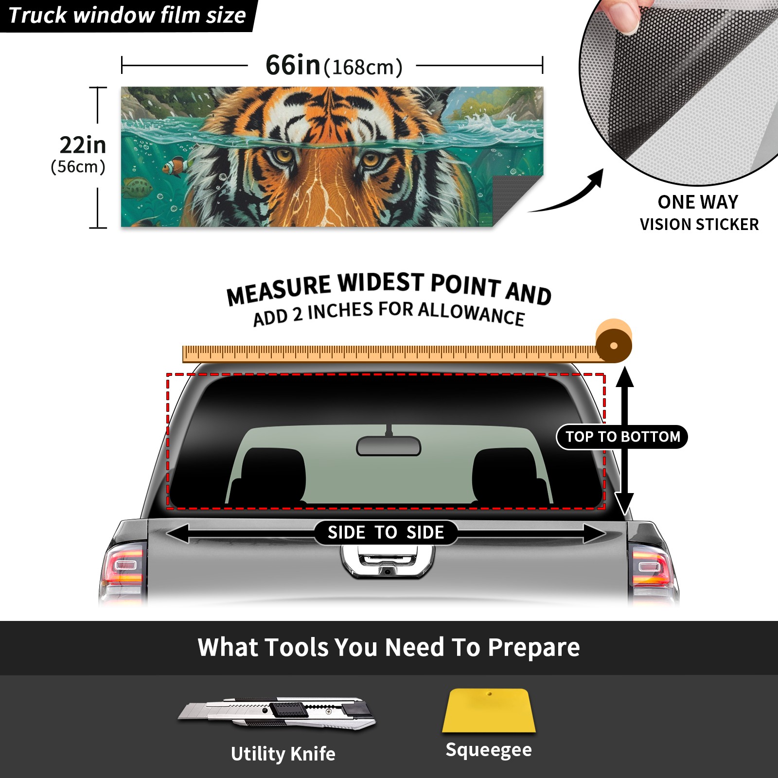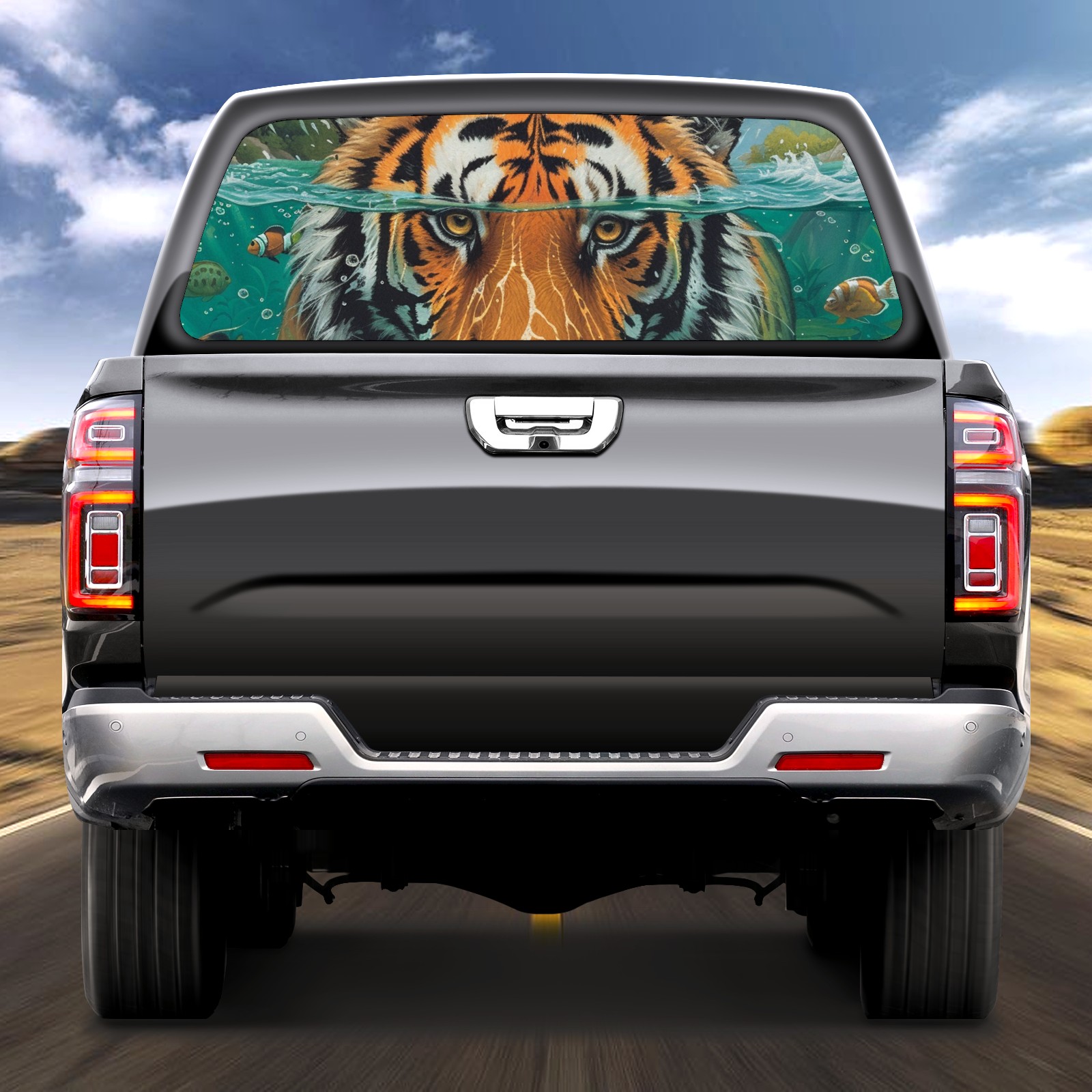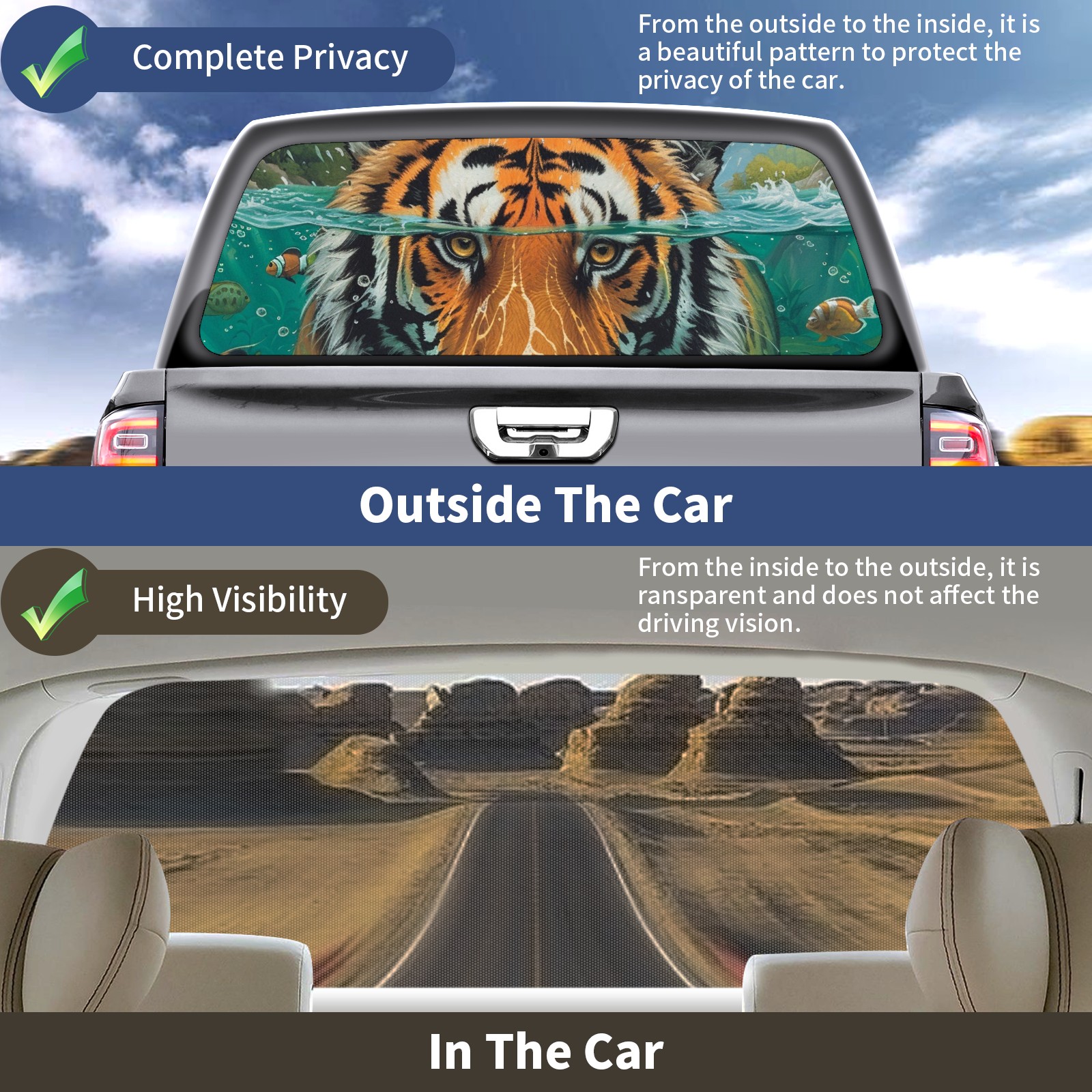 Truck Rear Window Graphics Decals Pickup Trucks Back Window Sticker Full Window Film Decal One Way Visual Waterproof Car Rear Tint Funny Tiger