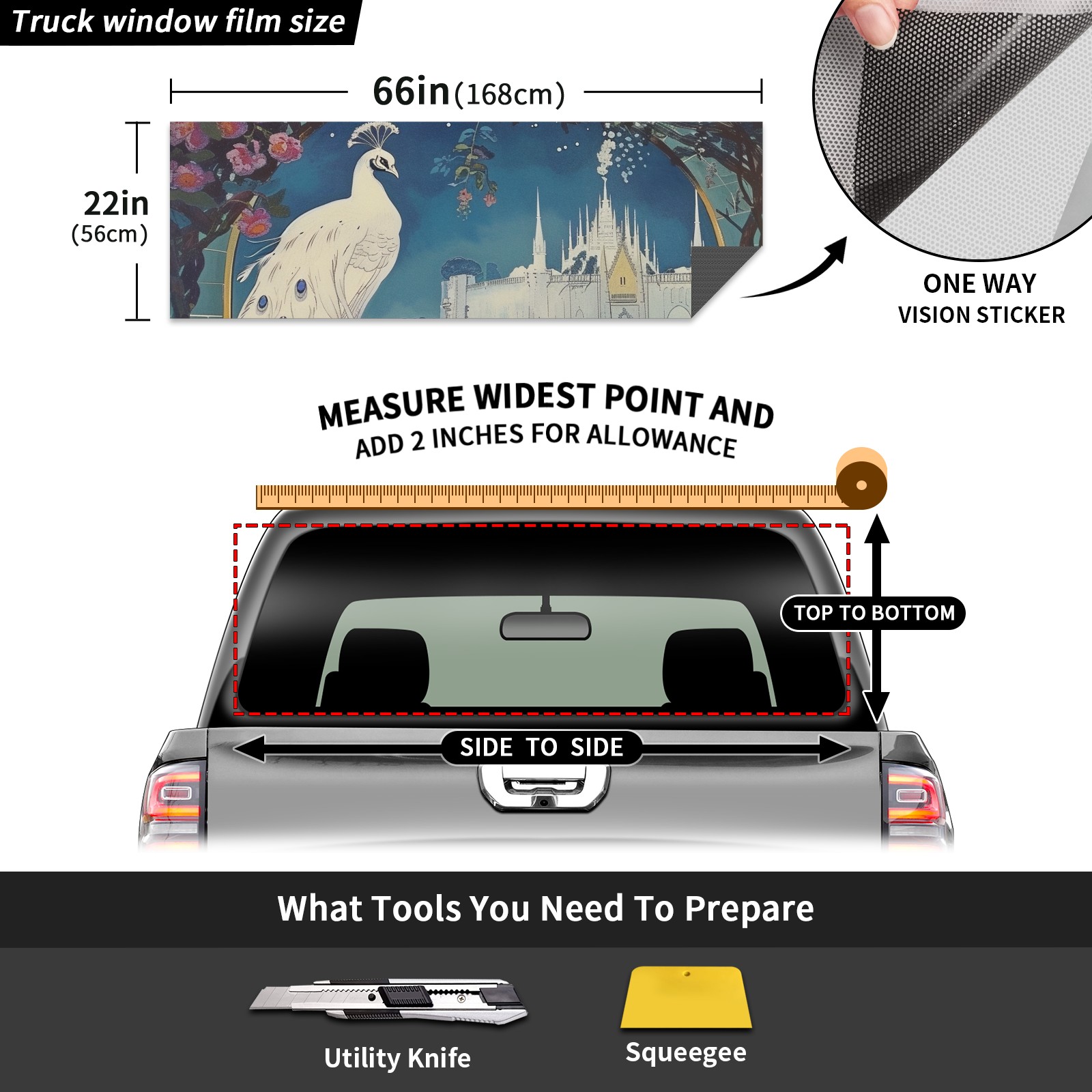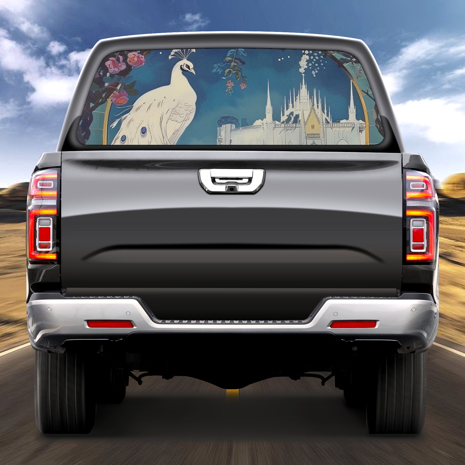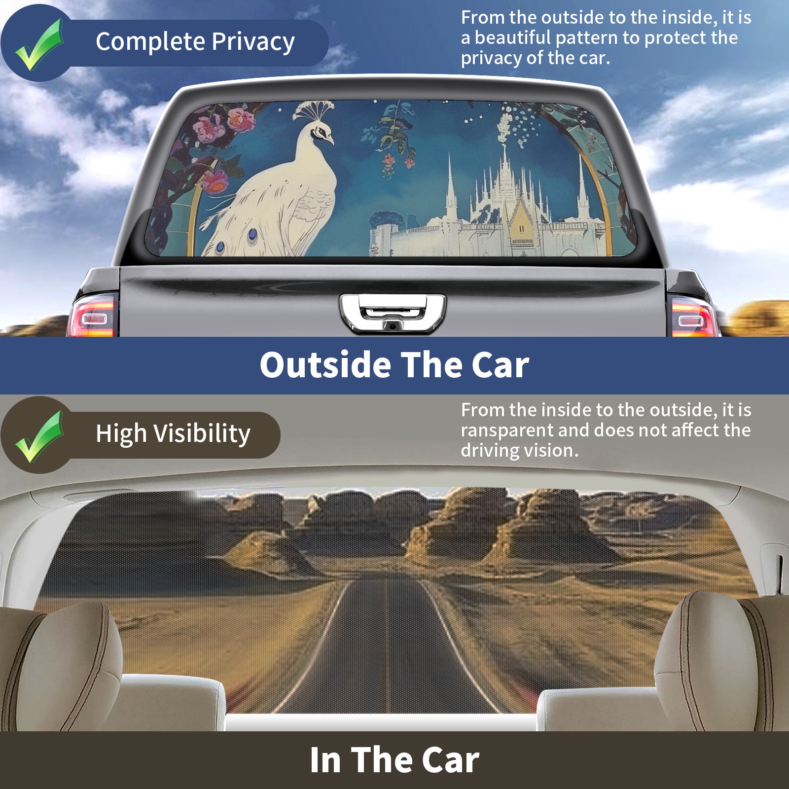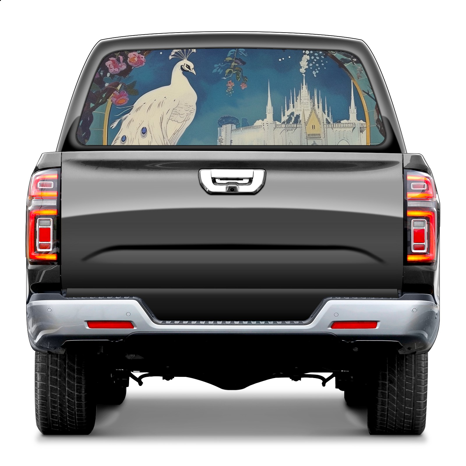 Truck Rear Window Graphics Decals Pickup Trucks Back Window Sticker Full Window Film Decal One Way Visual Waterproof Car Rear Tint Peacock