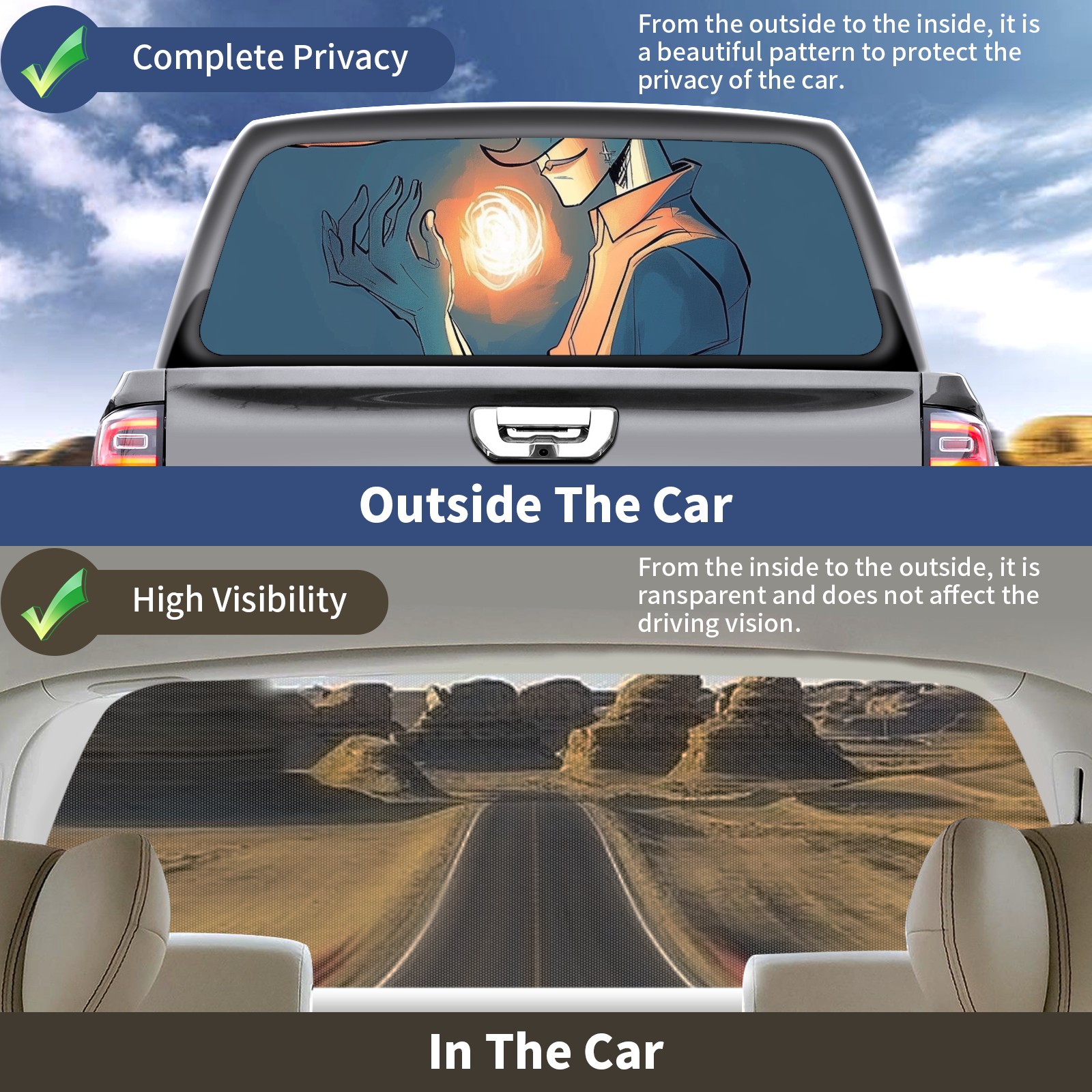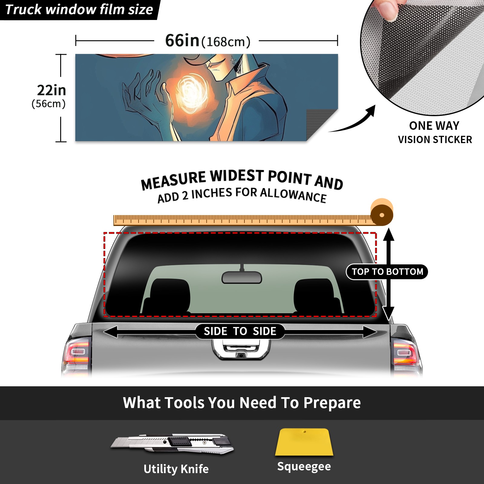 Truck Rear Window Graphics Decals Pickup Trucks Back Window Sticker Full Window Film Decal One Way Visual Waterproof Car Rear Tint Boy