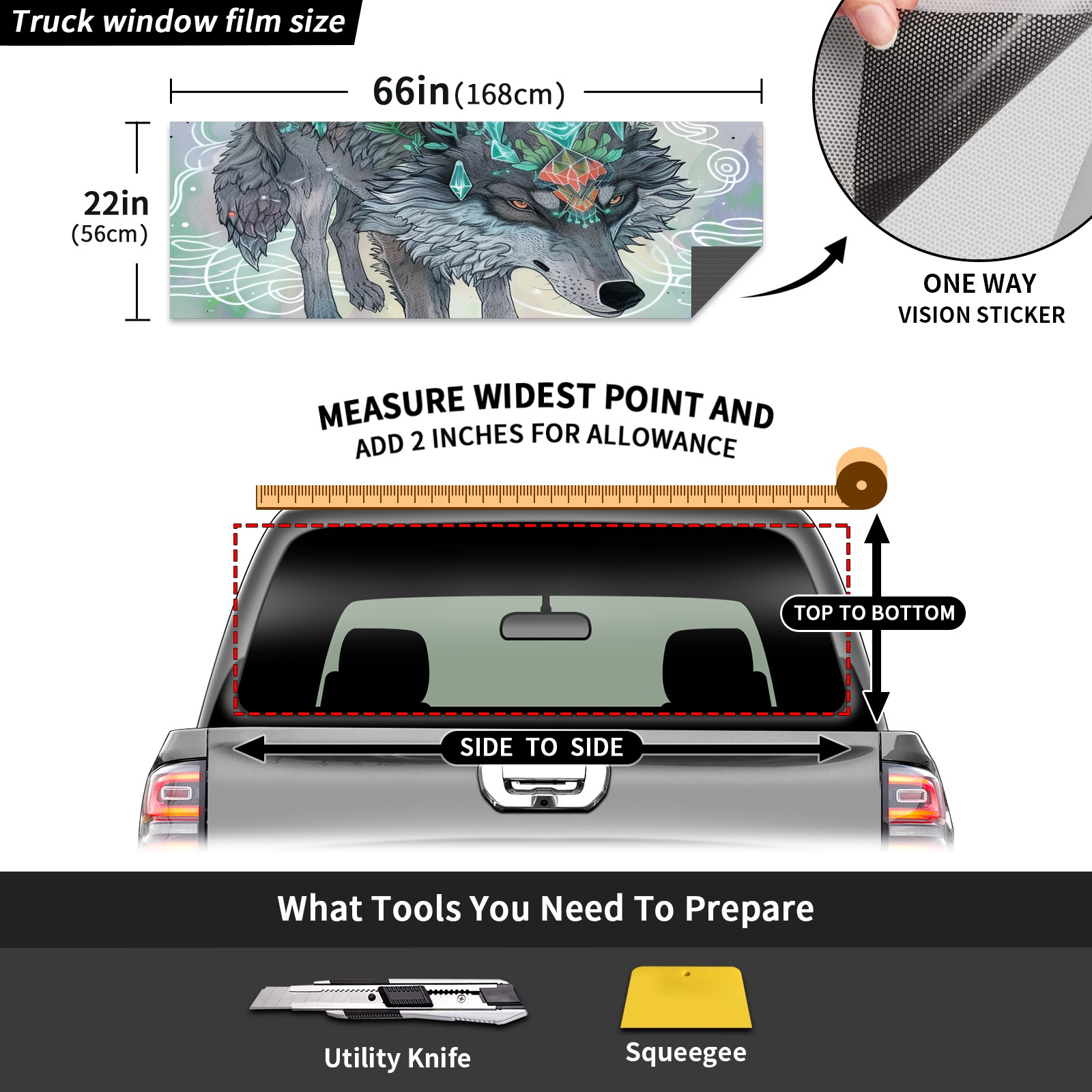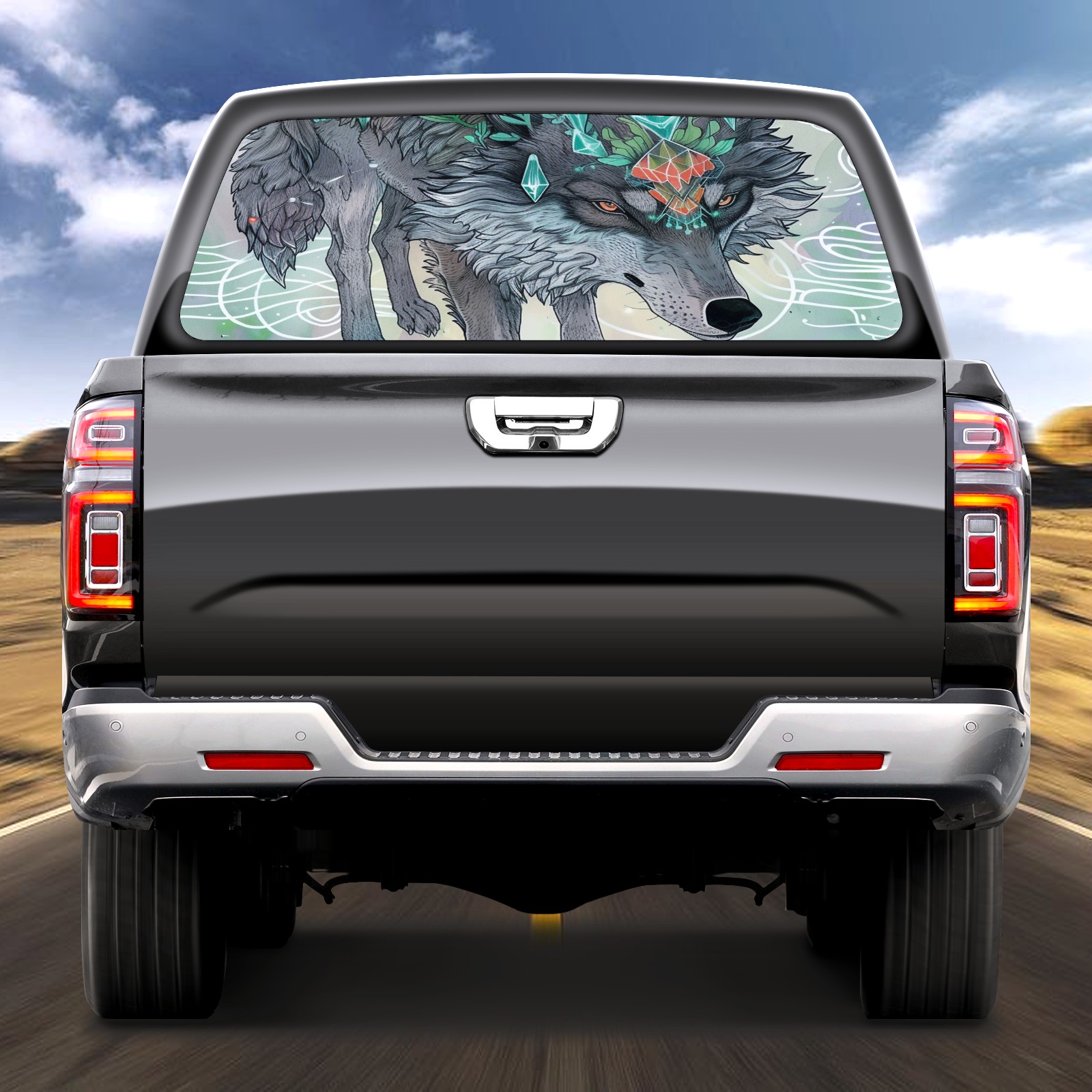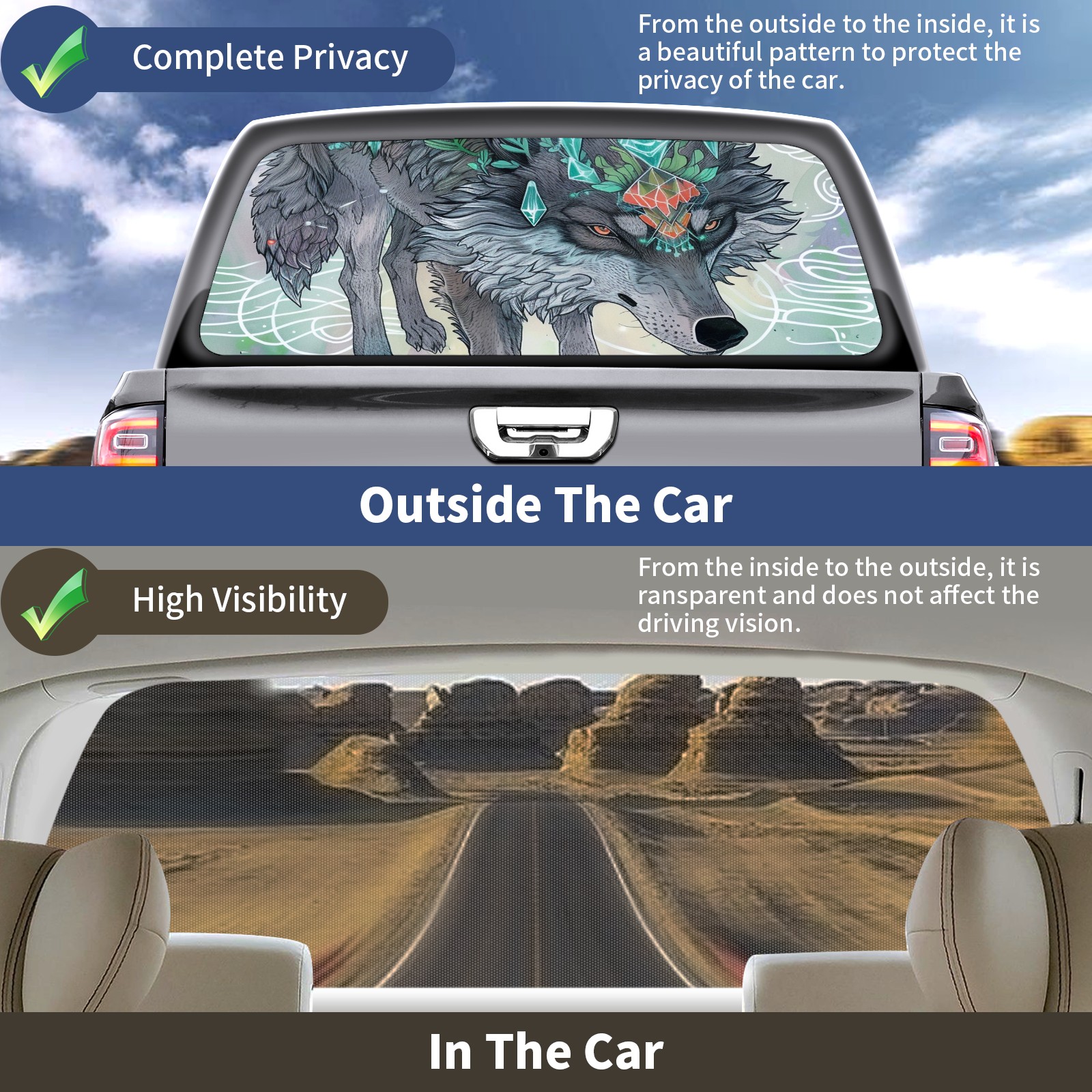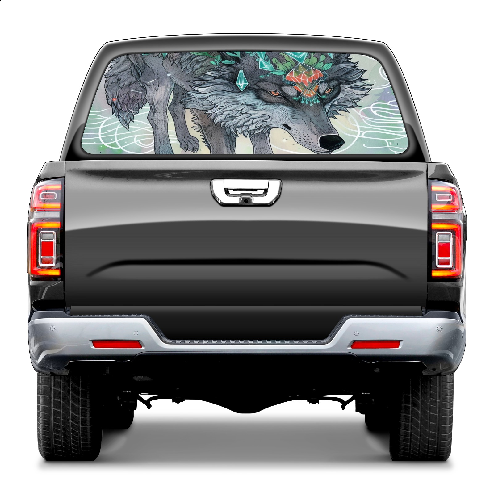 Truck Rear Window Graphics Decals Pickup Trucks Back Window Sticker Full Window Film Decal One Way Visual Waterproof Car Rear Tint Wolf