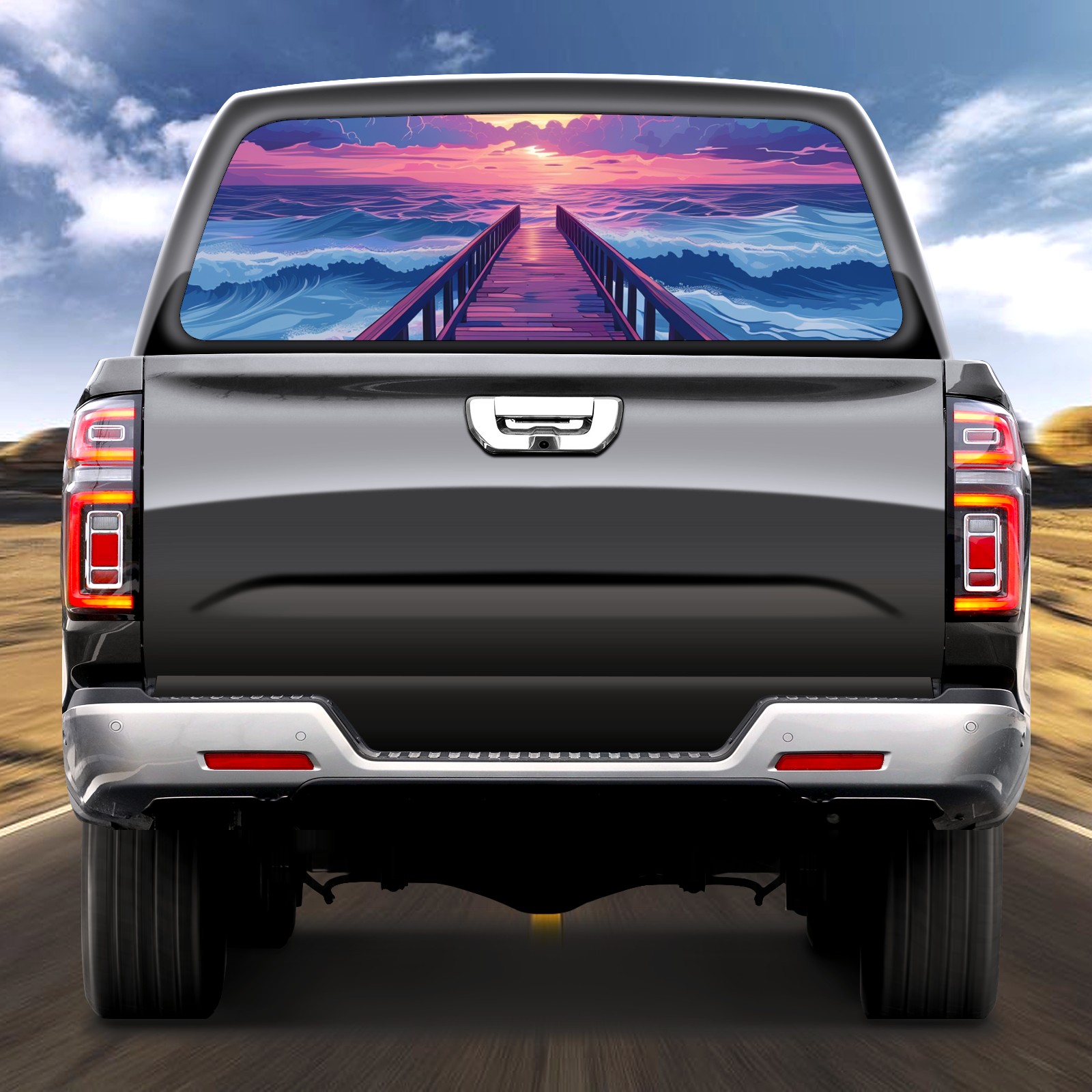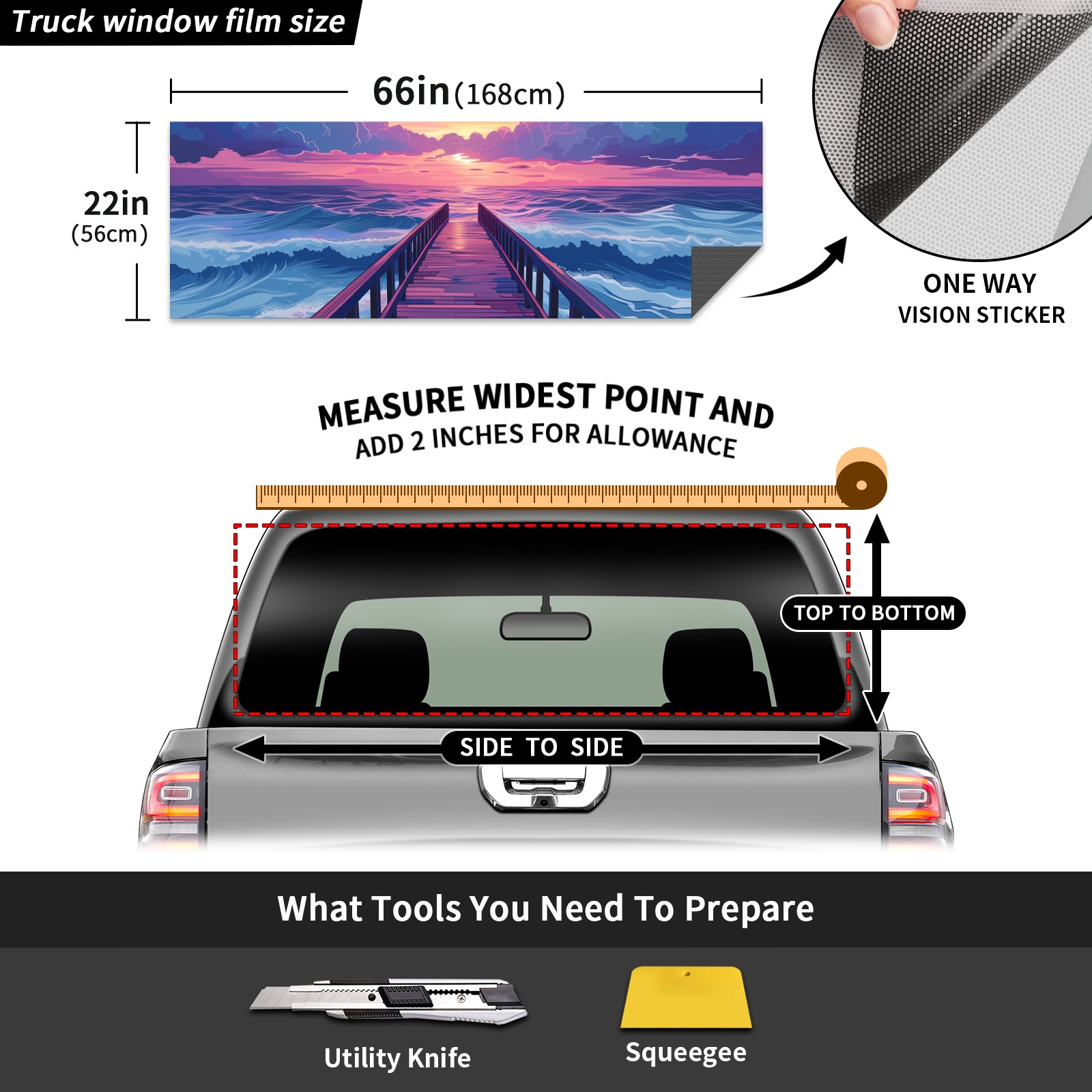 Truck Rear Window Graphics Decals Pickup Trucks Back Window Sticker Full Window Film Decal One Way Visual Waterproof Car Rear Tint Moon