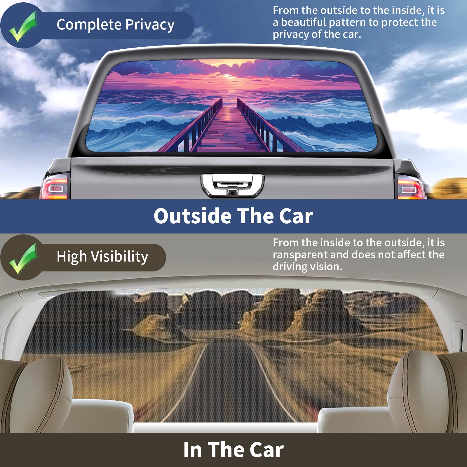 • <b>One-Way Light Transmission Window Film Protect Your Privacy While Allowing You To Enjoy The Scenery Outside Your Window!</b> <br> <b>●Decals Instructions Usage--Teach You To Use Quickly</b> <br> 1.Clean the window galss thoroughly <br> 2.Use a Squeegee or other card to scrape off the remaining water and bumps(don't use too much force) <br> 3.Remove the film's back cover .Use a knife to cut out a suitable contour and wipe off the remaining water(you can also use a hair dryer to blow dry) <br> 4.Find a suitable location and stick a sticker <br> <b>●Unique Design</b> <br> ZXIVGOQFR Back window stickers ‘s smart looking and unique cute design makes your vehicle special under sunshine. Makes your car easy to identify, perfect for finding your car in crowded parking lots and garages.funny visor reflects personality and attitude. <br> <b>●Perfect Gift for all Drivers<br></b> We create all the gifts and accessories you only need to choose what you like. Get full tailgate wraps, rear window decals, and everything you need to make your pickup truck look awesome. <br> <b>Decorate Your Pickup Truck With Rear Window Decal Today!</b>