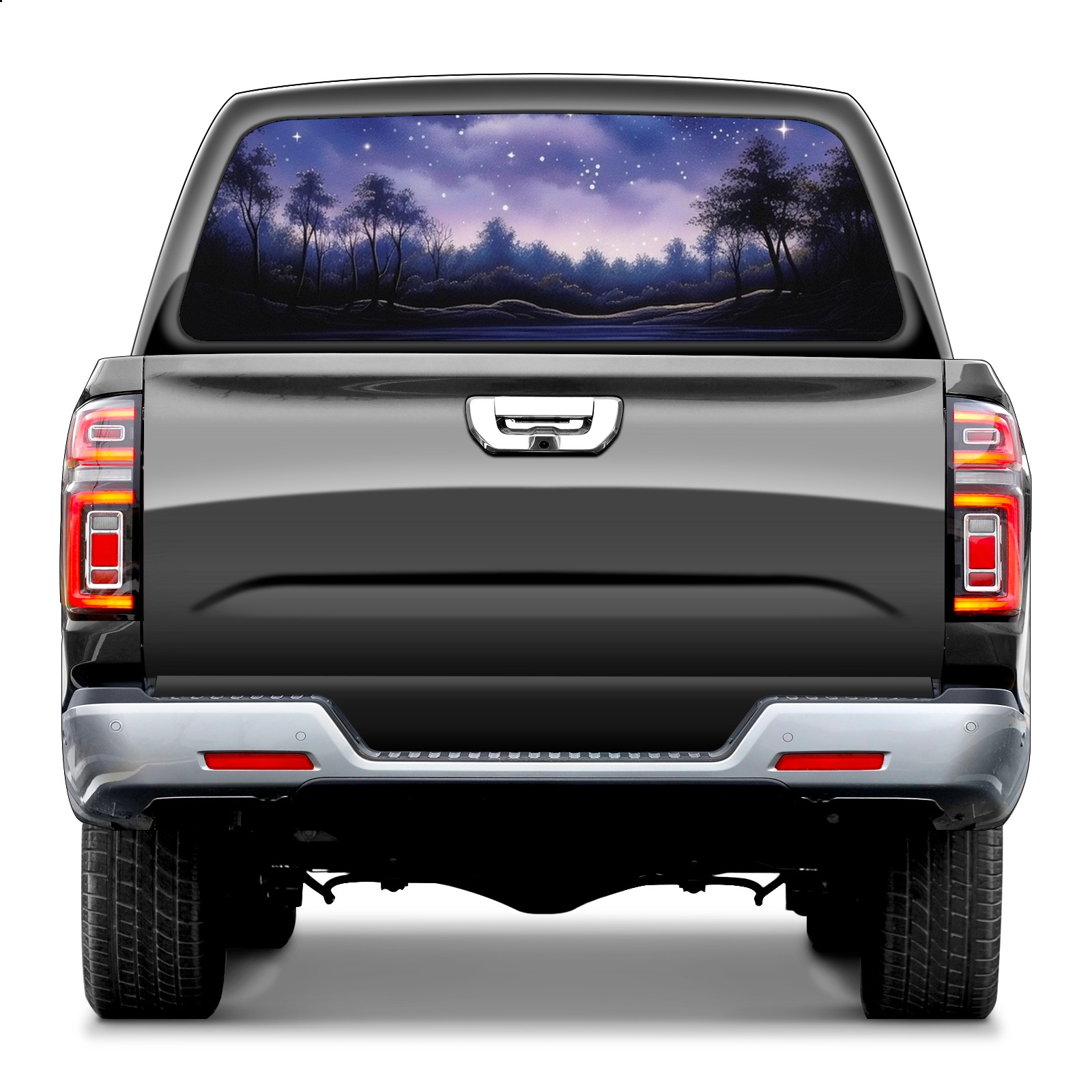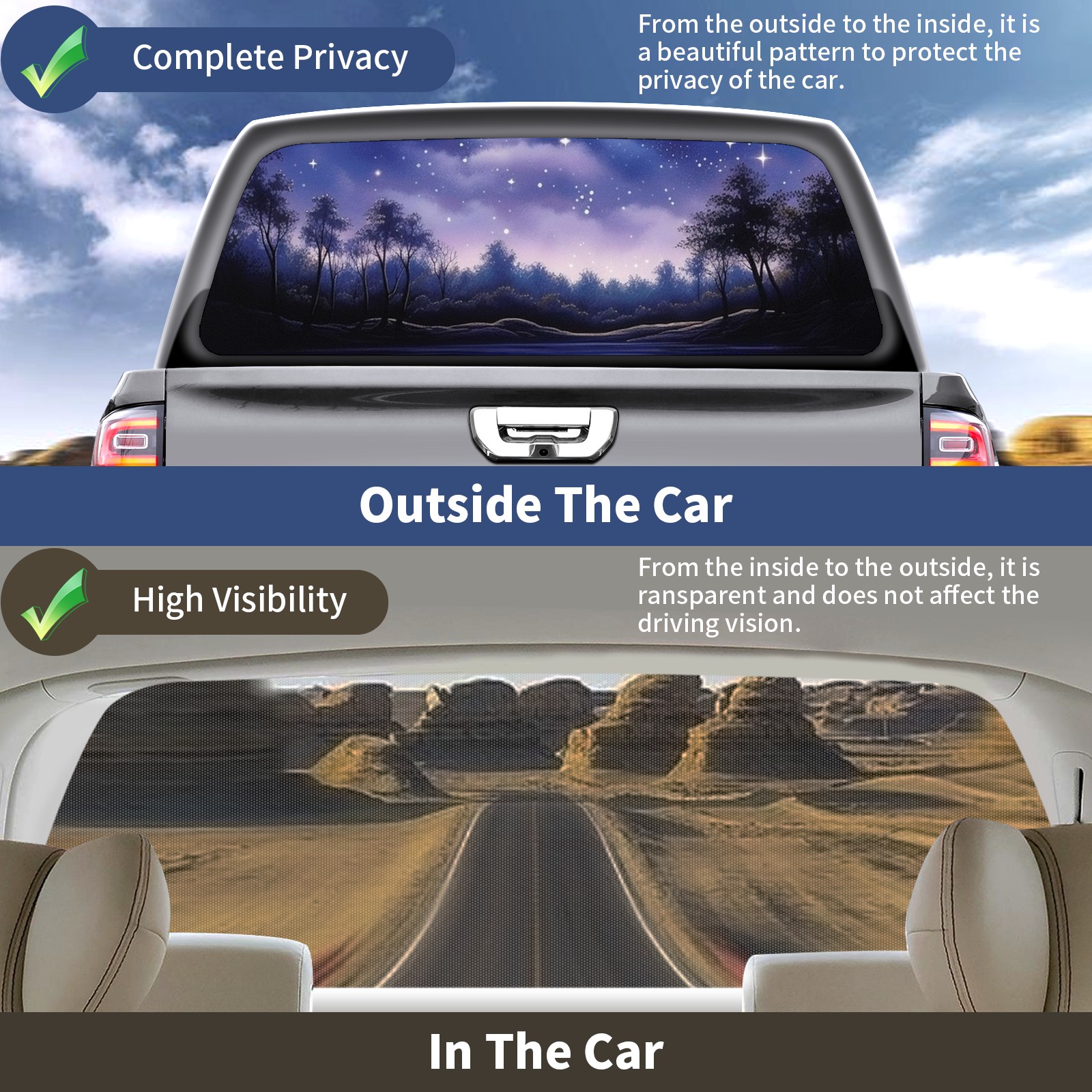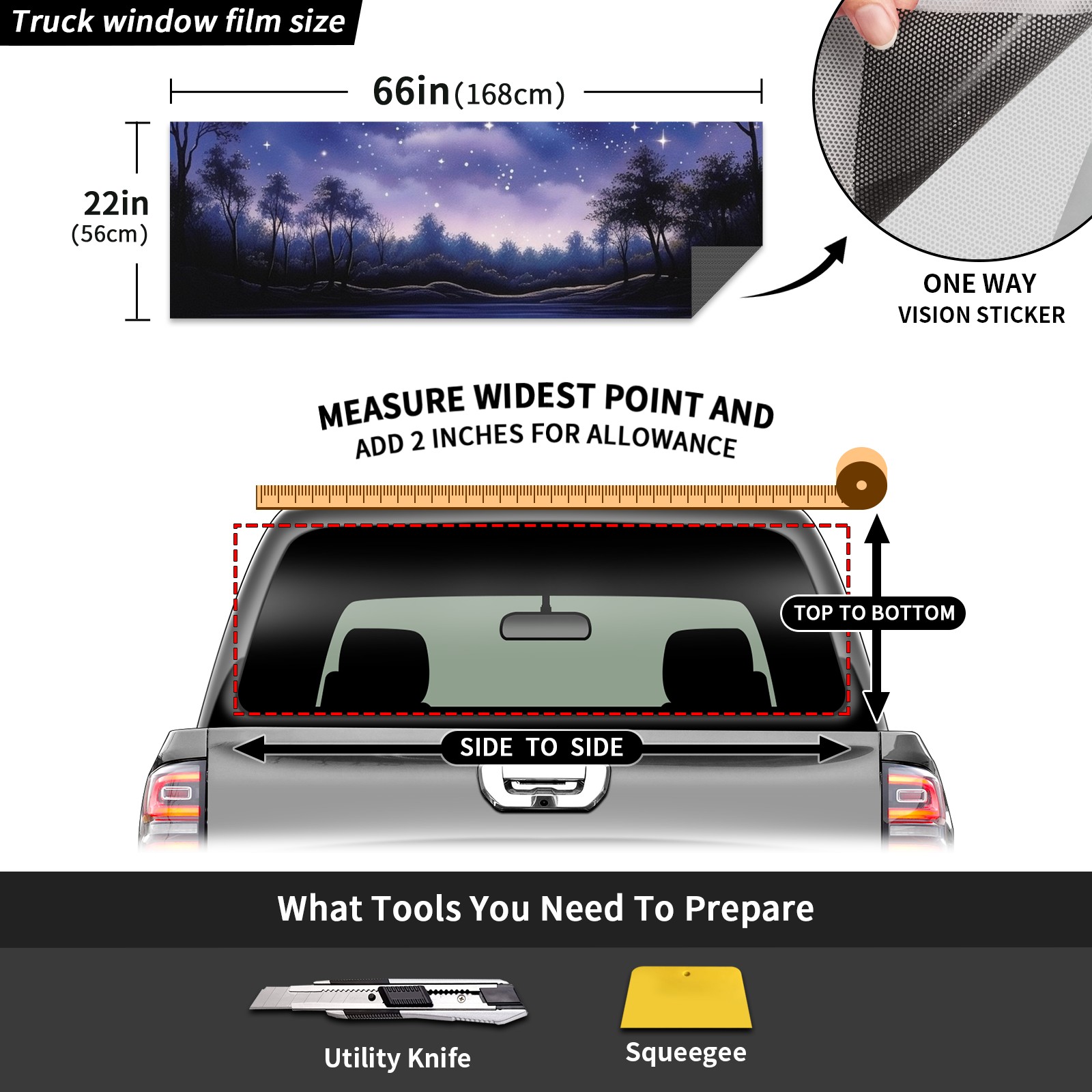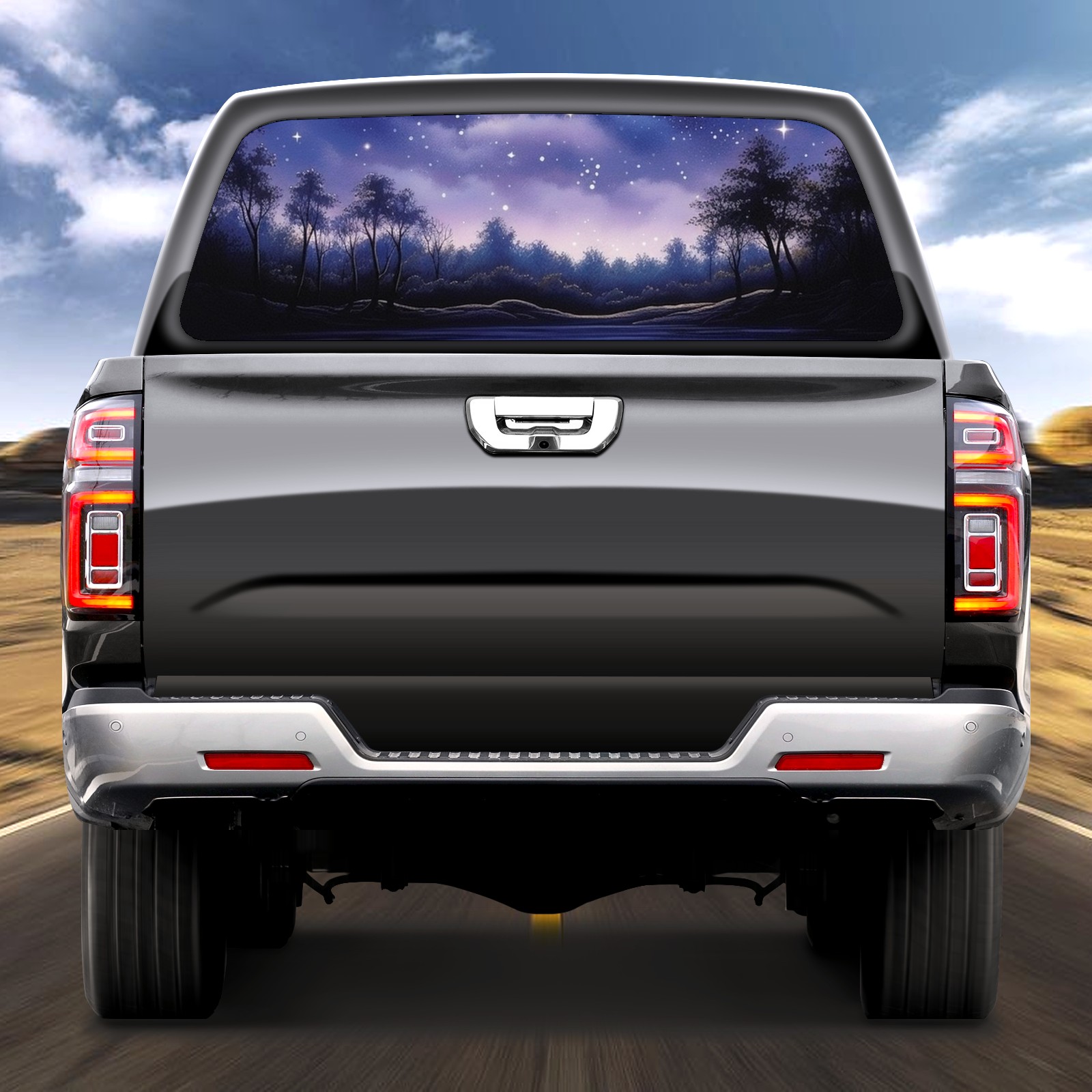 Truck Rear Window Graphics Decals Pickup Trucks Back Window Sticker Full Window Film Decal One Way Visual Waterproof Car Rear Tint Night Sky Stars Moon Lake
