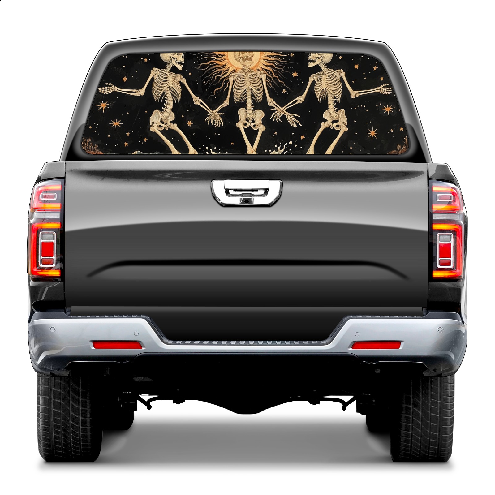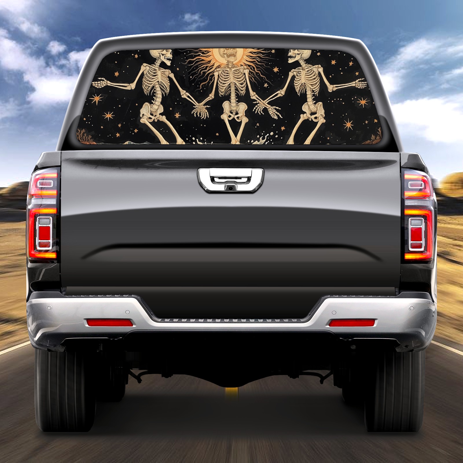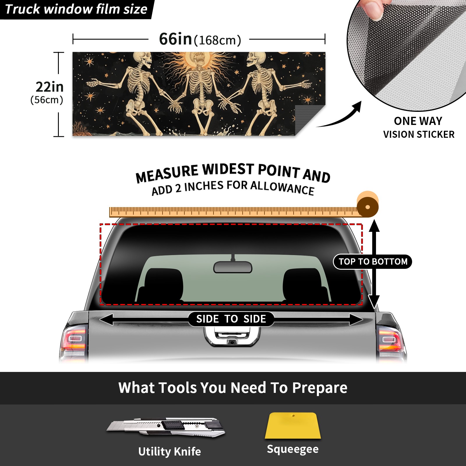 Truck Rear Window Graphics Decals Pickup Trucks Back Window Sticker Full Window Film Decal One Way Visual Waterproof Car Rear Tint Funny Skull