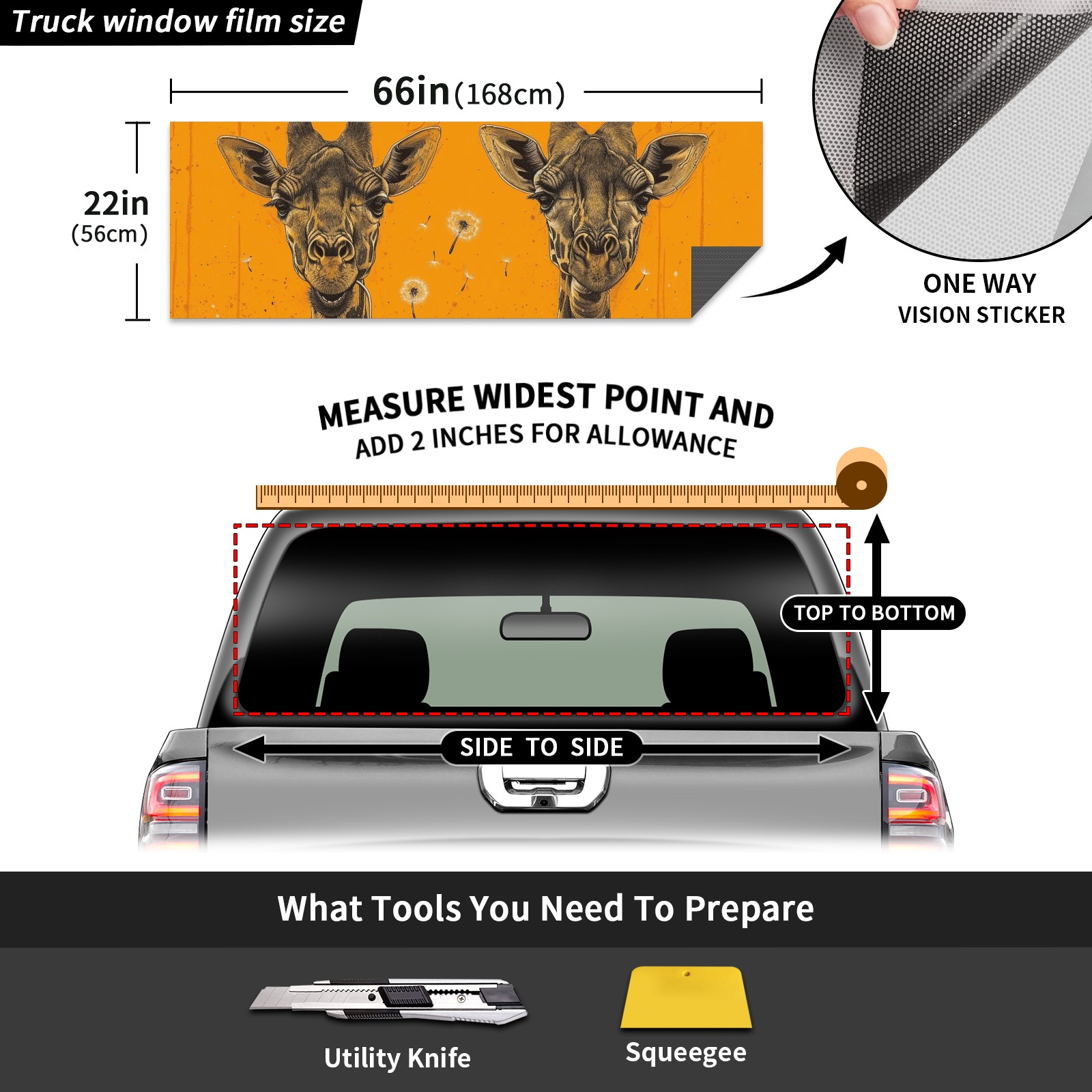 Truck Rear Window Graphics Decals Pickup Trucks Back Window Sticker Full Window Film Decal One Way Visual Waterproof Car Rear Tint Giraffe