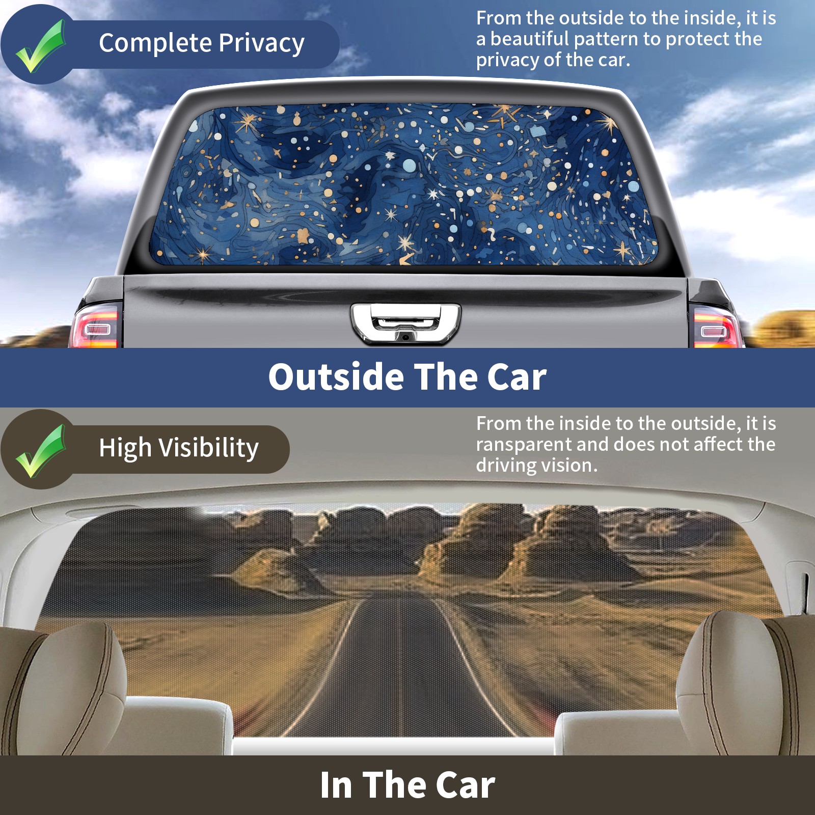 Truck Rear Window Graphics Decals Pickup Trucks Back Window Sticker Full Window Film Decal One Way Visual Waterproof Car Rear Tint Starry Sky
